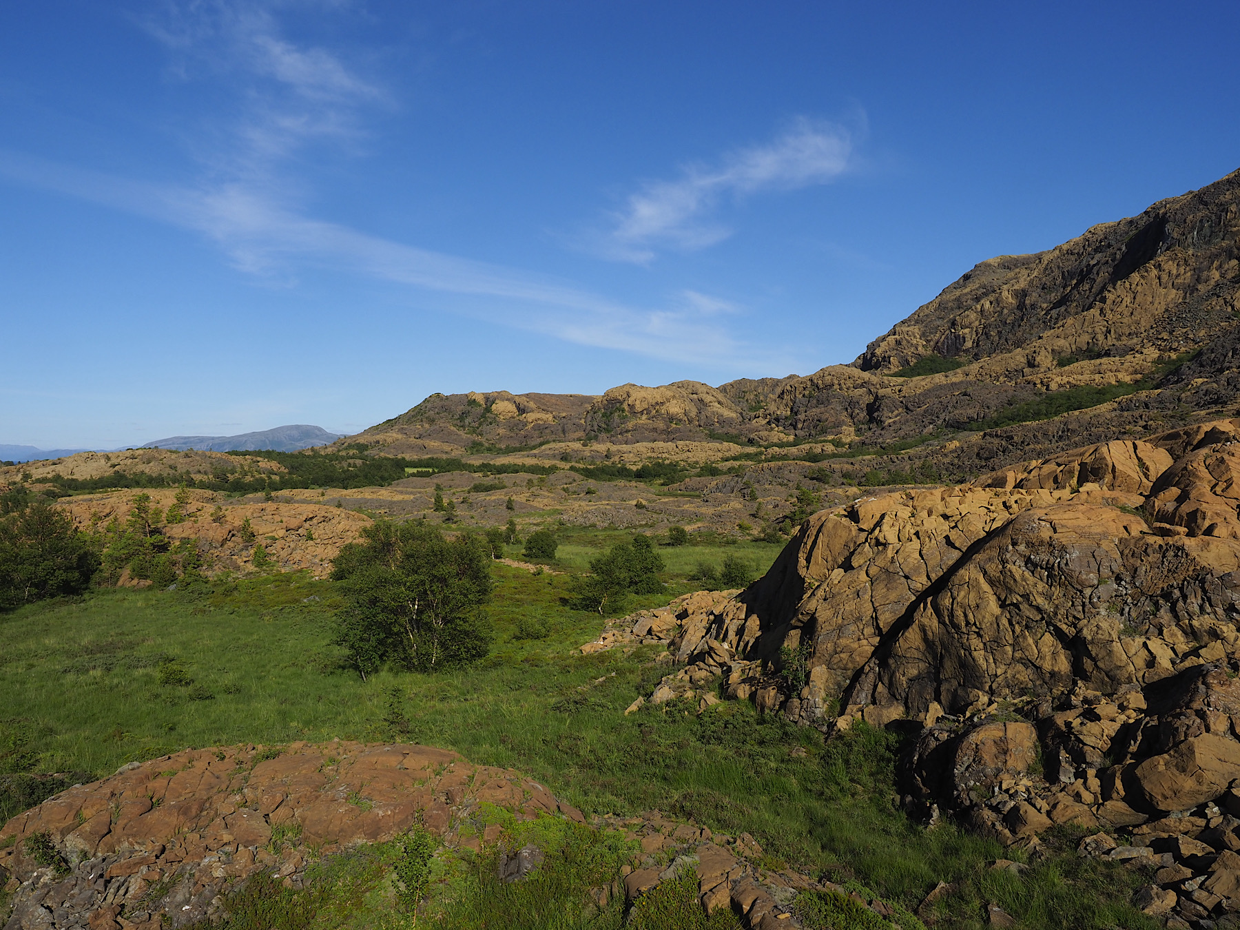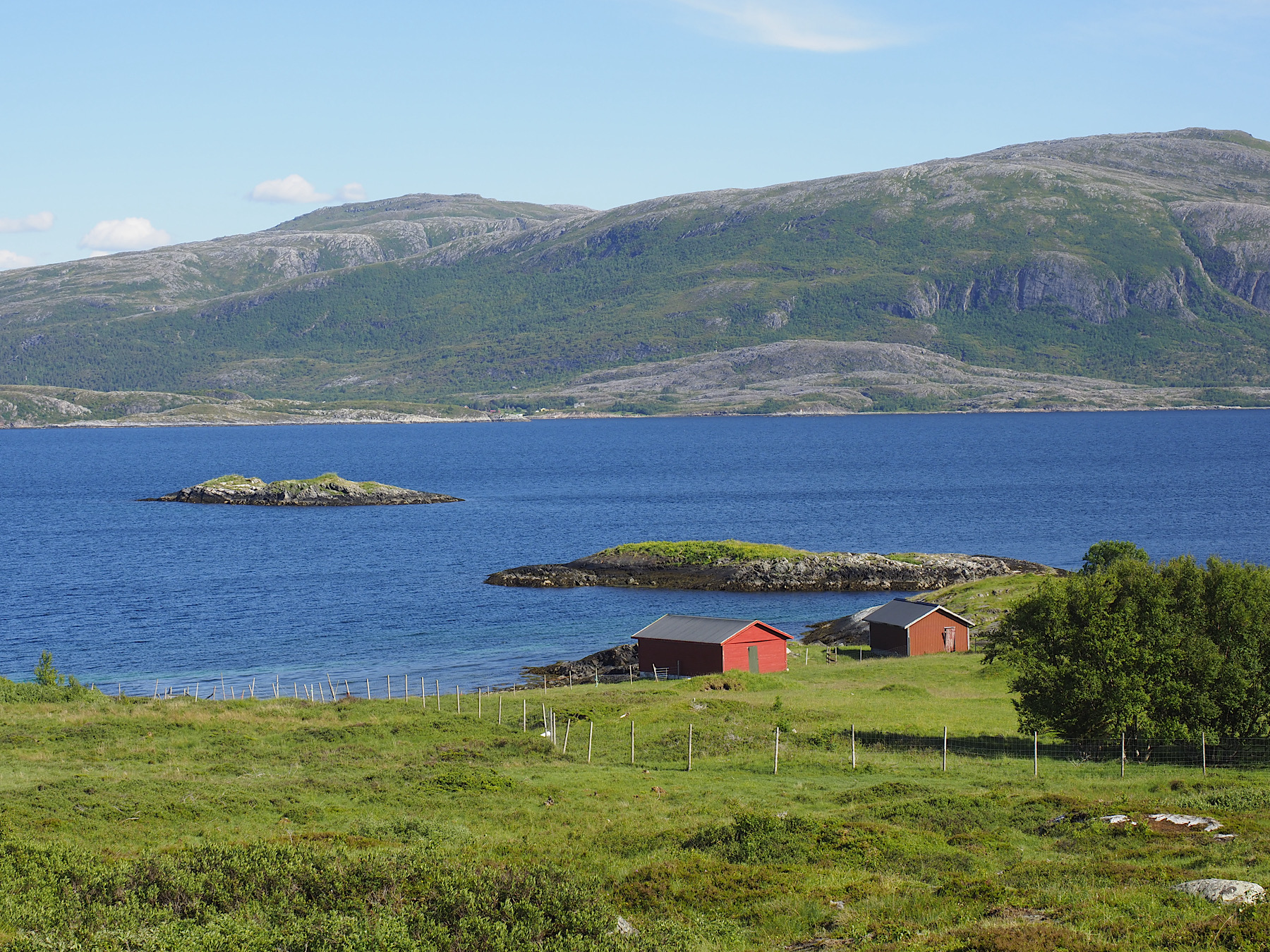 Die Nacht auf dem Rastplatz war wider Erwarten ruhig. Am frühen Abend sind noch LKWs für eine kurze Pause aufgefahren. Die Fahrer ließen ihre Motoren laufen, was mich Böses ahnen ließ. Am Ende war es aber ok. Dennoch würde ich auf einem solchen Platz nicht mehr übernachten. Am Ende nehmen die Wohnmobilisten den LKW Fahrern die Möglichkeit ihre Sattelzüge vernünftig zu parken. Am Morgen öffne ich voller Hoffnung die Verdunklung und in der Tat, wie vorhergesagt, scheint die Sonne. Der Tag fängt gut an! Wir wollen heute früh los, um die 11:05 Fähre nach Leka zu bekommen. 2,5 Stunden Fahrt haben wir noch vor uns. Bei Gartland verlassen wir die E6, fahren auf die 775, die dann letztlich auf die RV17 mündet. Die Strasse, auf der wir die nächsten Tage gen Norden fahren werden. Die Landschaft, die wir hier passieren ist ein Traum. Der strahlend, blaue Himmel setzt dem Ganzen die Krone auf. Es ist übrigens, das erste Mal, das wir unbewölkten Himmel in Norwegen haben.