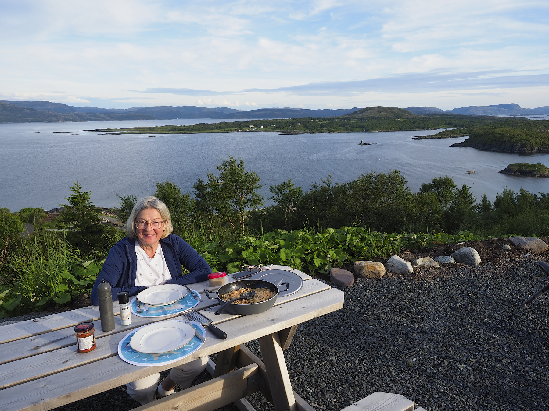 Am frühen Abend sind wir auf unserem Platz zurück und genießen den Ausblick. Gerade als ich den Bericht auf der Bank unseres Platzes sitzend, schreibe, werden an der Küste an vielen Stellen Bonfire entzündet. Heute ist Mittsommernacht. Sonnenuntergang ist heute 00:19 und Sonnenaufgang 2:11.