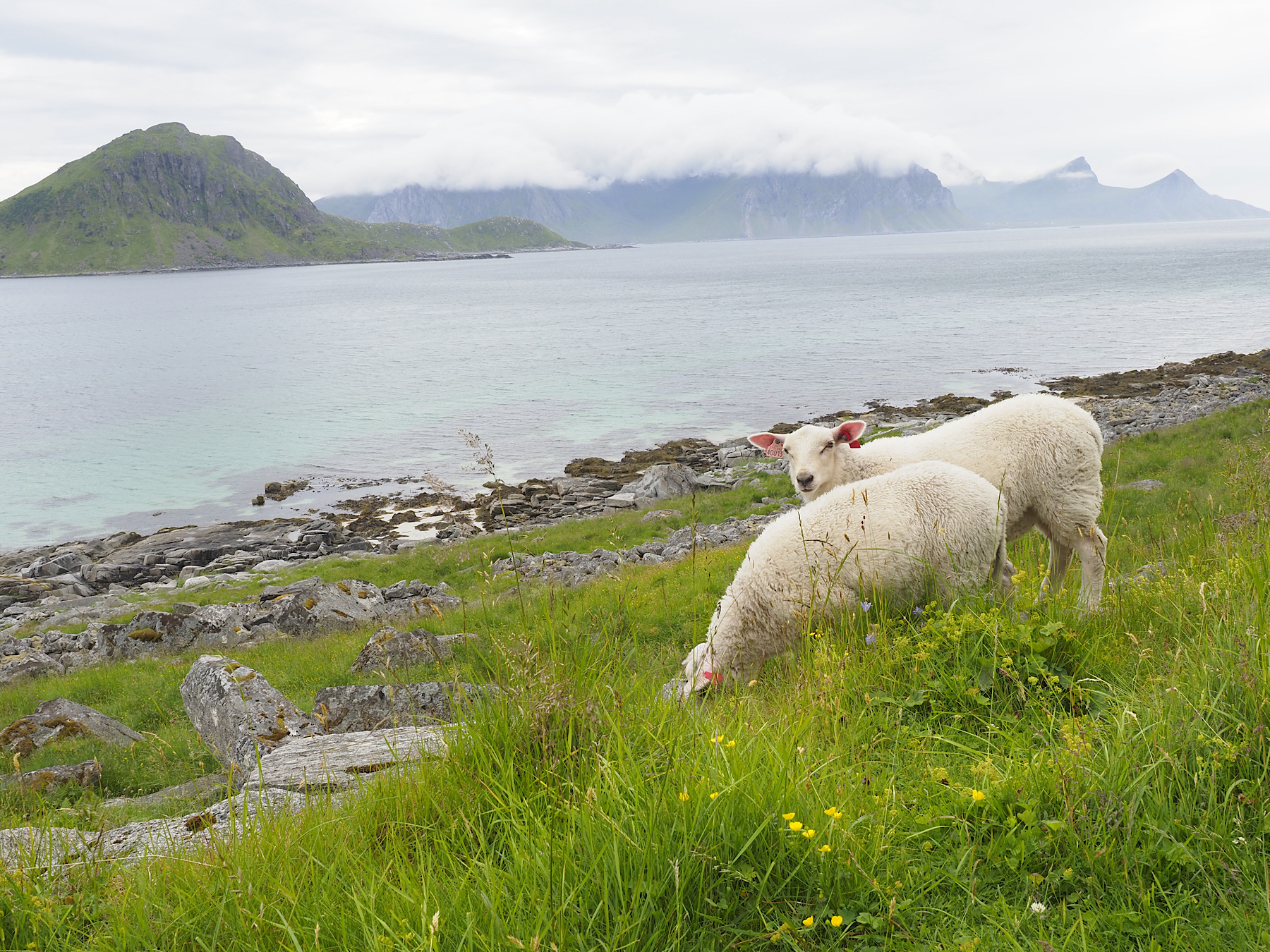 Wir starten in den Tag mit einem sehr spärlichen Frühstück: die Zimtschnecke von gestern aus der Bäckerei in Nusfjord und einen Solbolle (ein Hefegebäck mit Kokosstreusel und Vanillecreme in der Mitte). Der Grund ist einfach. Wir wollen noch einmal nach Nusfjord fahren und in der Bäckerei frisches Brot kaufen. Das war nämlich gestern leider ausverkauft. Danach wollen wir dann irgendwo das Frühstück nachholen.