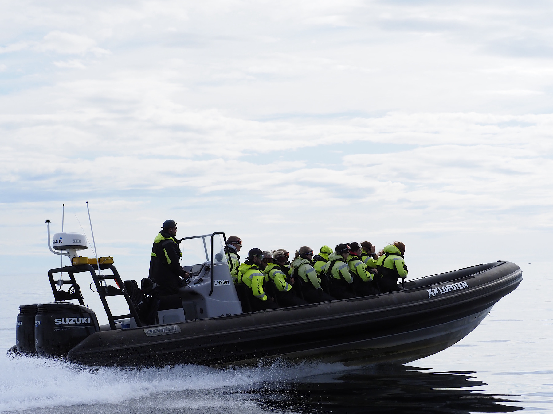 Wir fahren wieder in einem RIB Boot. Es ist sehr beengt und man hat quasi keine Bewegungsfreiheit. Das Boot ist dafür schnell unterwegs.