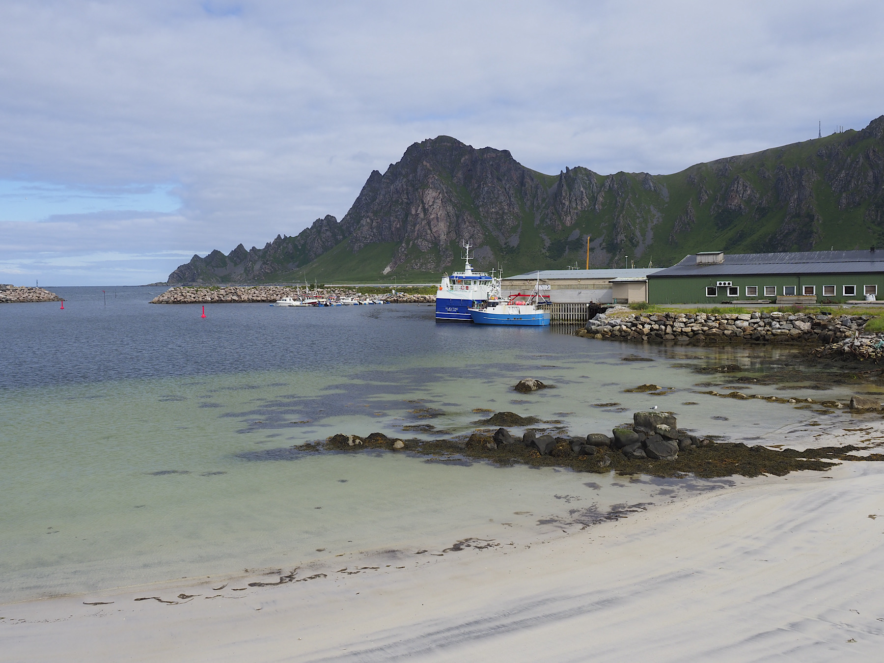 Der Start klappt wie vorhergesehen: wir kaufen ein und schauen uns Bleik an. Bleik ist kompakter als viele andere norwegische Dörfer gebaut. So dass man hier wirklich von einem Dorf sprechen kann. Wir schlendern durch den schönen, beschaulichen Ort.