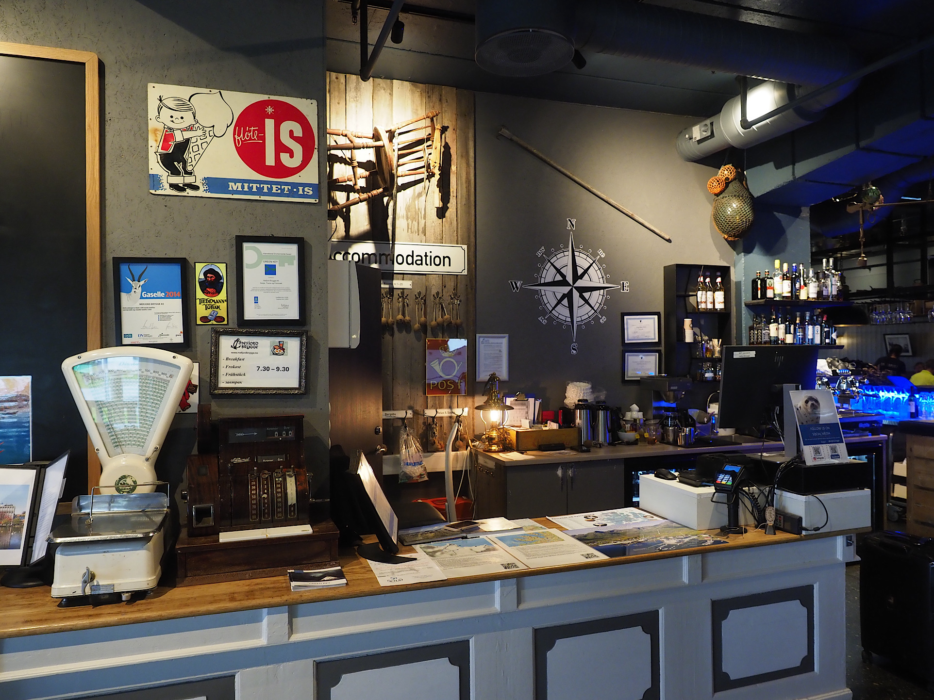 Unten im Ort stellen wir fest, dass wir den falschen Weg genommen haben. Hätten wir nur das Schild neben dem Parkplatz gleich gelesen. Aber einen erneuten Start wollen wir nicht mehr unternehmen. Stattdessen schauen wir uns die Häuser entlang der Strasse an und stoßen doch glatt auf das Restaurant Salteriet mit angeschlossener Bar. Eine kurze Inspektion weckt in mir die Gelüste auf ein Fischgericht. Wir kehren also ein und ich gönne mir einen sehr leckeren Heilbutt.
