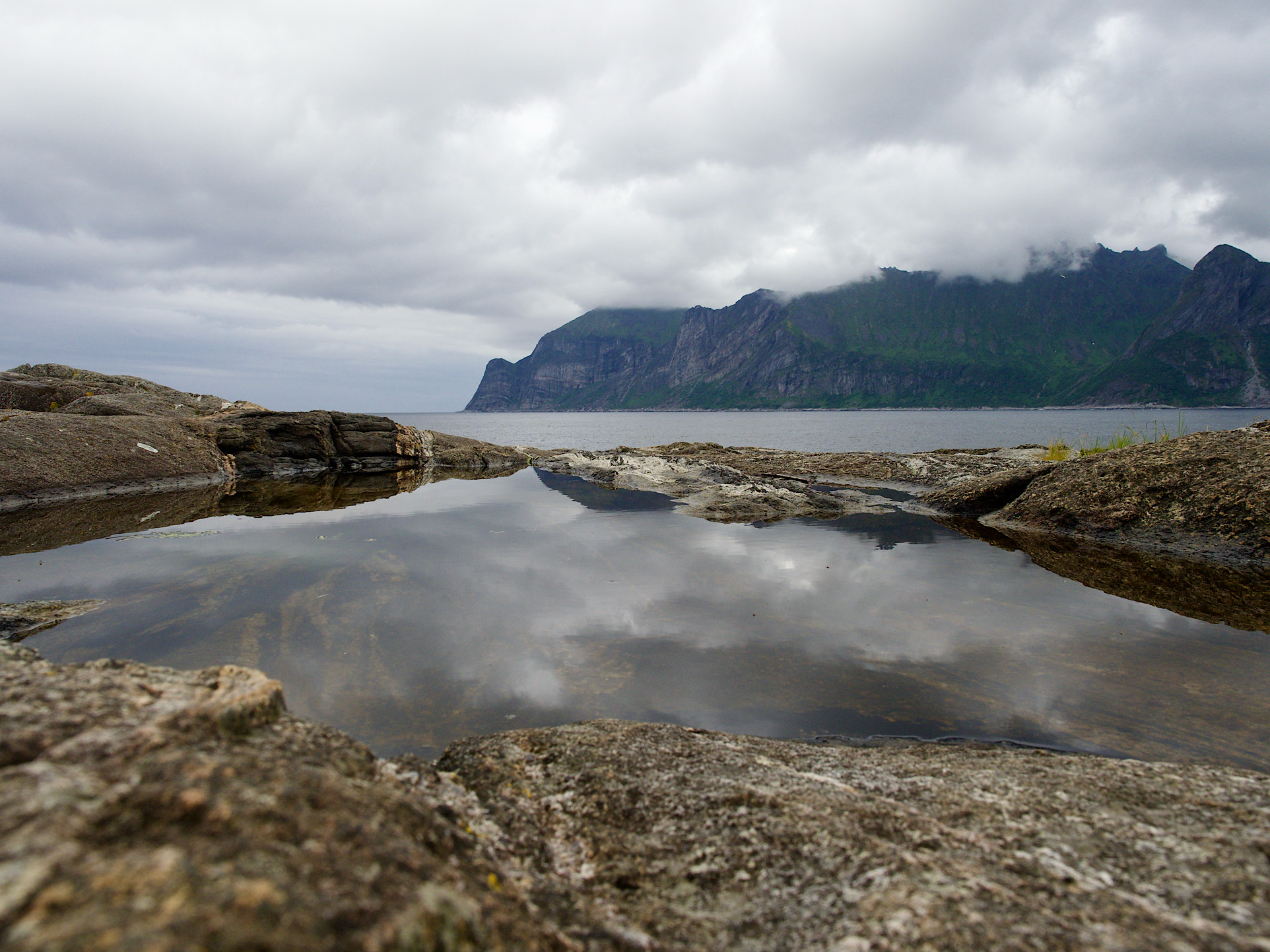 Damit beschließen wir den Tag heute. Wir bleiben im Mefjord auf dem Parkplatz stehen. Morgen Nachmittag soll die Sonne scheinen. Dies wollen wir nutzen, um auf den Hesten zu wandern, von dem man einen tollen Blick auf den Berg Segla haben soll.
