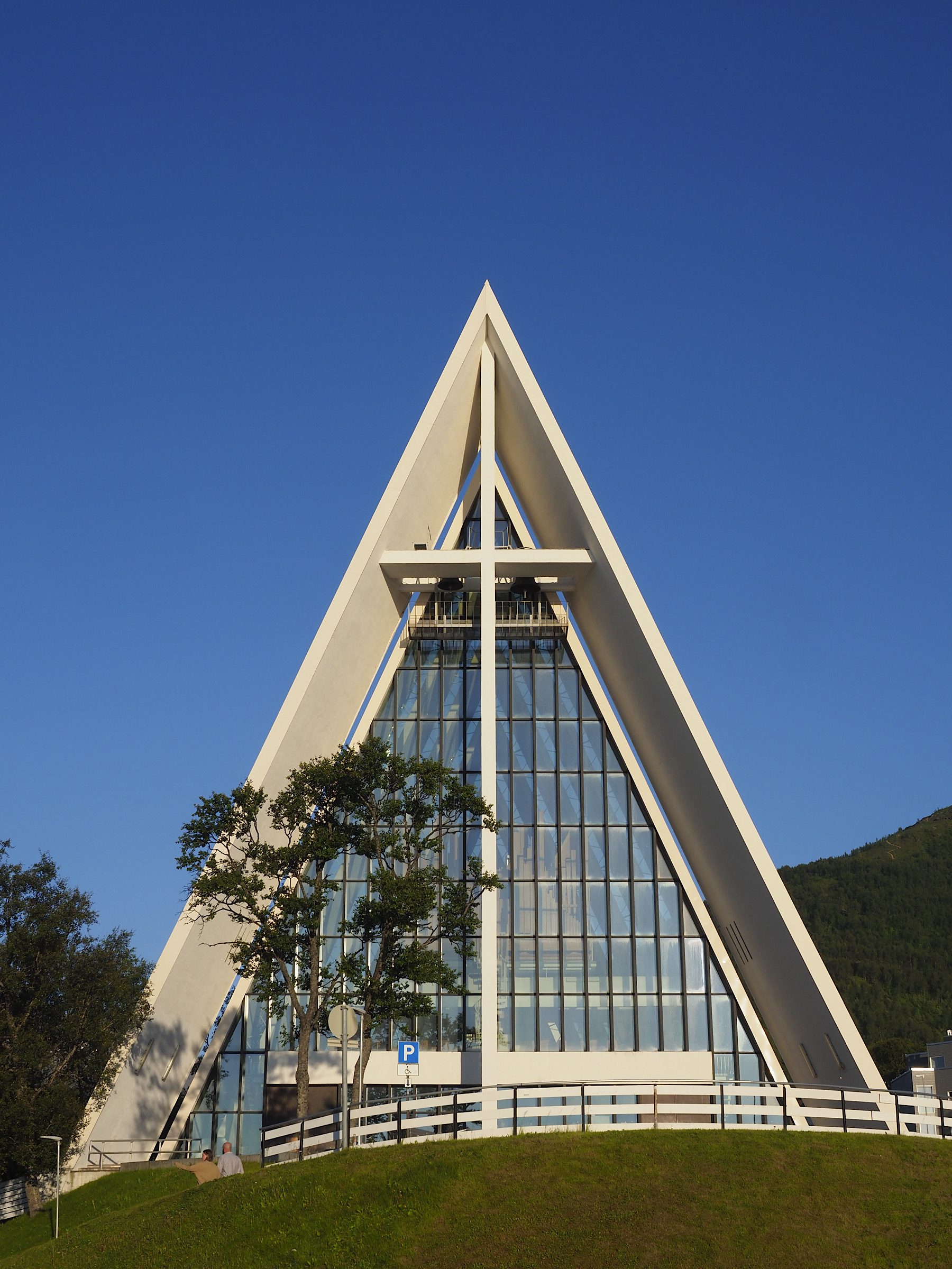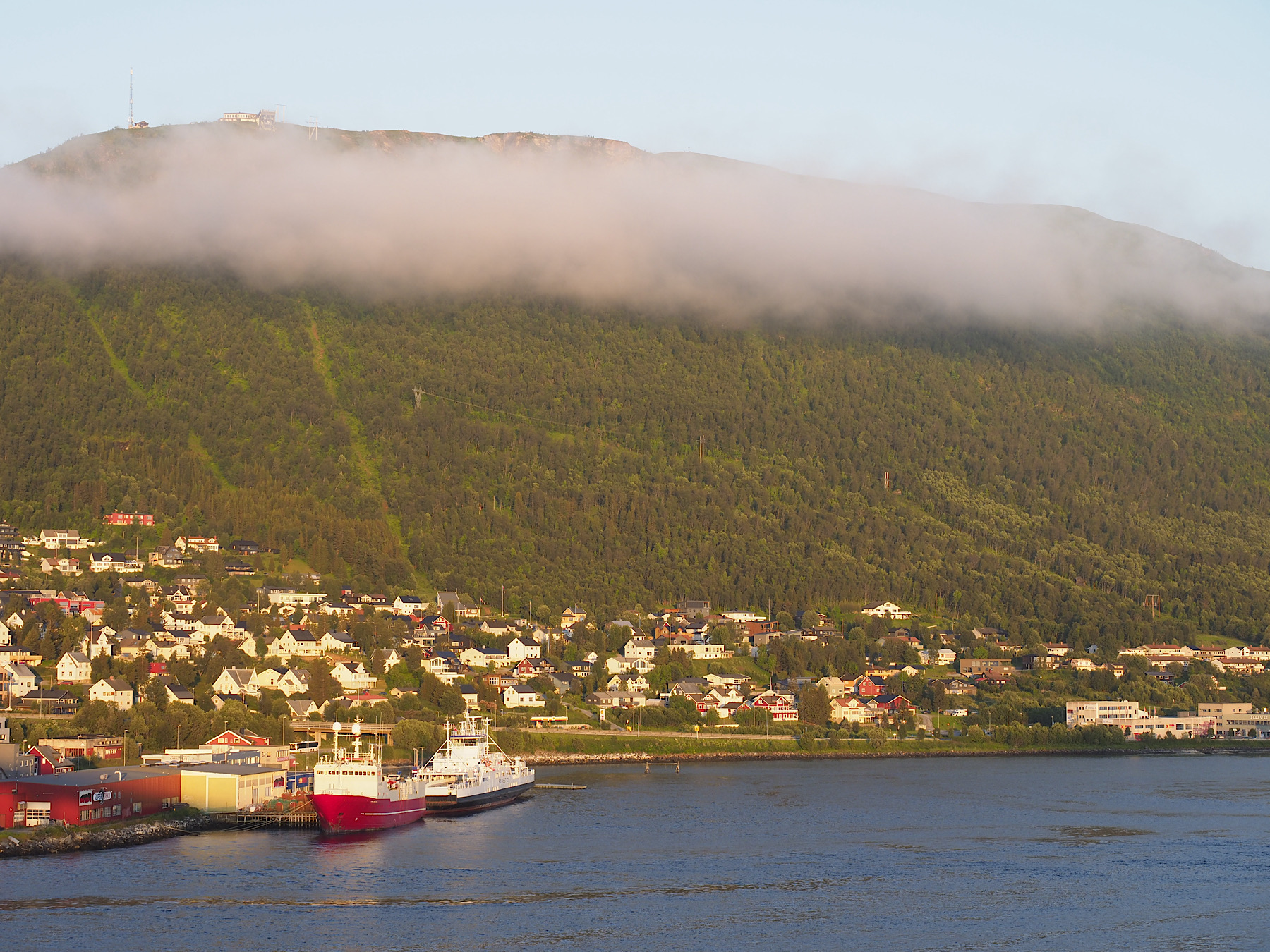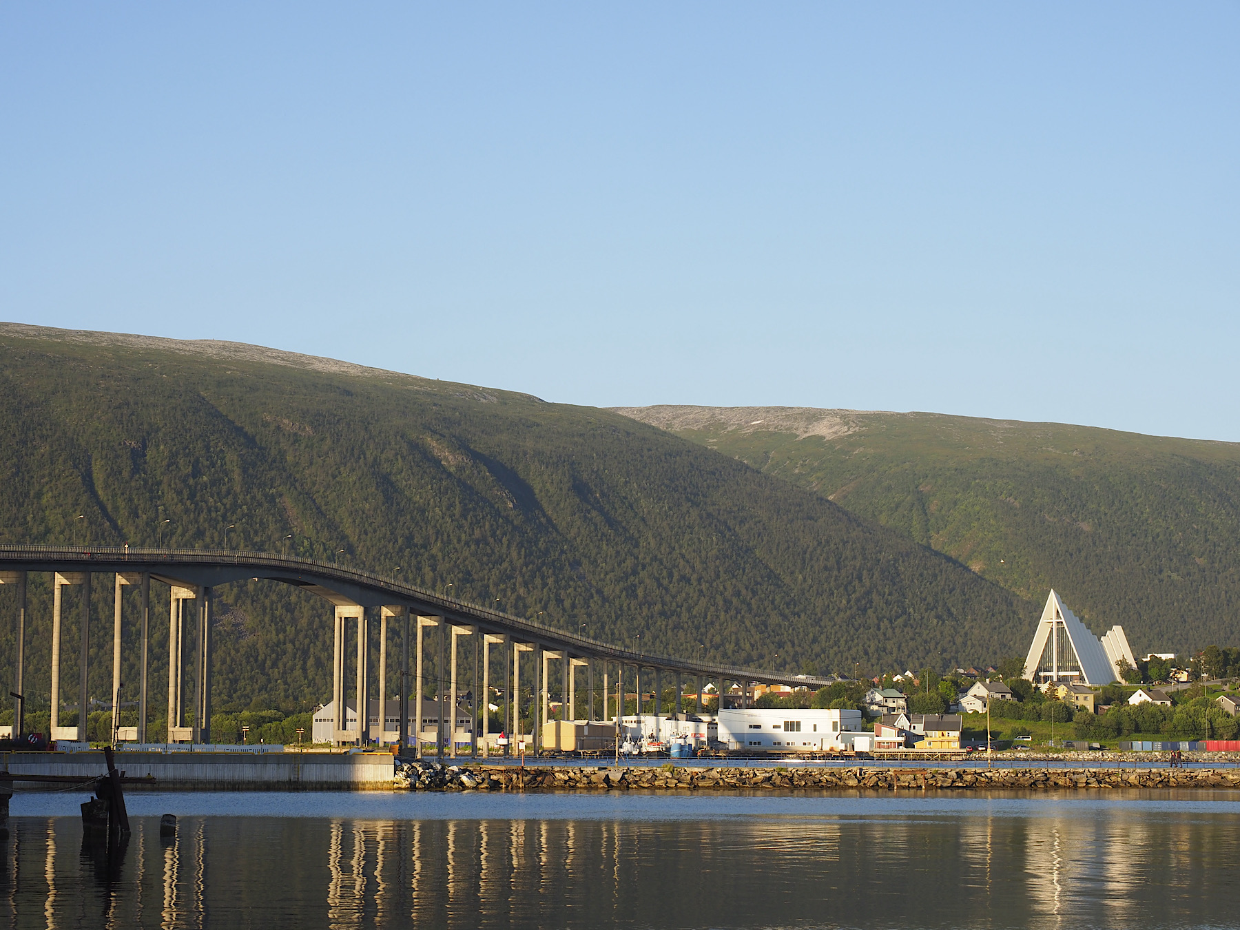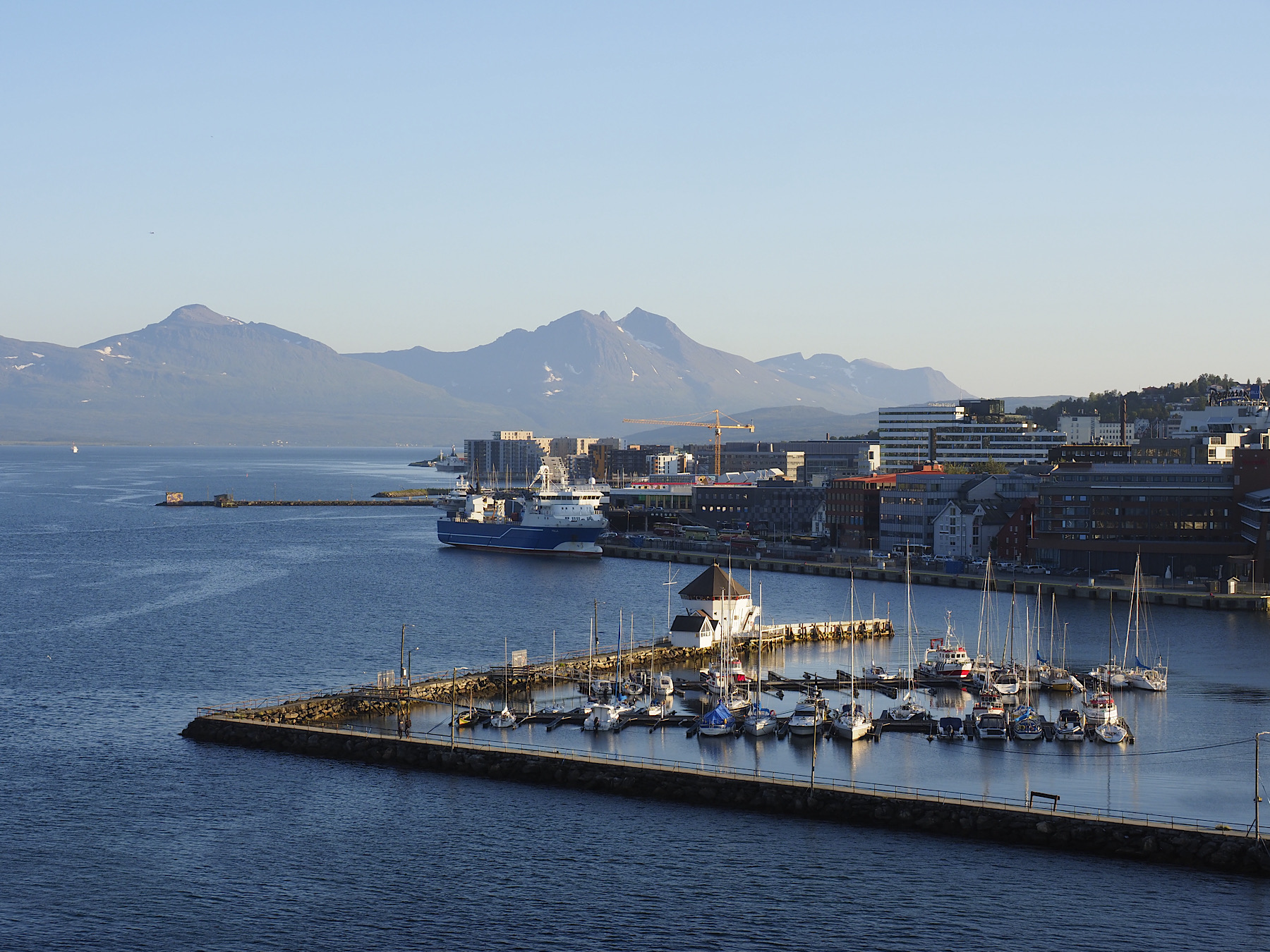 In Tromsø wollen wir auf einen Campingplatz übernachten, der nahe am Zentrum liegt. Leider ist dieser ausgebucht. Alternativ gibt es noch einen Parkplatz in Fussnähe der Brücke. Leider wird hier gerade für eine Veranstaltung aufgebaut. Daher entschließen wir uns den Parkplatz am Skizentrum zu inspizieren. Hier ist massig Platz und wir werden hier übernachten. Da wir aber noch mal in die Stadt möchten, fahren wir erst mal auf einen Tagesplatz in der Nähe der Brücke, die ins zu Fuß ins Stadtzentrum führt. Essen kochen fällt heute aus. Es ist spät. Im Zentrum wird sich doch noch eine Essgelegenheit finden. Wir sind baff erstaunt, als wir feststellen, dass dies um 21:45 Uhr alles andere als einfach ist. Die meisten Restaurants haben bereits geschlossen oder Sonntags gar nicht geöffnet. Für ein Stadtzentrum ist hier wenig los. Am Ende finden wir noch ein Restaurant dessen Küche noch bis 22:00 Uhr geöffnet hat.