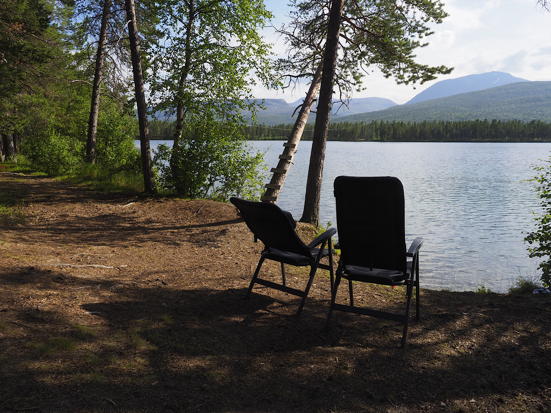 Als wir dann schließlich auf der E6 sind, werde ich müde, Renate ebenfalls. D.h. Wir werden Abisko heute nicht erreichen. Wir entscheiden uns für den Campingplatz Lapphaugen. Wir finden einen Stellplatz mit einem schönen Blick auf die Berge. Leider ziehen wieder Wolken auf. Das Abendessen können wir noch draußen genießen, danach vertreibt uns der Regen ins Wageninnere. Wir hoffen für morgen auf gutes Wetter im Abisko Nationalpark. Bis morgen!