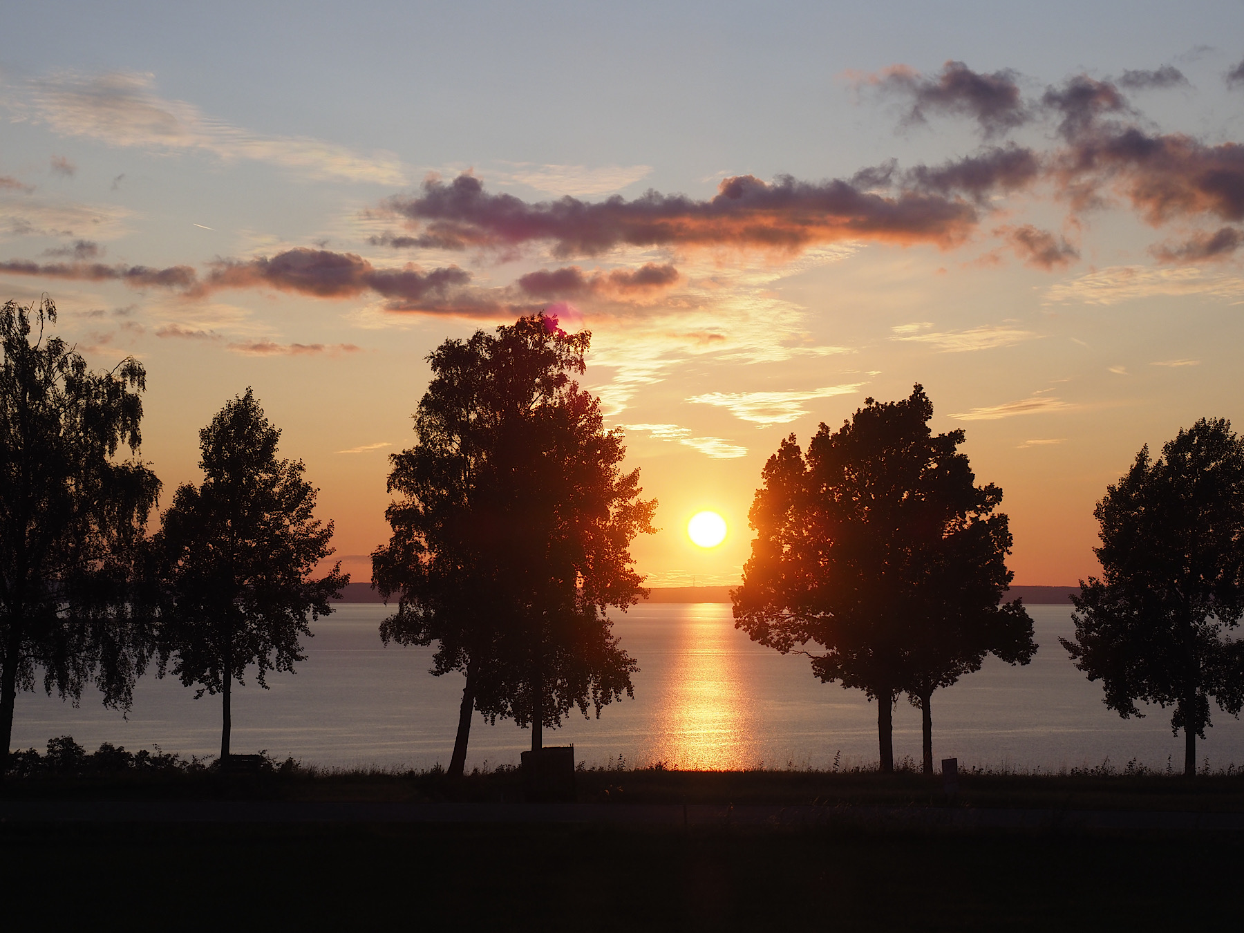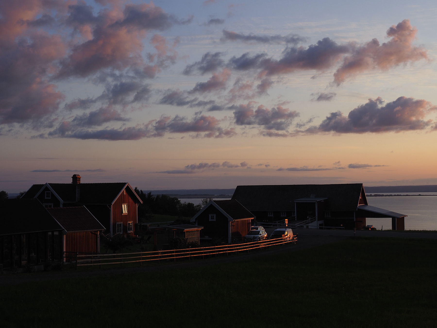 Wir fahren nochmal ca. 3,5 Stunden und erreichen tatsächlich noch den Vättern. Renate hat uns einen privaten Stellplatz am See herausgesucht, der sich als absoluter Glücksgriff entpuppt. Traumhafte Sicht auf den See und den Sonnenuntergang. Wir packen die Stühle aus und lassen es uns noch gut gehen. So kann ein Tag zu Ende gehen!