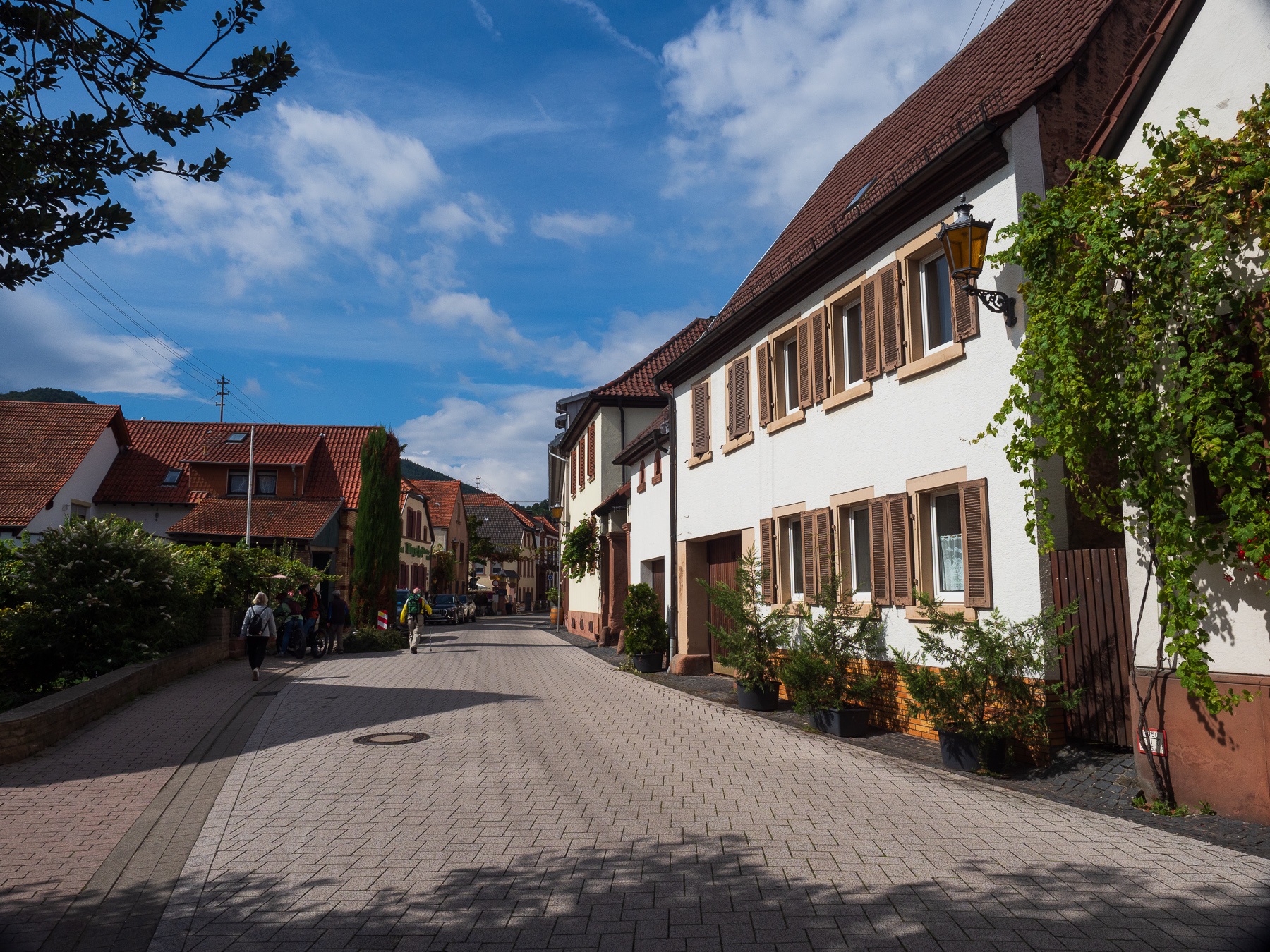 Für den nächsten Tag haben wir eine Weinführung in Rhodt unter Rietberg gebucht. Am kommunizierten Treffpunkt stehen wir ziemlich alleine rum. Nachdem die ersten 5 Minuten der Führung und Guide vergangen sind, fragen wir ein Pärchen, ob sie auch an der Führung teilnehmen. Nein. Aber der Mann hat weiter unten in der Strasse ein Plakat diesbezüglich gesehen. Ok, wir laufen los und suchen das Plakat. Dort können wir lesen, dass der Treffpunkt am anderen Ende des Dorfes ist. Ich rufe unter der angegebenen Telefonnummer an und erfahre, dass es hier wohl ein Missverständnis gibt. Hmmm, welches Missverständnis? In der Bestätigungsmail hing ein Link auf die Webseite des durchführenden Wein- und Kulturvereins und der weist den von uns angelaufenen Treffpunkt aus. Aber egal, wir laufen los, um die Gruppe noch zu treffen. Als wir dann diese dann nicht finden und auch die erneuete telefonisch Kontaktaufnahme nicht glückt, schicke ich eine SMS, dass wir nicht mehr kommen.
