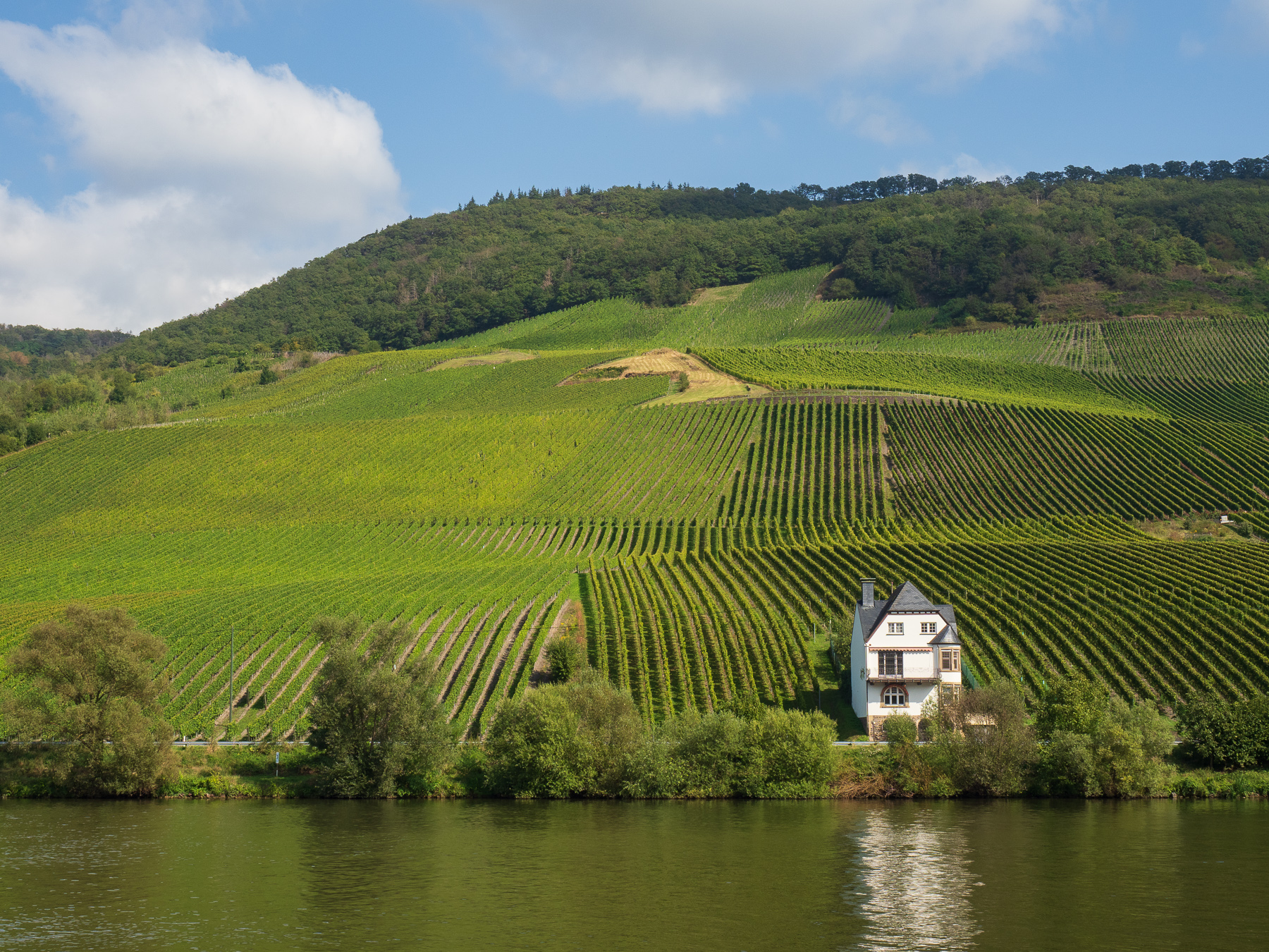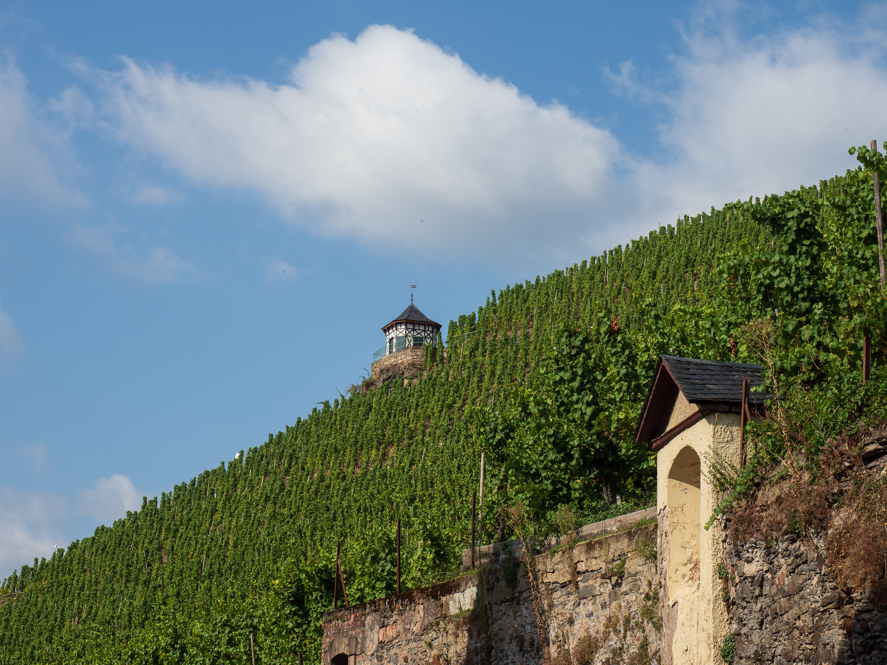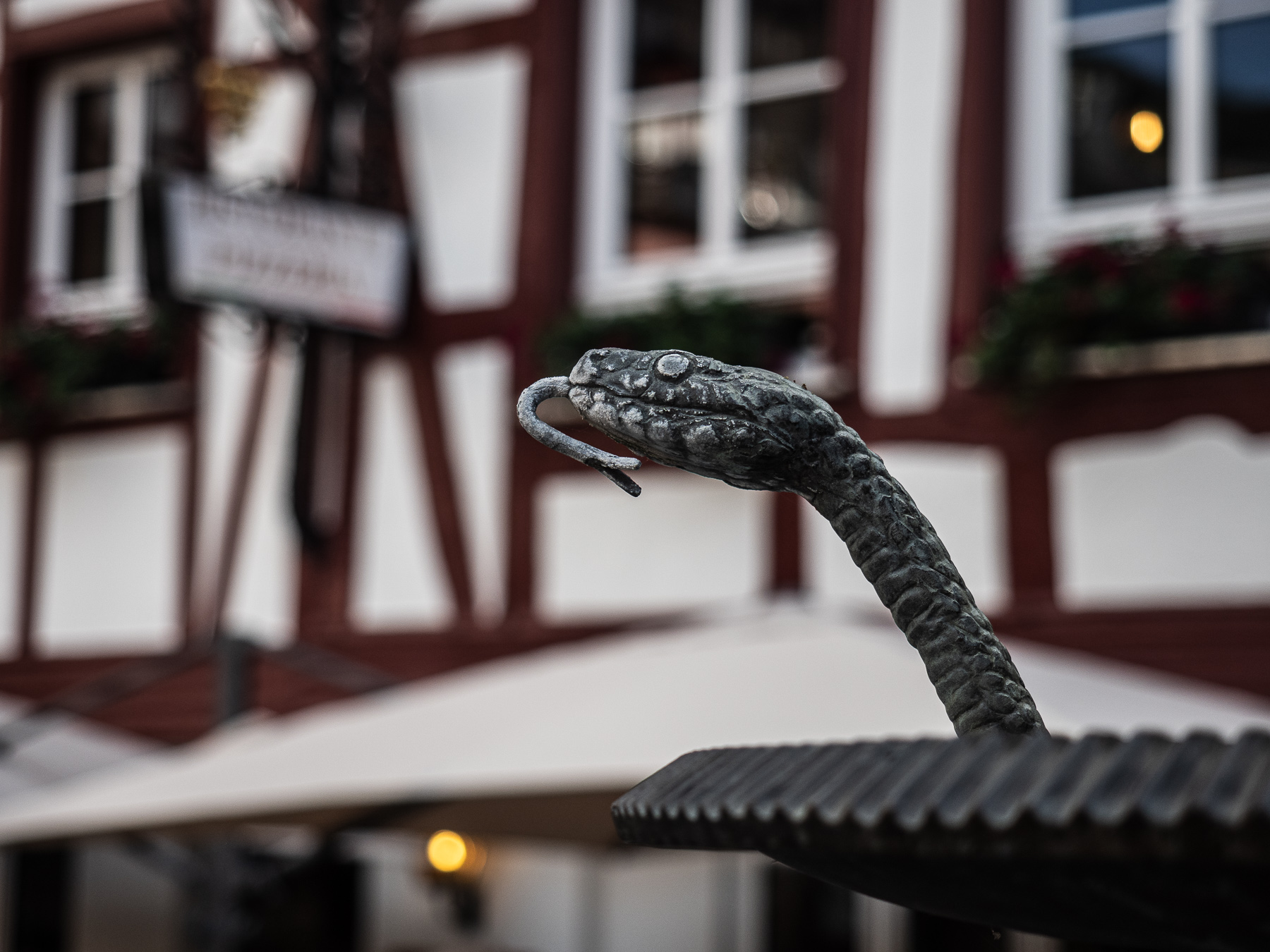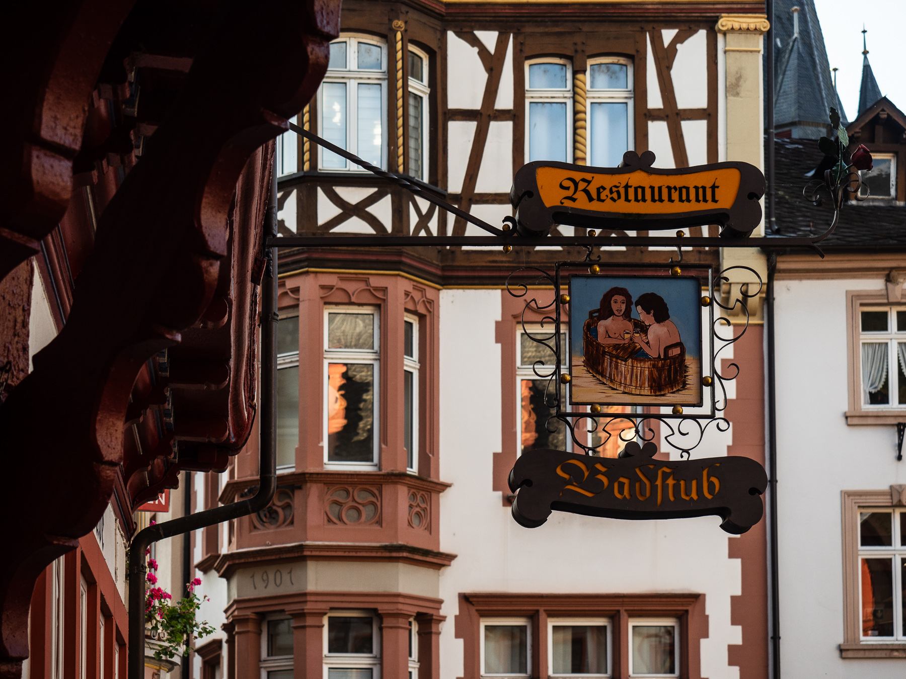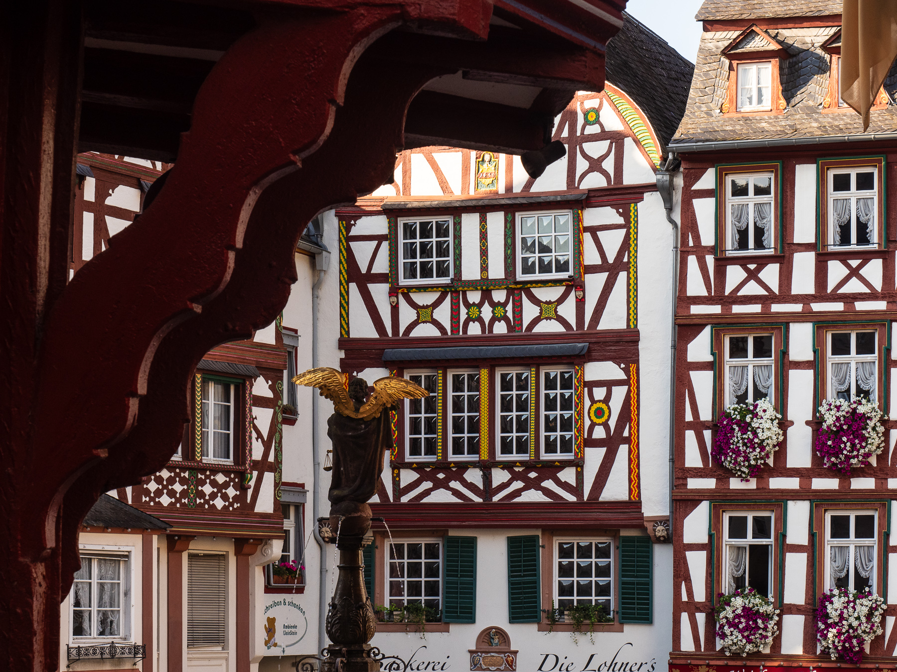 Durch die Altstadt schieben sich Menschenmassen. Wo kommen die denn alle her? Bernkastel-Kues scheint das Rüdesheim der Mosel zu sein. Die Altstadt mit seinen Fachwerkhaus Fassaden ist schön anzuschauen. Insbesondere die schmalen, winzigen Häuser haben es uns angetan. Am Rande der Altstadt mit Blick auf den “legendären” Weinhang Bernkastel Doctor nehmen wir in einer Weinstube Platz und gönnen uns einen Weisswein, was auch sonst