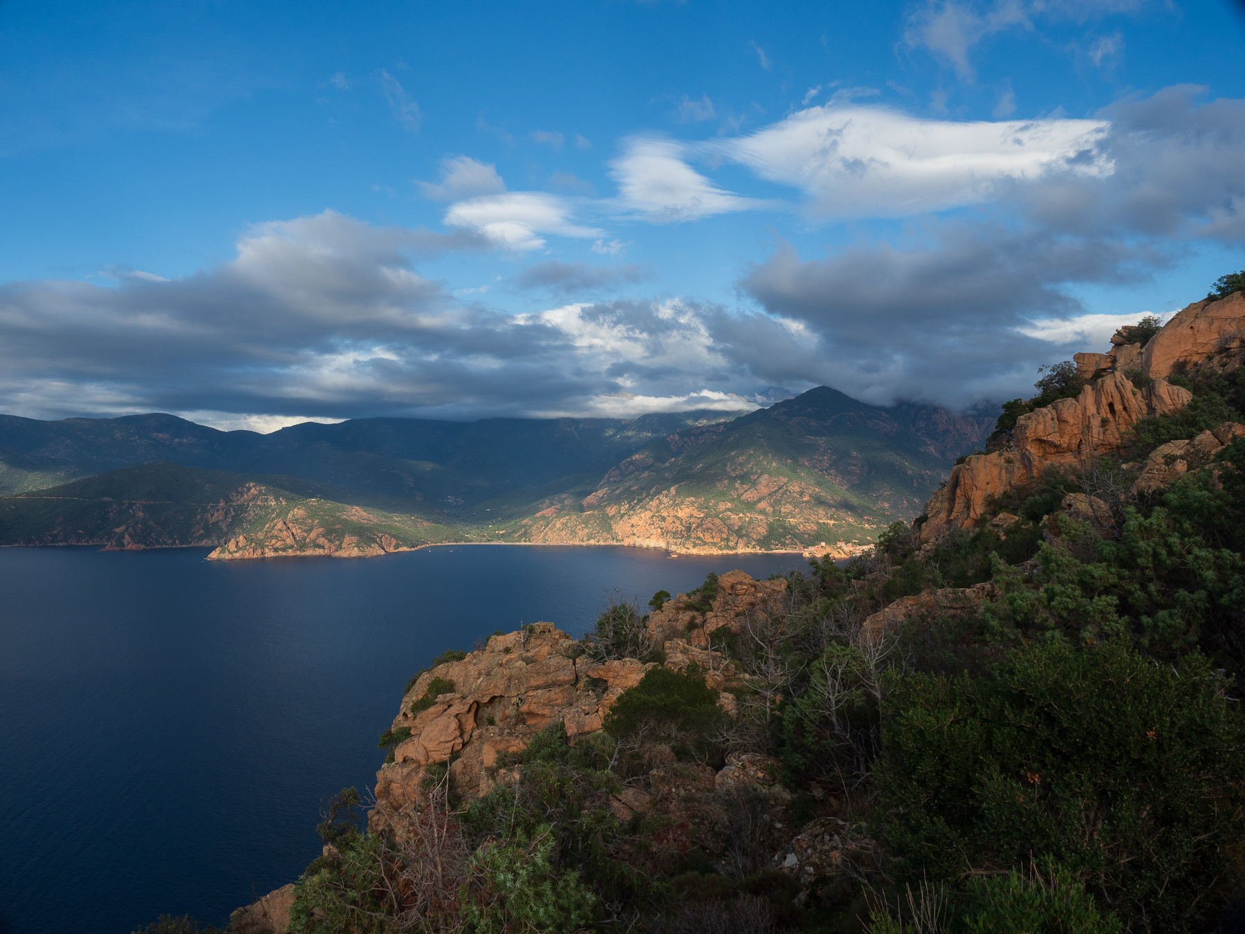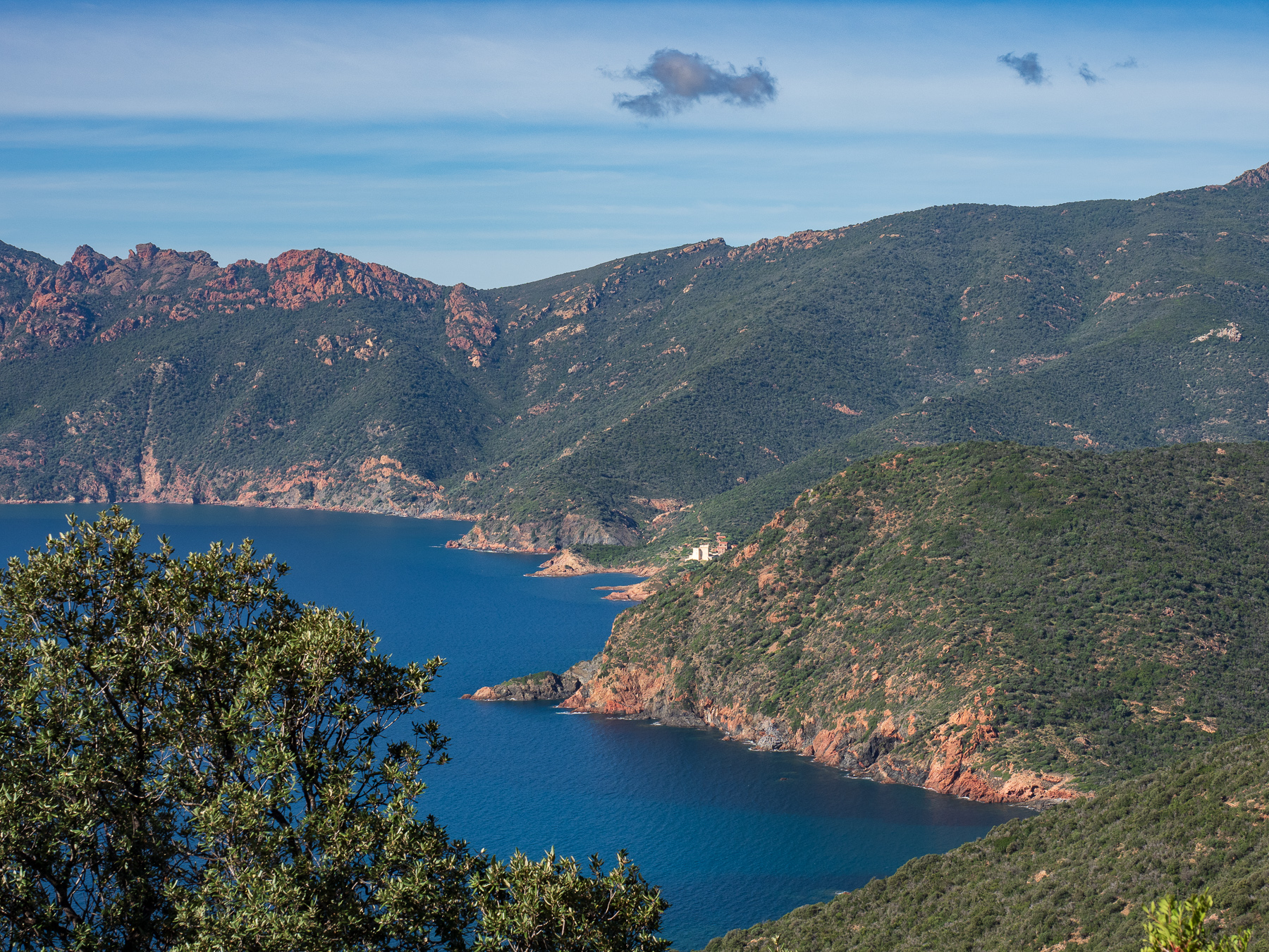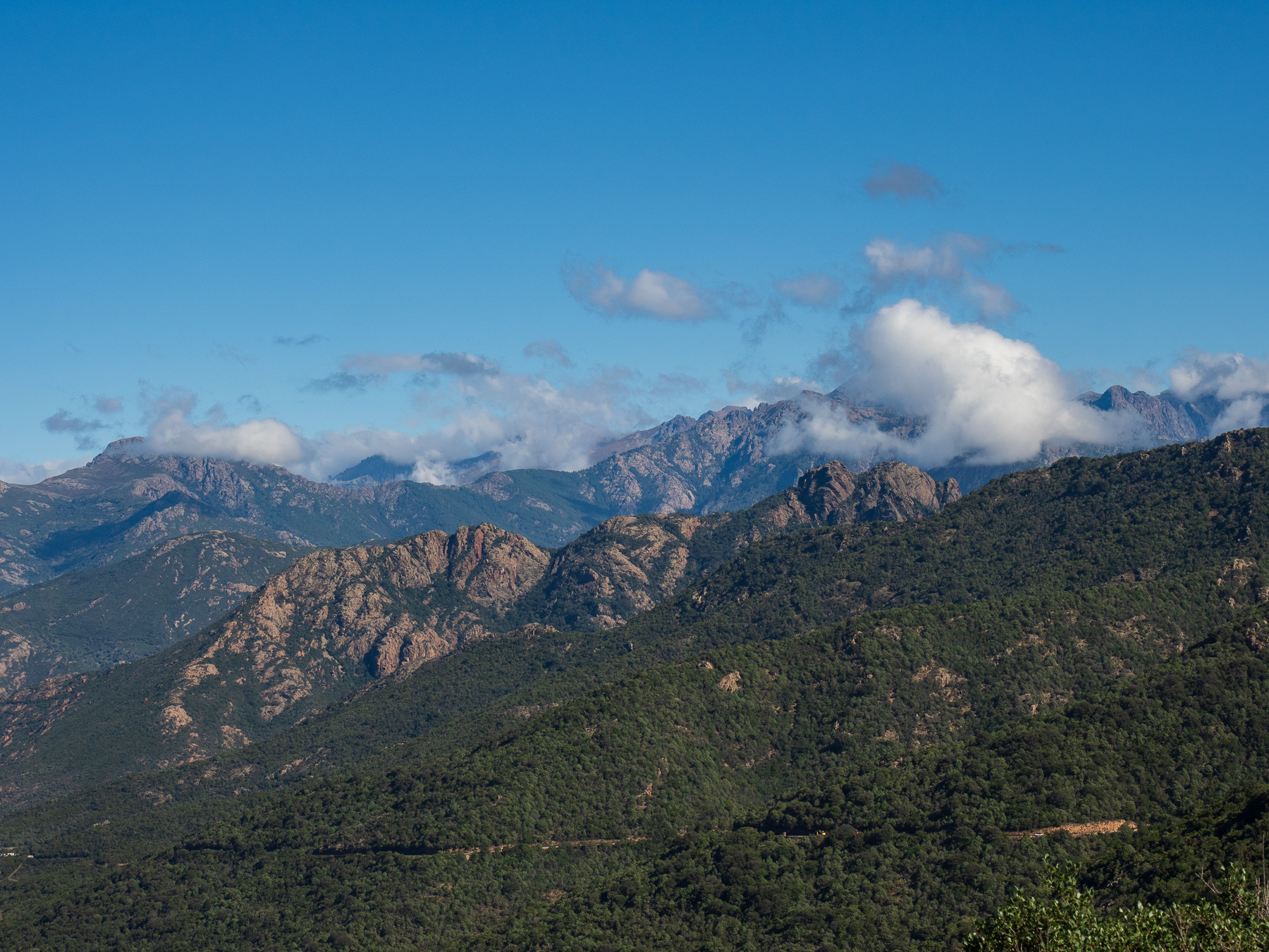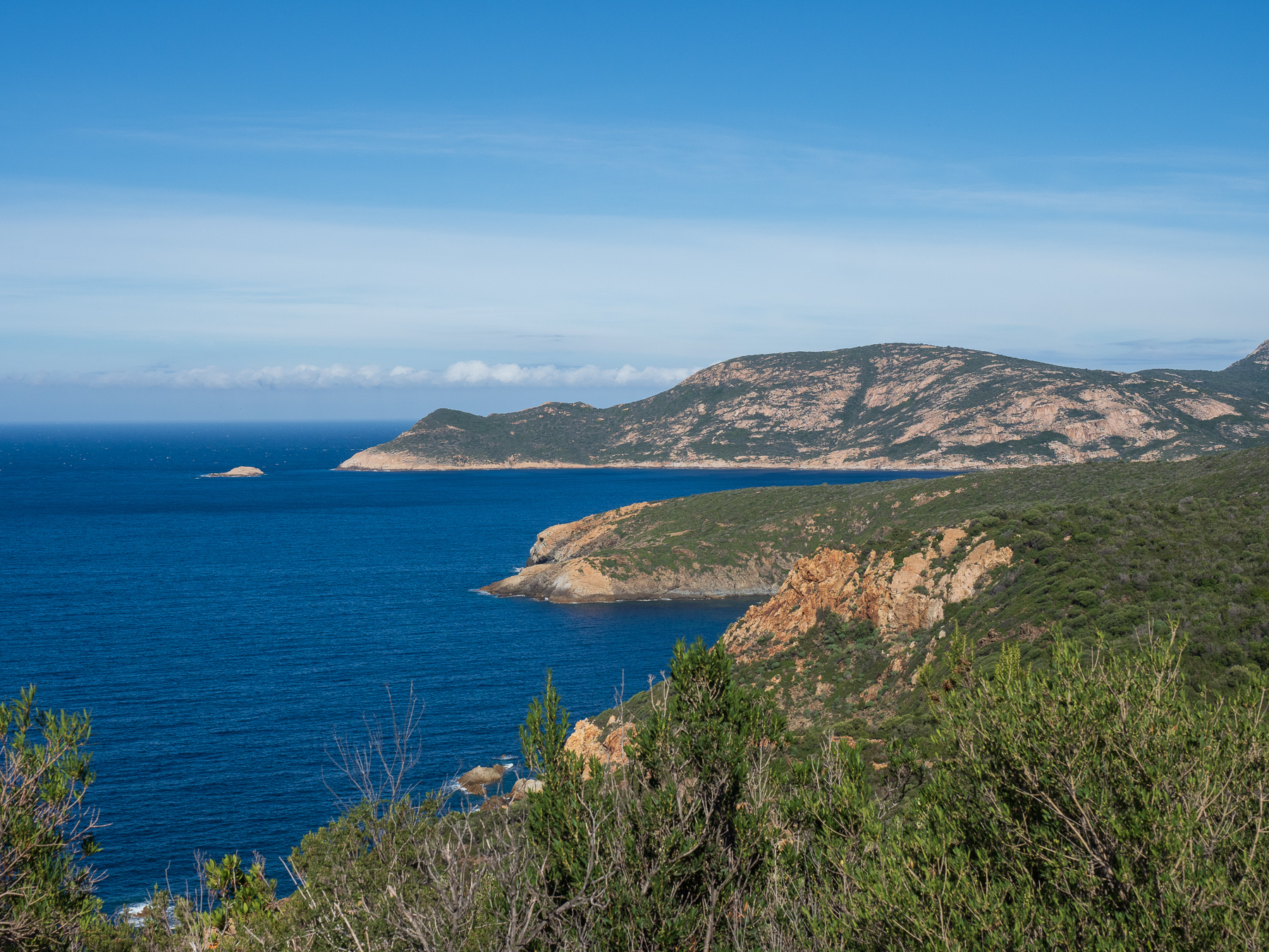 Sie soll zu den schönsten Küstenstraßen Europas gehören, die D81B von Calvi bis nach Porto. Ich bin mit diesen Superlativen immer vorsichtig. Aber was aus meiner Sicht definitiv zutrifft. Die Straße eröffnet atemberaubende Ausblicke auf das Meer und die schroffe Küstenlandschaft. Von Calvi bis Galeria schlängelt sie sich über 36,5km am Berg entlang. Von Galeria bis Porto geht es dann über eine Distanz von 51km genau so weiter. Die Straße ist sehr eng. Deshalb wollte Renate eigentlich auf die D81 ausweichen. Da ich allerdings unbedingt an der Küste entlang wollte, habe ich mich durchgesetzt.
