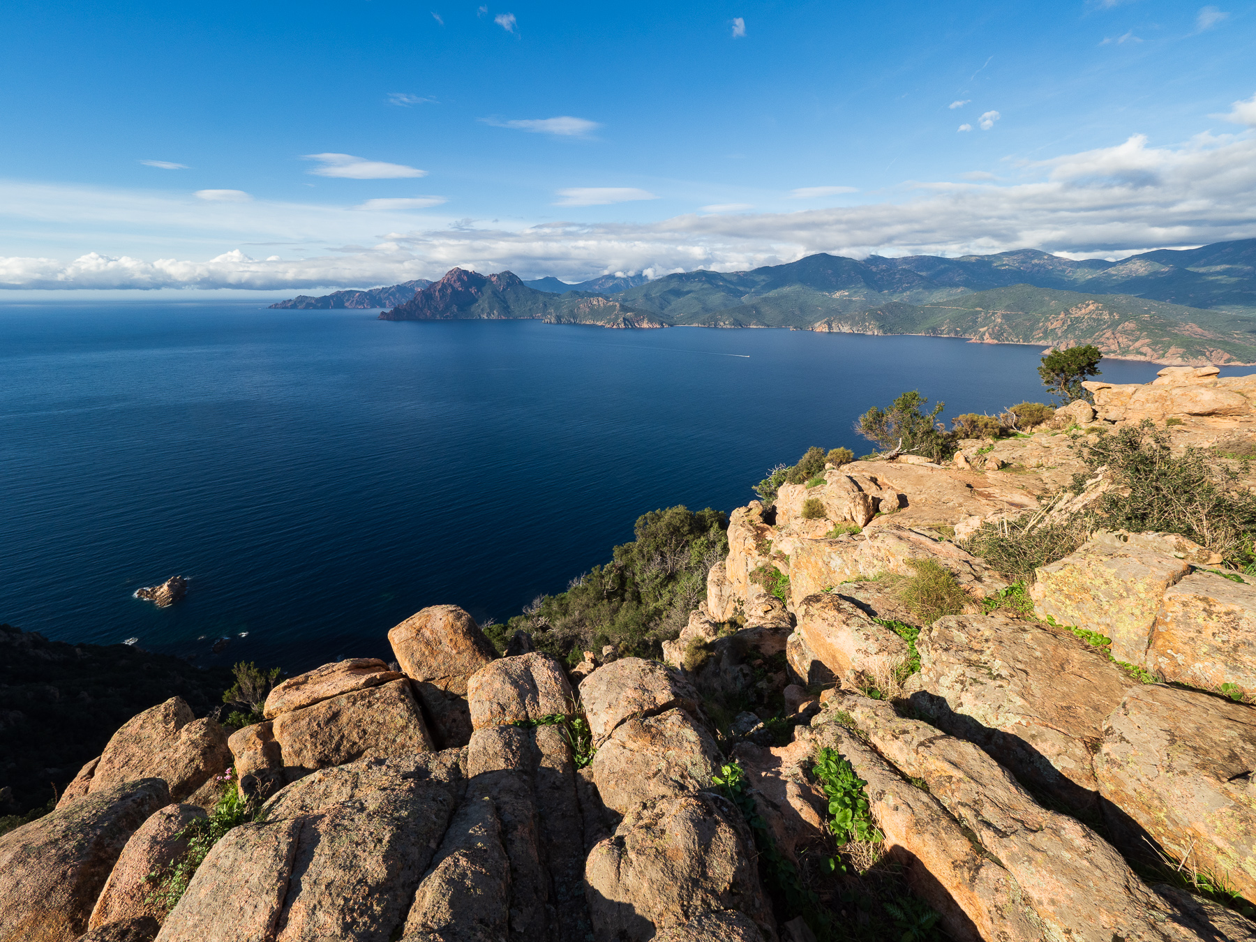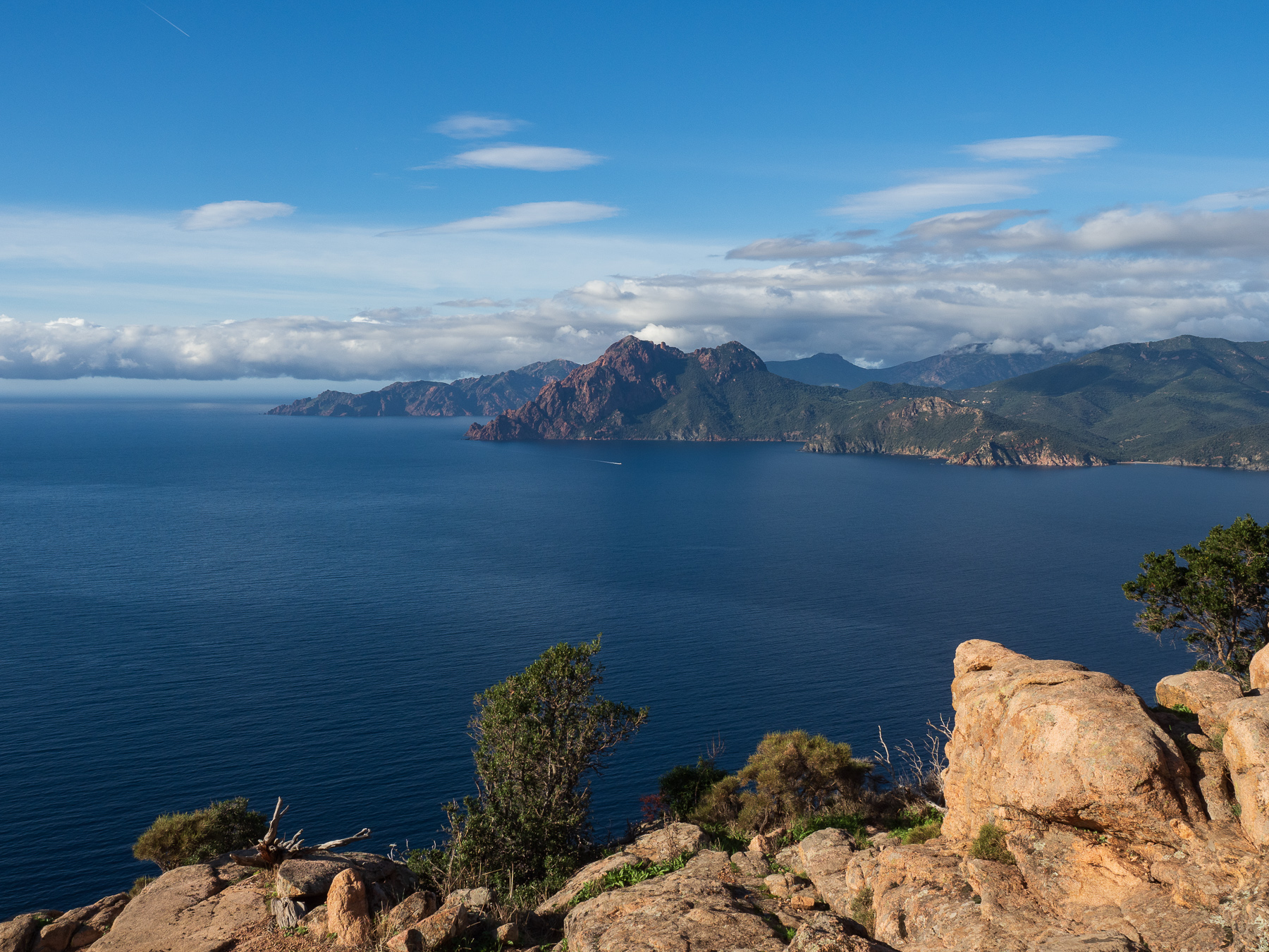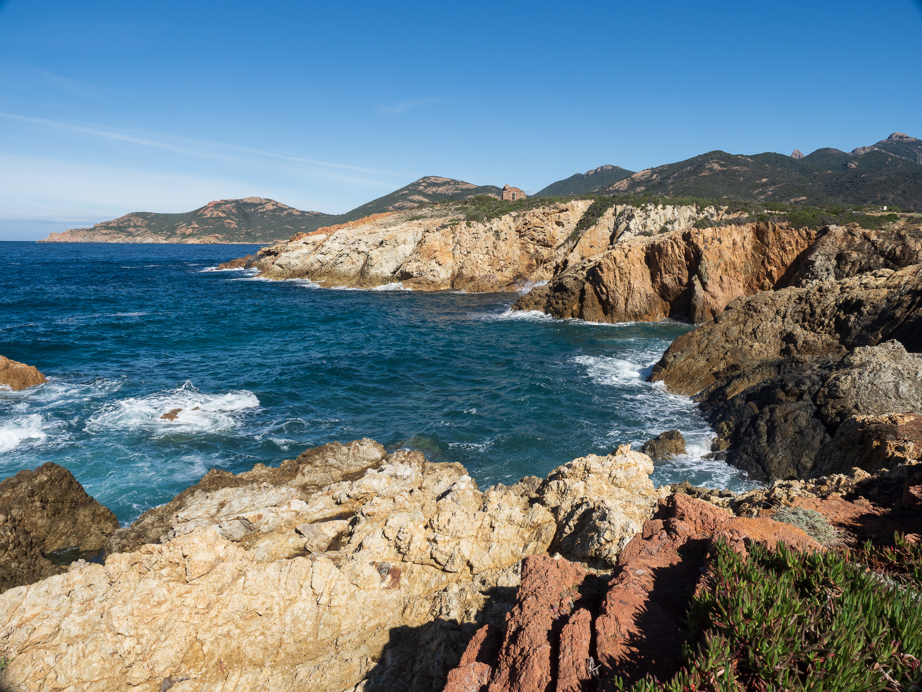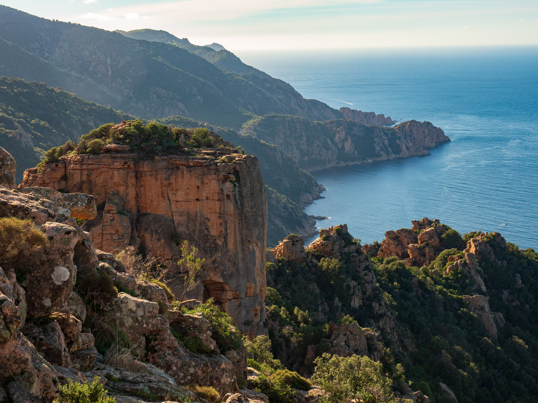 Sie soll zu den schönsten Küstenstraßen Europas gehören, die D81B von Calvi bis nach Porto. Ich bin mit diesen Superlativen immer vorsichtig. Aber was aus meiner Sicht definitiv zutrifft. Die Straße eröffnet atemberaubende Ausblicke auf das Meer und die schroffe Küstenlandschaft. Von Calvi bis Galeria schlängelt sie sich über 36,5km am Berg entlang. Von Galeria bis Porto geht es dann über eine Distanz von 51km genau so weiter. Die Straße ist sehr eng. Deshalb wollte Renate eigentlich auf die D81 ausweichen. Da ich allerdings unbedingt an der Küste entlang wollte, habe ich mich durchgesetzt.