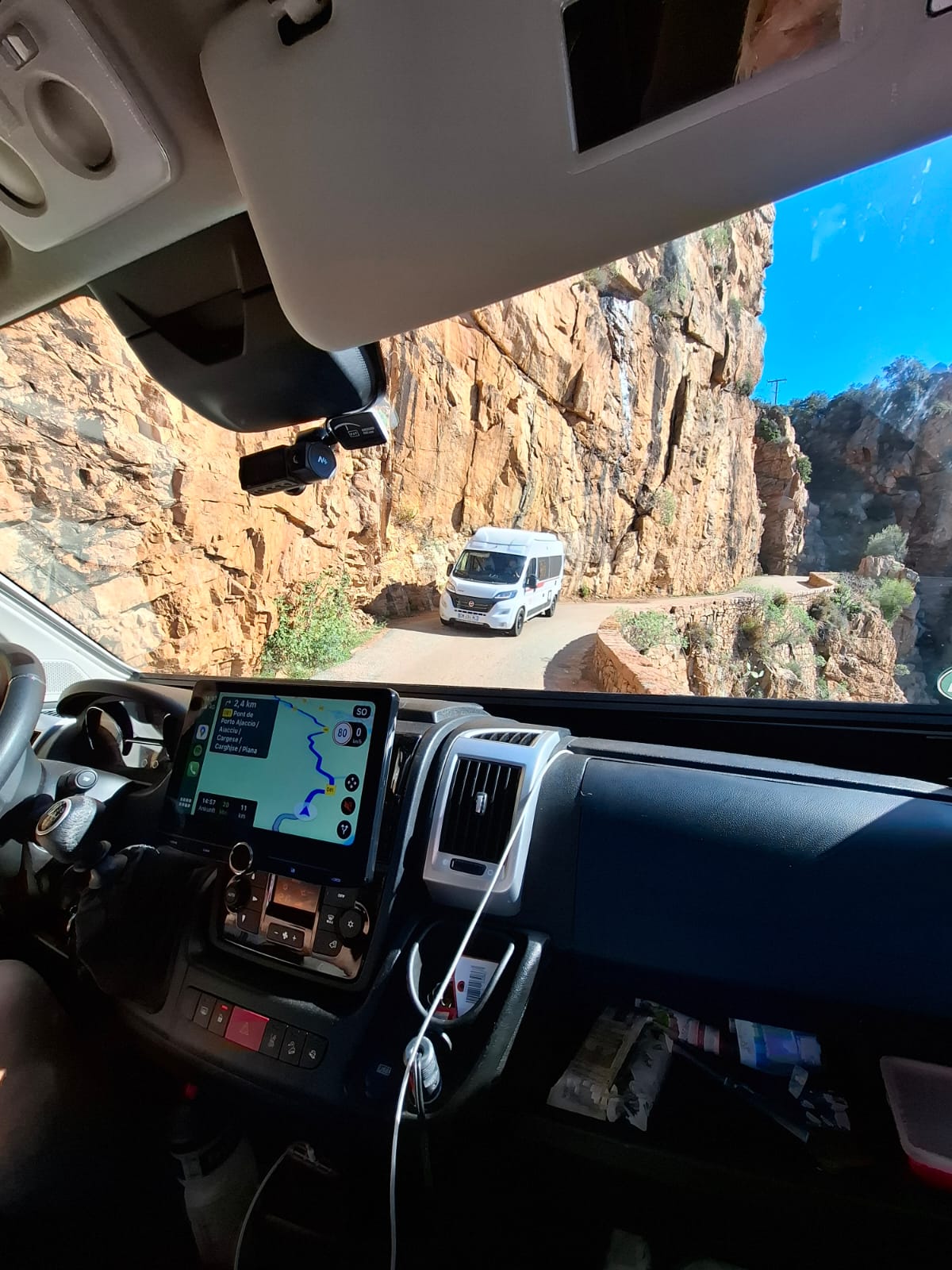 Auch dieses Stück ist sehr eng. Kurz vor Porto gibt es ein paar sehr enge Stellen und just in einer dieser Stellen, in einer Kurve kommt uns ein anderes Wohnmobil entgegen.