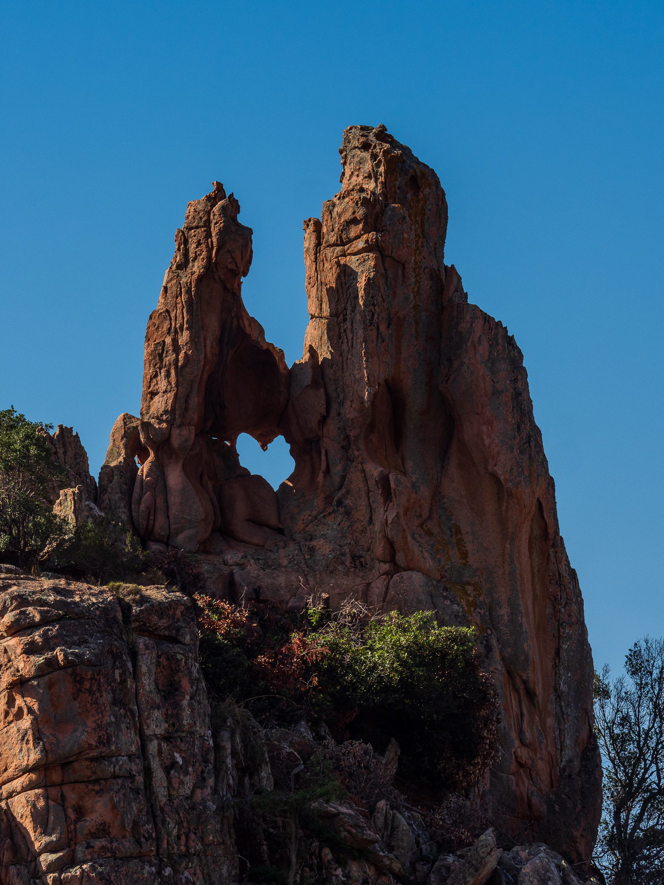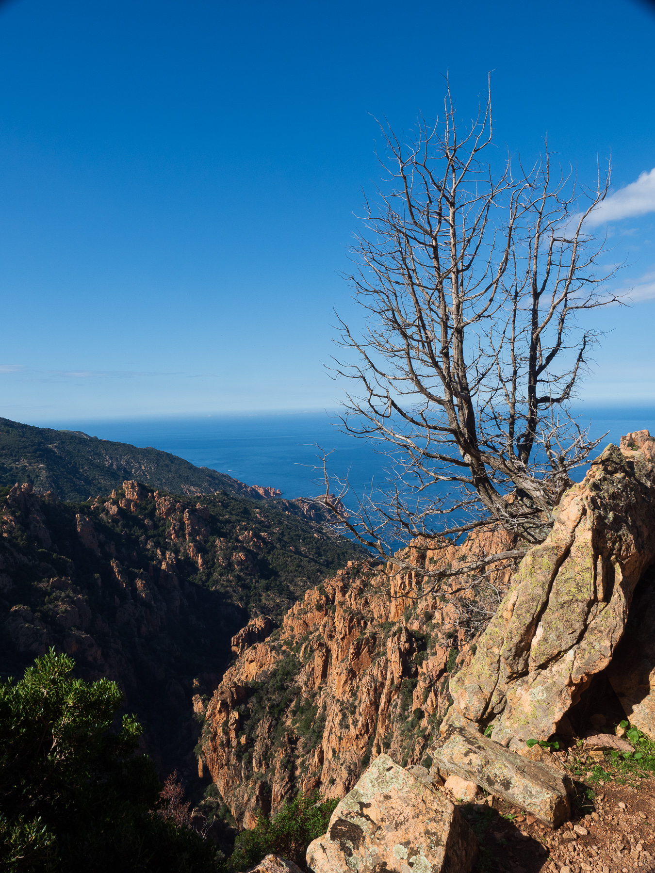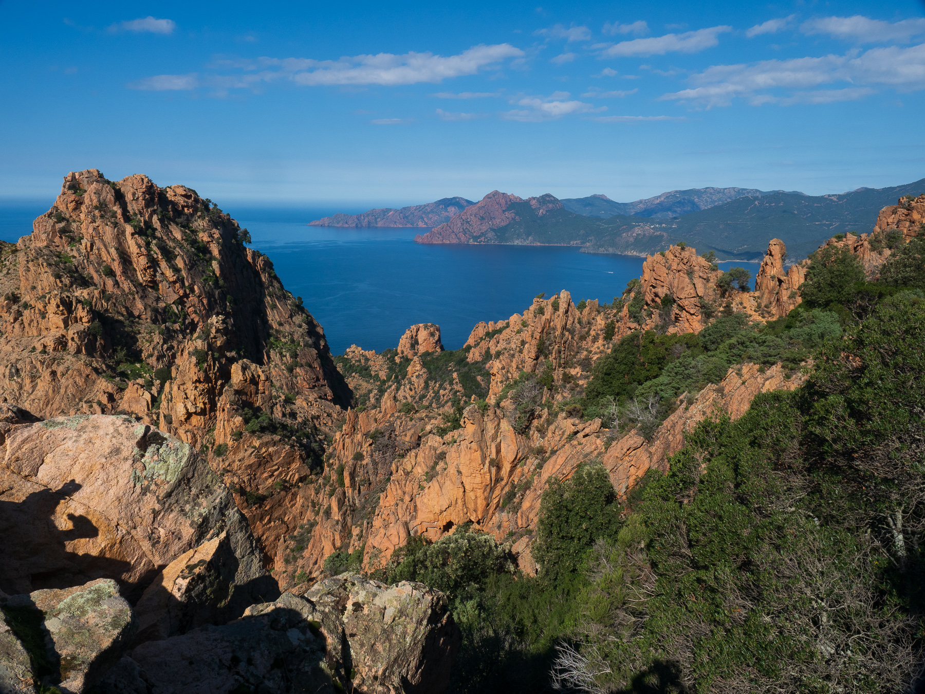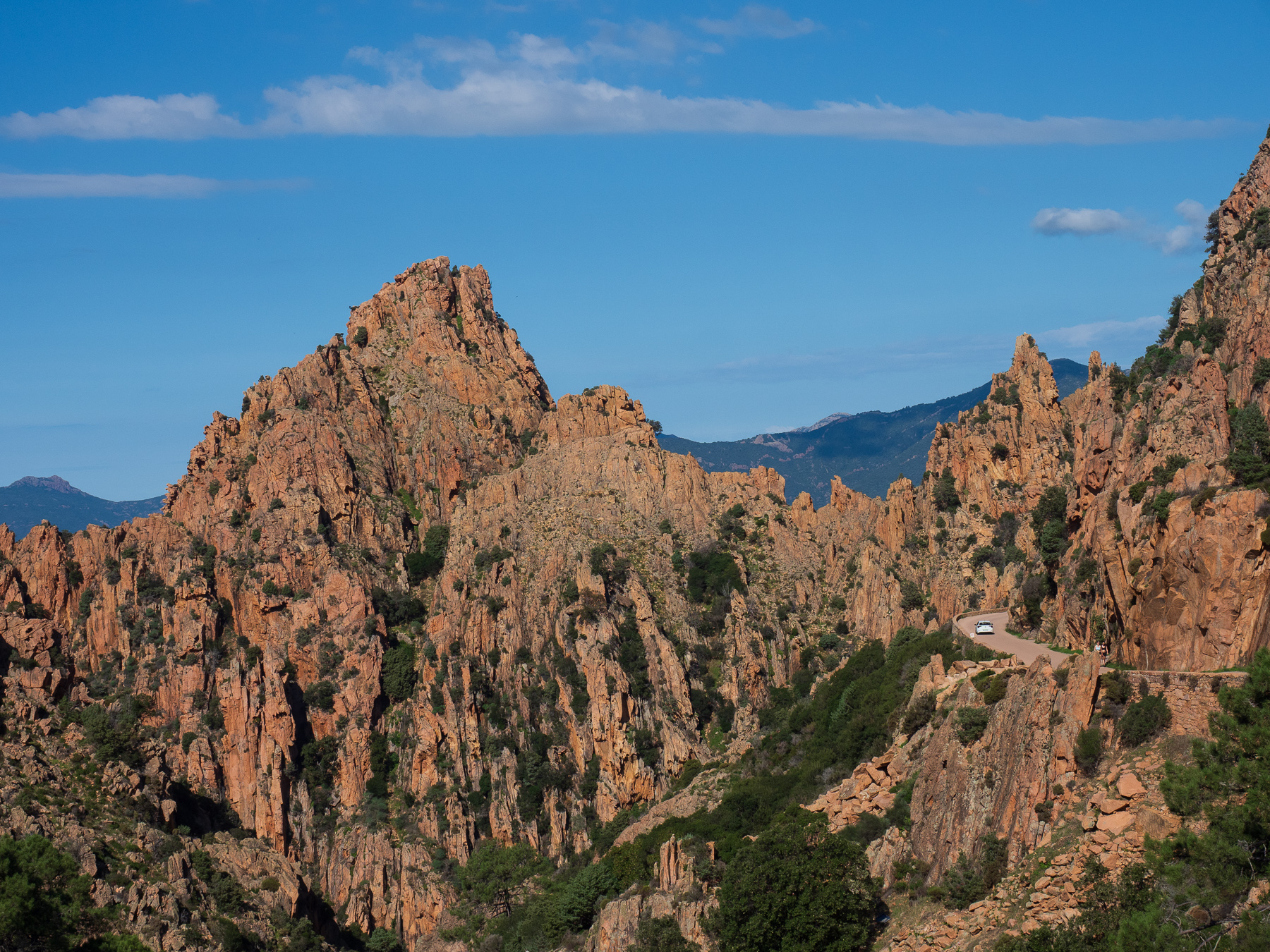 Nachdem wir gestern bei unserer Wanderung zum Château Fort schon einen Vorgeschmack auf die Calanche bekommen haben, machen wir uns heute erneut auf den Weg in die Calanche. Wir wollen den alten Maultierpfad hinauf bis auf die Küstenstraße wandern. Die Wanderung startet am Sportplatz kurz vor Piana und führt durch einen Pinienwald zu den Felsen hinauf (Die Wanderung ist auf paradisu.de gut beschrieben ). Die Strecke ist gut markiert und läßt sich leicht laufen. Erneut sind die Ausblicke von oben grandios. Am Ende steigen wir dann auf die Küstenstraße ab. Diese laufen wir entlang der Felsformationen zurück zum Parkplatz in Piana. Einfach nur Wow. Diese Wanderung wie auch die zum Château Fort können wir nur jedem wärmstens empfehlen.