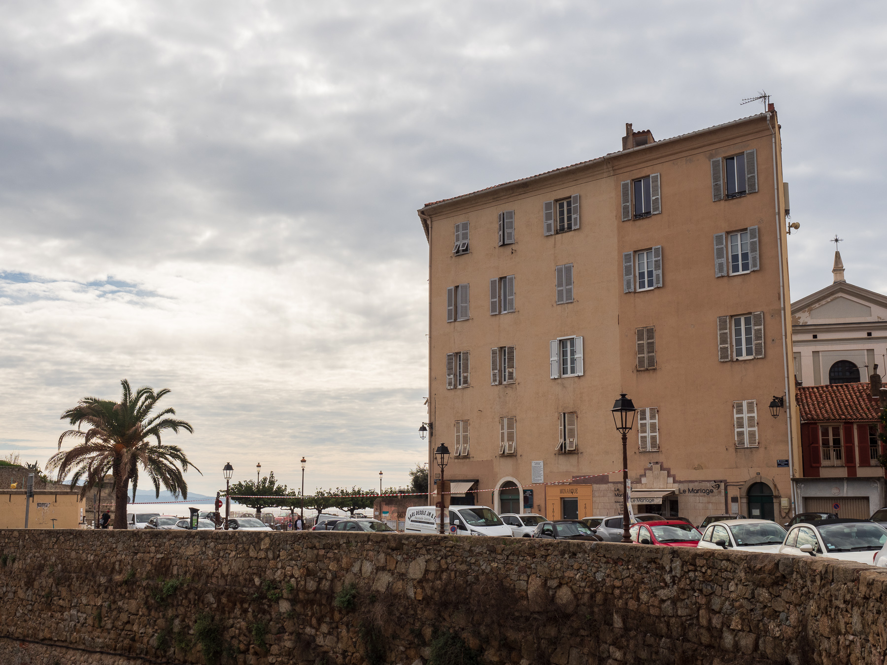 Abgesehen von dieser Bemerkung hat uns Ajaccio gut gefallen. Wir streifen von 11:00 bis 17:00 durch die Stadt. Die Atmosphere ist entspannt, meditieran. Wir laufen über den Markt, der nicht sehr groß ist uns aber gut gefallen hat. In der Markthalle bleibe ich an einem Stand hängen, an dem es leckeres Essen gibt. Mir hat es der Crepe Korsika angetan, mit Schinken, Käse, Tomaten und einem Ei. Sieht super lecker aus. Ich reihe mich in die lange Schlange ein. Nach ein paar Minuten hat die Dame vor mir eine Wortwechsel mit der Chefin des Ladens. Kurz danach erklärt sie mir, dass leider alles aus ist. Sie hat keinen Käse mehr, keine Crepes, alles aus.  So ein Pech.