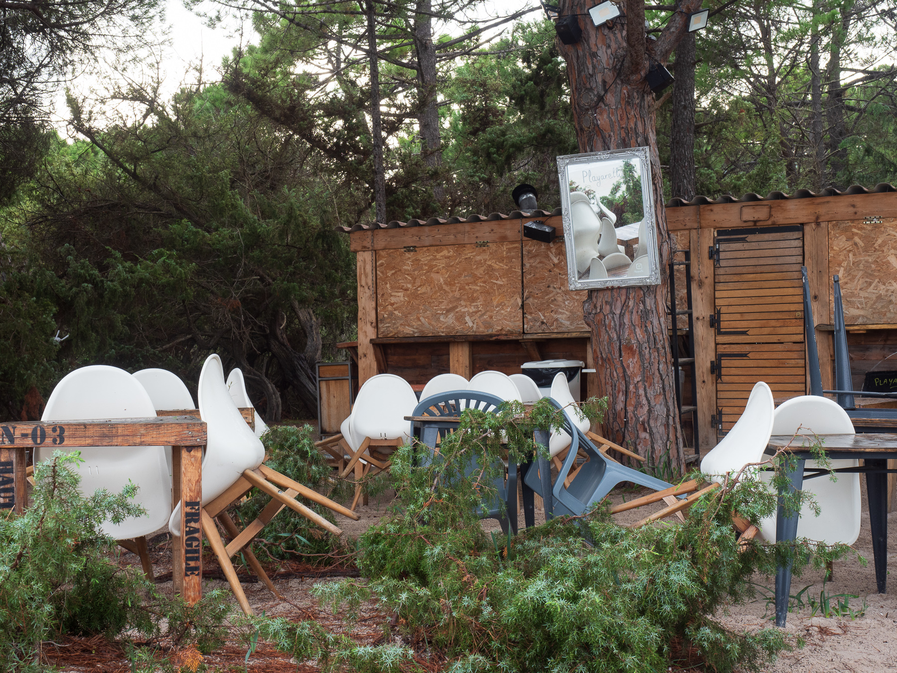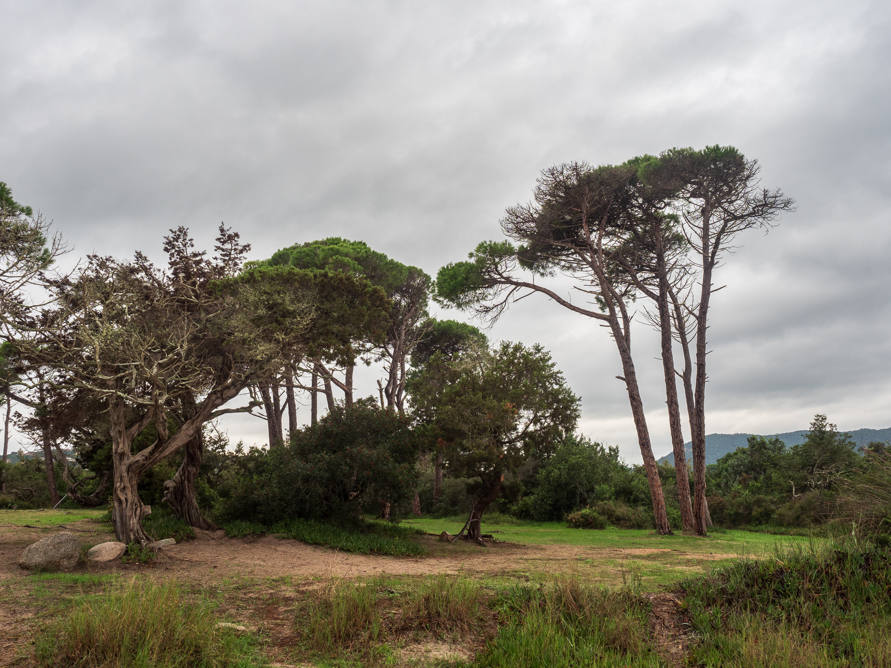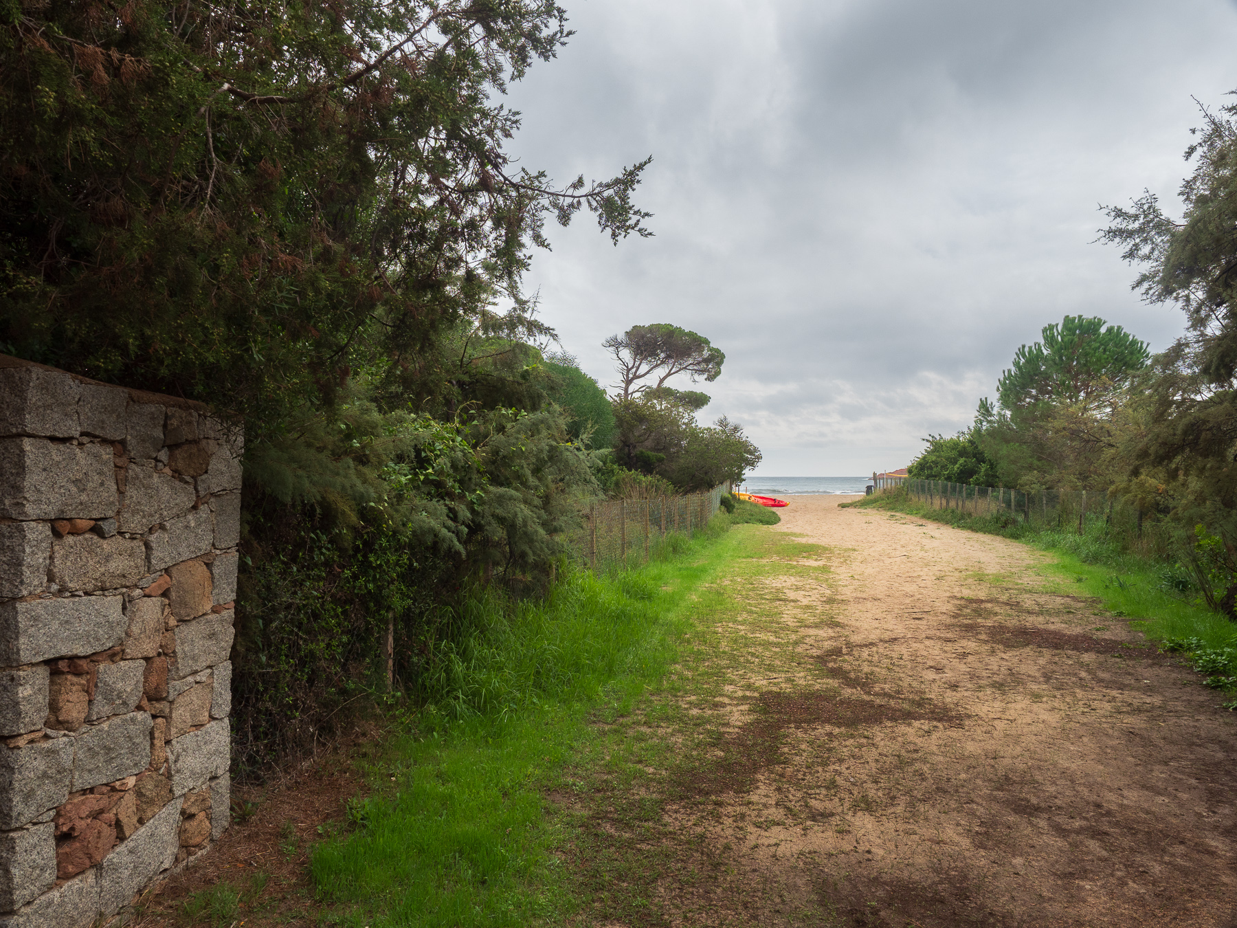 Wir fahren 20 Minuten weiter nach Pinarellu. Hier ist einer der wenigen Campingplätze direkt am Strand an der Ostküste, der noch geöffnet ist. Leider regnet es und die Vorhersage verspricht auch nicht viel Besseres. Der Campingplatz liegt in einem Pinienwald mit direkt Zugang zu einem Sandstrand Plage de Villata in einer kleinen Bucht.