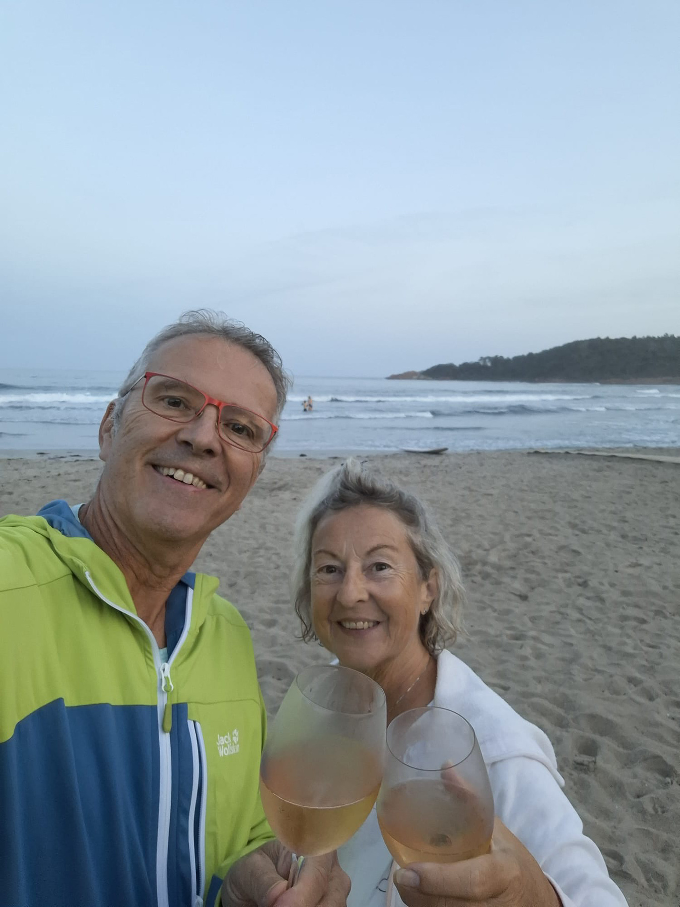 Auf dem Rückweg entscheiden wir noch einmal am wunderschönen Plage de Pinarellu schwimmen zu gehen. Ausklingen lassen wir den Tag an unserem „hauseigenen“ Strand mit einem Gläschen Champagner. Auch solche faulen Tage sind mal schön.