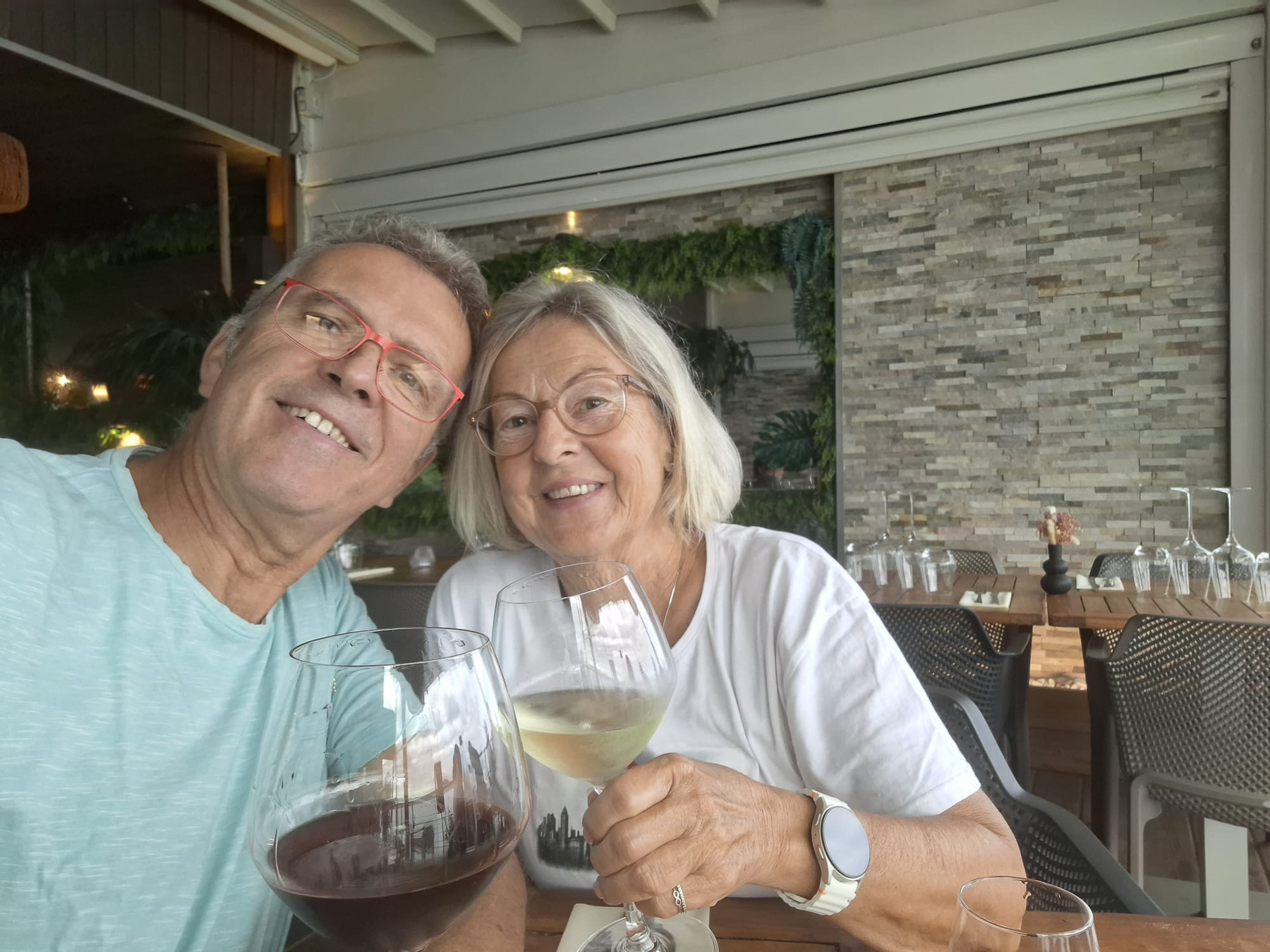 Der Tag heute steht ganz im Zeichen Renates Geburtstag. Mit anderen Worten: der Beitrag heute wird kurz. Um 13:00 Uhr haben wir einen Tisch im Restaurant La Casa in Pinarellu reserviert. Von unserem Campingplatz laufen wir in 45 Minuten zu dem gemütlichen Restaurant mit Meerblick. Leider ist das Essen nicht ganz so gut, wie erhofft. Mein Rinderfilet ist eher durchschnittlich, das Ceviche, das ich als Vorspeise habe, hätte etwas mehr Finesse verdient. Dafür ist Renates Doradenfilet mit Sellerie Granit sehr gut. Auch mein Desert, ein Pommes Rôtie, oder in deutsch Bratapfel mit Eis schmeckt lecker. Der Wein ist auch gut.
