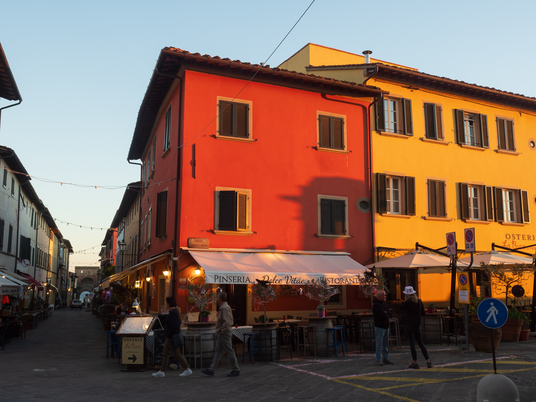 Zunächst peilen wir Lucca an. Dann hat Renate während der Fahrt die Fattoria il Poggio als Ziel auserkoren. Ein Weingut, bei dem wir übernachten und zu Abend essen können. Hört sich gut an. Dort angekommen, ist alles schnell geklärt: wir haben einen Tisch für 19:00 reserviert und können uns auf dem großen Parkplatz irgendwo hinstellen.