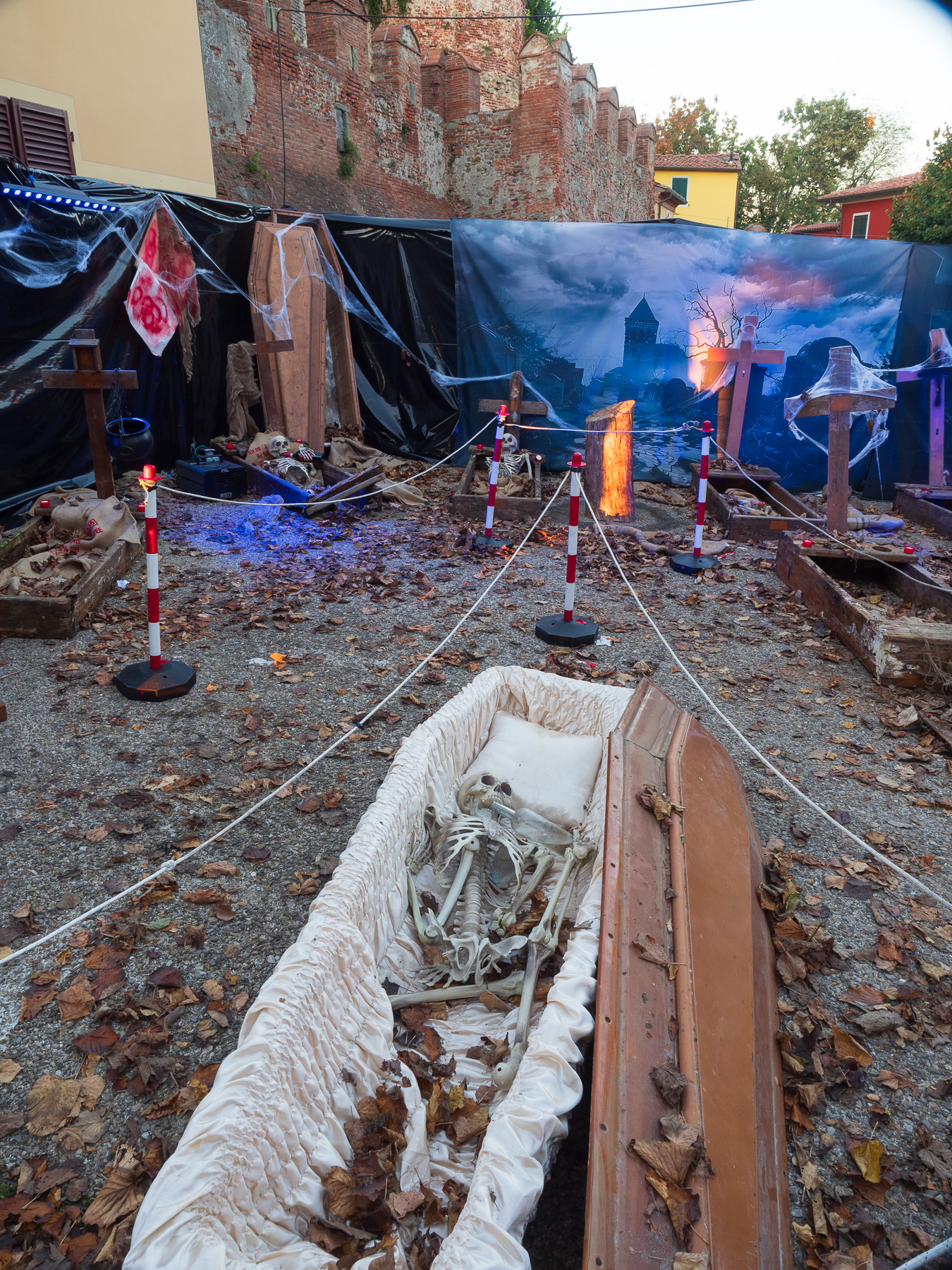 Da wir noch ein wenig Zeit haben, unternehmen wir einen selbstmörderischen Spaziergang entlang der Landstraße in die auf einem Hügel thronende Ortschaft Montecarlo. Der Ort ist nett anzuschauen und die Vorbereitungen für Halloween laufen auf vollen Touren. So was habe ich noch nicht gesehen. Die Restaurants sind geschmückt, die Service Kräfte Halloween mäßig verkleidet und es gibt sogar eine Art Halloween Parcour, so eine Art Geisterbahn zu Fuß.  Wahnsinn!