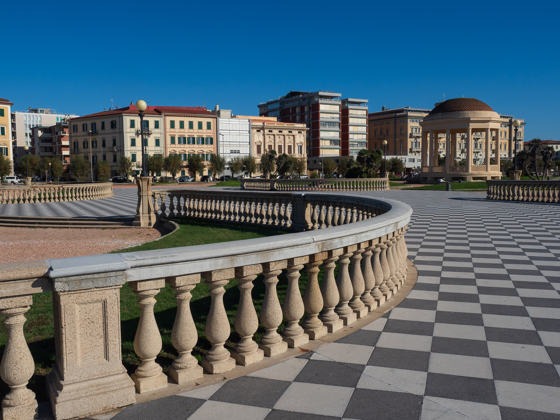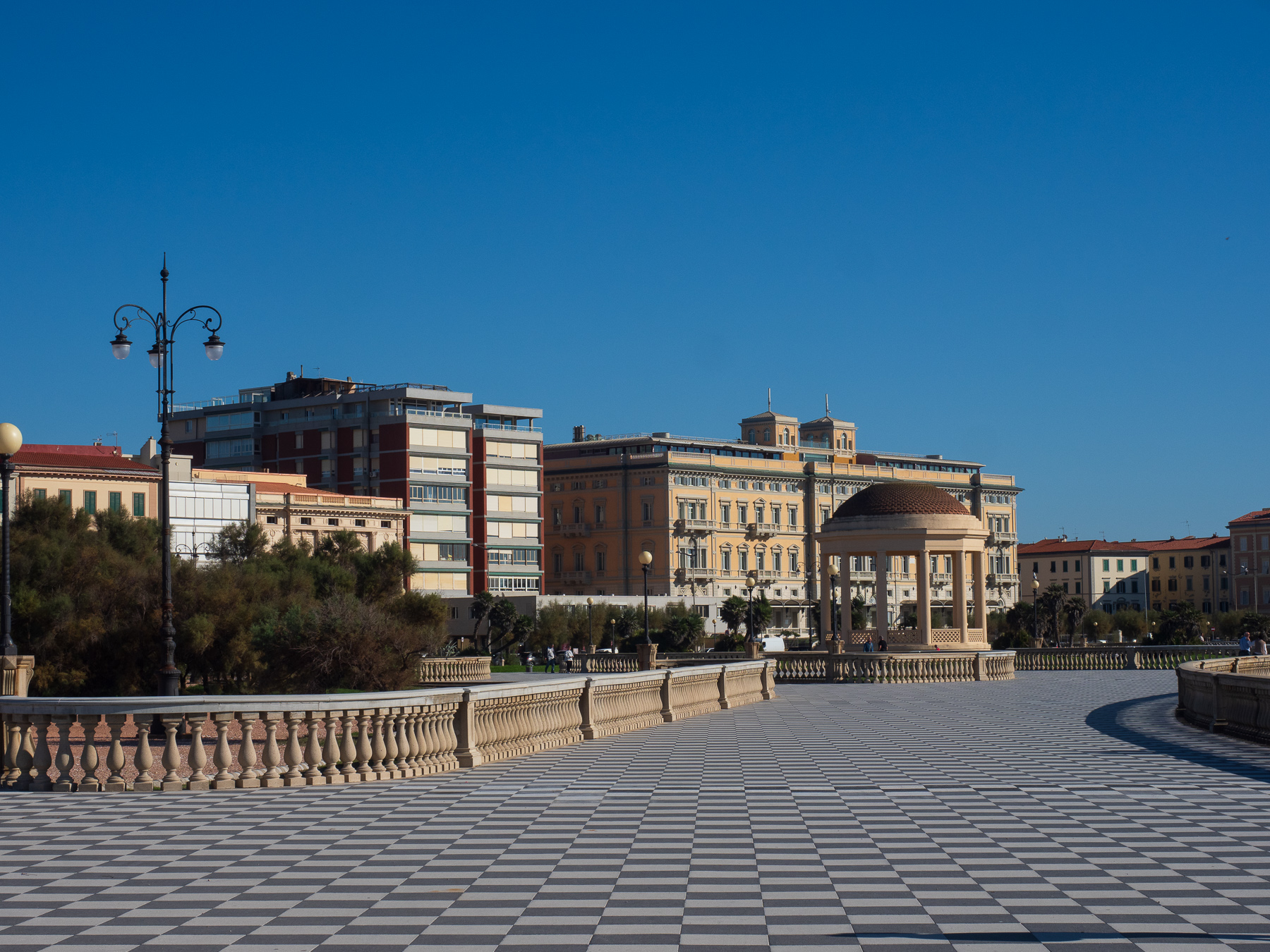 Die Fähre kommt 13:00 Uhr pünktlich in Livorno an.  Das Wetter zeigt sich von seiner besten Seiten. Es ist richtig warm. Gefühlte 25 Grad Celcius. Bevor Livorno verlassen, wollen wir uns noch die Mascagni-Terrassen anschauen. Auf der Hinfahrt war uns der Fussmarsch dahin zu weit. Wir schlendern einmal über die Terrassen und machen uns dann an die Weiterfahrt.