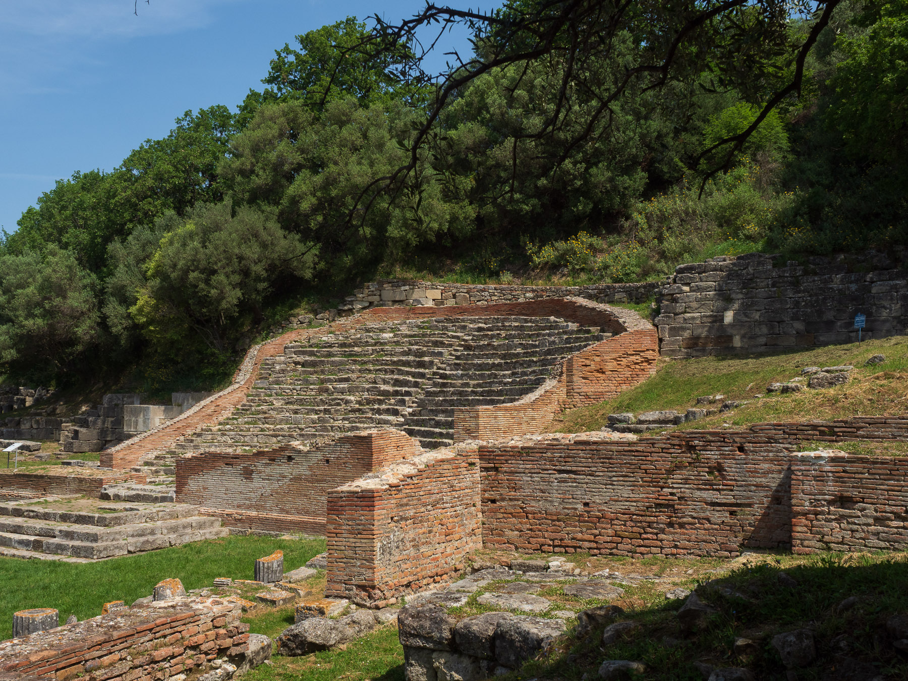 Wir schaffen es schon um 10 Uhr zu starten. Unser erster Stopp soll Apollonia, eine antike Ausgrabungsstätte. Hier stand einst eine Stadt, die 588 v. Chr. im Zuge der griechischen Kolonisation als dorische Kolonie von Korfu unter Beteiligung von Siedlern aus Korinth gegründet. Die Stadt liegt auf einem Hügel, nördlich des Flusses Vjosa. Man mag es kaum glauben: der Fluss war in der Antike bis Apollonia schiffbar. Erst durch ein Erdbeben wurde der Flusslauf verändert. was dann auch den Niedergang Apollonias einleitete. 5% von Apollonia sind derzeit ausgegraben. Am eindrucksvollsten ist das Portal des Buleuterions, ein Rathaus oder Versammlungsstätte und das Amphitheater.