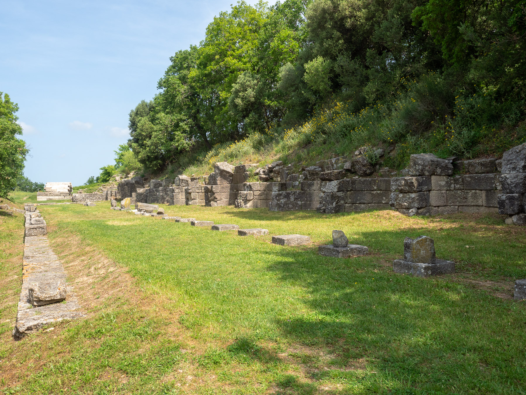 Wir schaffen es schon um 10 Uhr zu starten. Unser erster Stopp soll Apollonia, eine antike Ausgrabungsstätte. Hier stand einst eine Stadt, die 588 v. Chr. im Zuge der griechischen Kolonisation als dorische Kolonie von Korfu unter Beteiligung von Siedlern aus Korinth gegründet. Die Stadt liegt auf einem Hügel, nördlich des Flusses Vjosa. Man mag es kaum glauben: der Fluss war in der Antike bis Apollonia schiffbar. Erst durch ein Erdbeben wurde der Flusslauf verändert. was dann auch den Niedergang Apollonias einleitete.  5% von Apollonia sind derzeit ausgegraben. Am eindrucksvollsten ist das Portal des Buleuterions, ein Rathaus oder Versammlungsstätte und das Amphitheater.