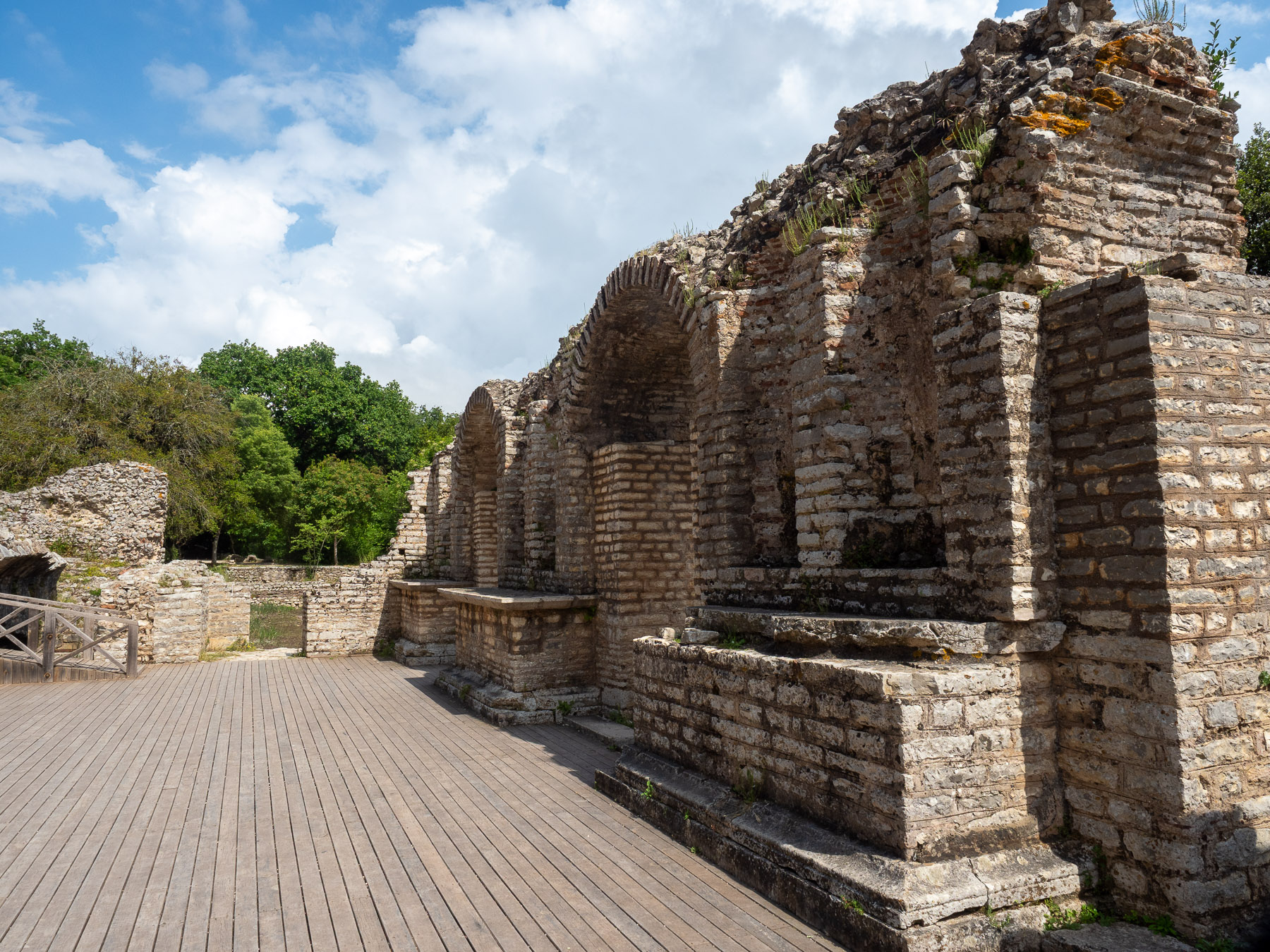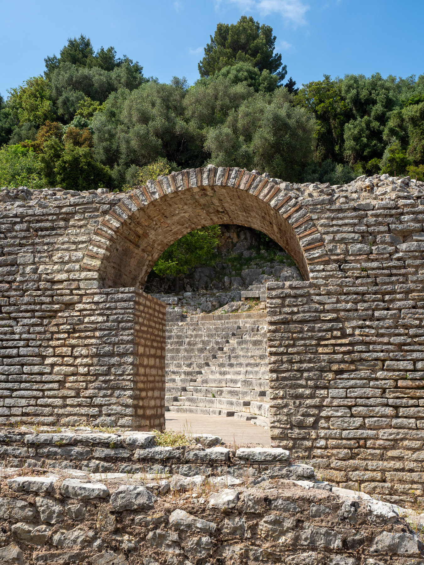 Unser zweiter Stop führt uns zur Ausgrabungstätte Butrint, UNESCO Weltkulturerbe und meistbesuchte archäologische Ausgrabungsstätte Albaniens. Die ältesten Funde in Butrint stammen aus dem 10. bis 8. Jahrhundert v. Ch. Butrint stand zunächst unter griechischem Einfluss, später unter römischer, dann byzantinischer, venezianischer und osmanischer Herrschaft. Damit ist sie ein Spiegel mediterraner Kultur- und Entwicklungsgeschichte. Auch wenn der Vergleich nicht wirklich passt, so kommt mir beim herumwandern, Ankor Wat in den Sinn: Die Ruinen im Wald, die teilweise von der Natur zurückerobert wurden. Der Stopp hier hat sich definitiv gelohnt.