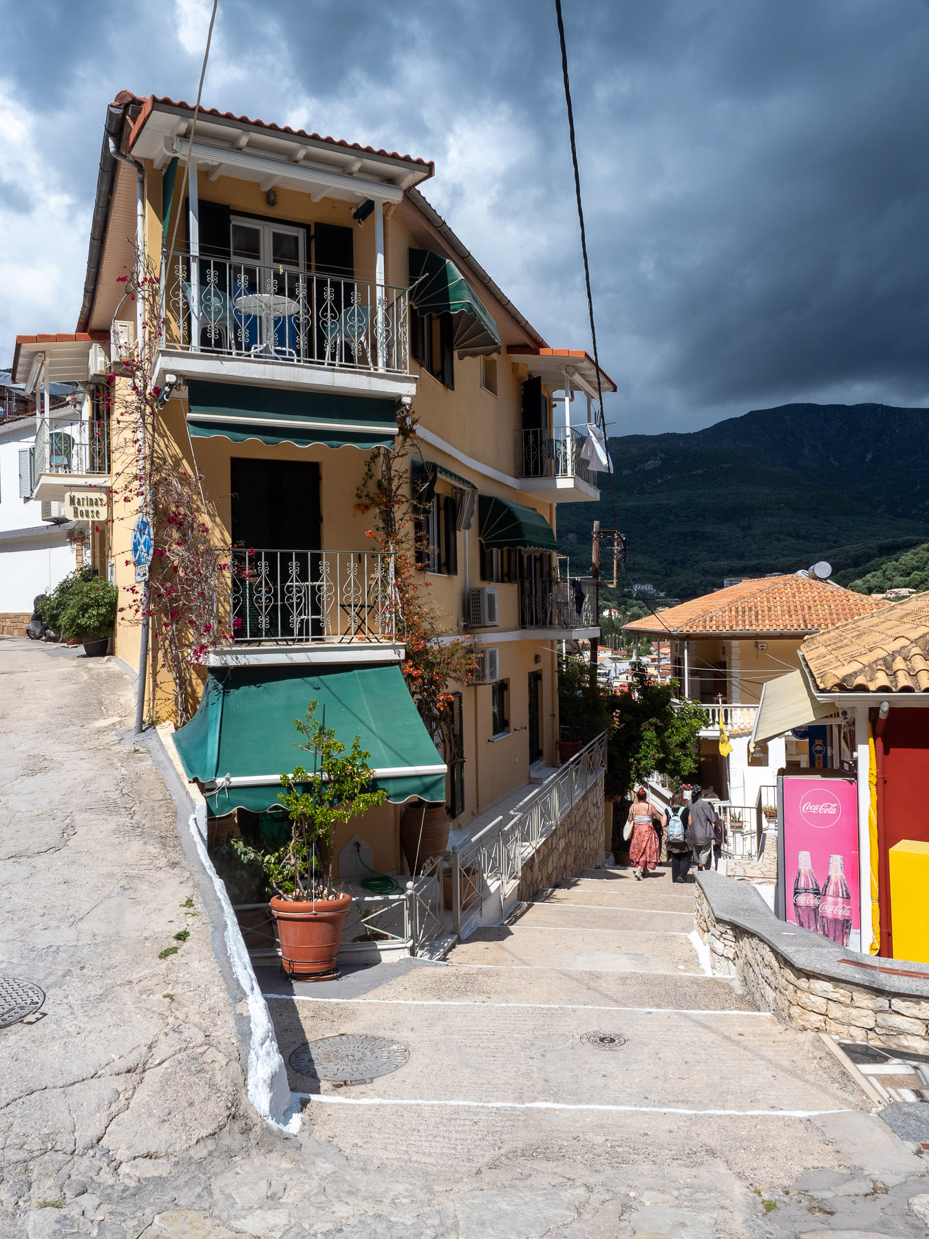 Unser Ziel ist Parga eine kleine Stadt am Ionischen Meer. Parga hängt mit seinen bunten Häusern malerisch am Hang. Am Strand verläuft eine schöne Uferpromenade mit vielen Restaurants und Bars. Mir gefällt, das hier jenseits der Touristen auch das Leben der Einheimischen stattfindet. Das verleiht dem Ort viel Authentizität und Charme. Zwischen der Bucht von Parga und dem angrenzenden Valtos Strand thront eine venezianische Burg,