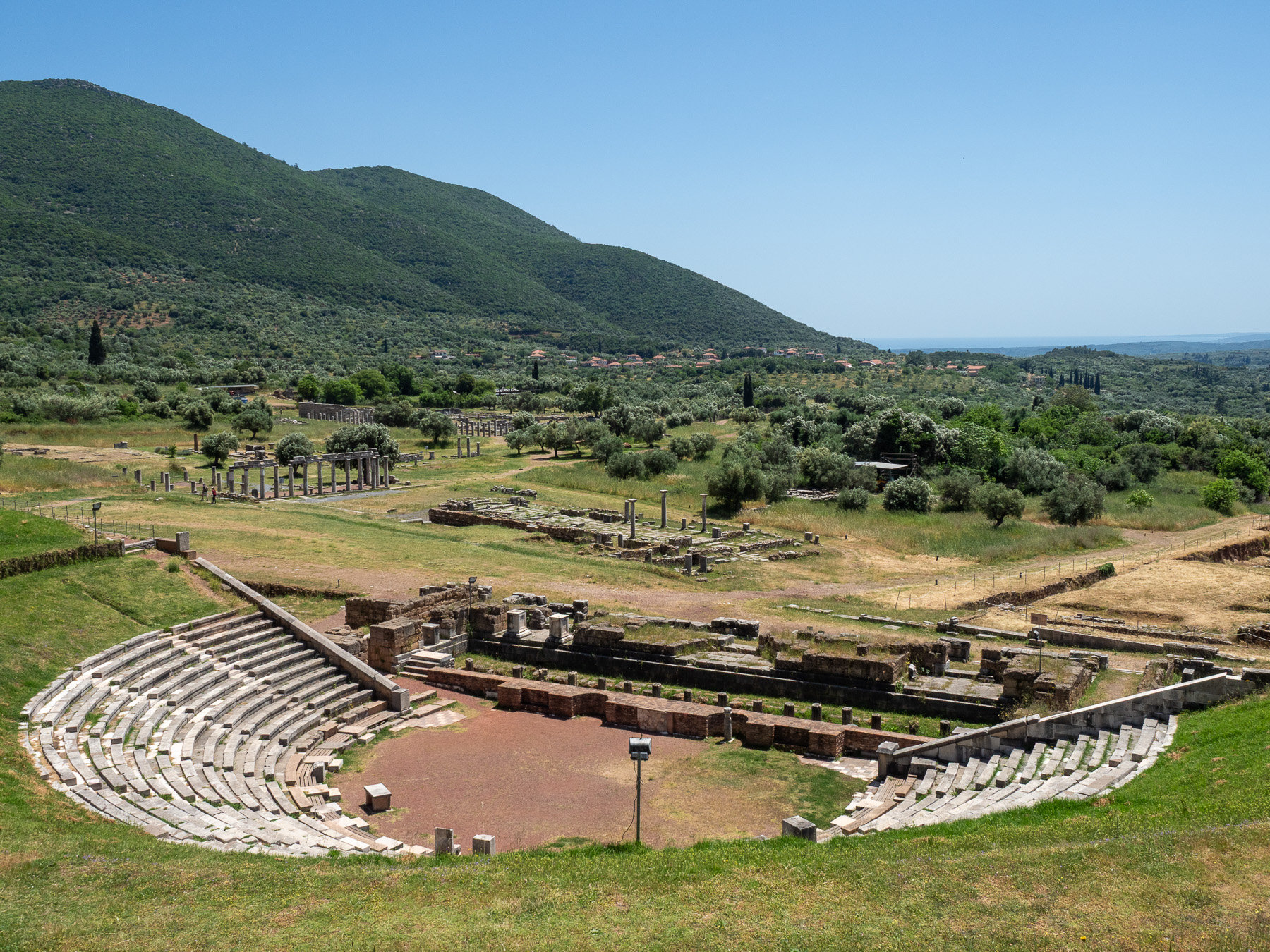 Erstes Ziel des Tages ist die antike Stadt Messini. Die im 4. Jahrhundert v. Chr. gegründete Stadt war einst ein bedeutender, stark befestigter Stützpunkt der Spartaner. Das Gelände ist weitläufig und beeindruckend – mindestens ebenso wie Olympia, nur mit dem großen Vorteil, dass es hier deutlich ruhiger und weniger überlaufen ist.