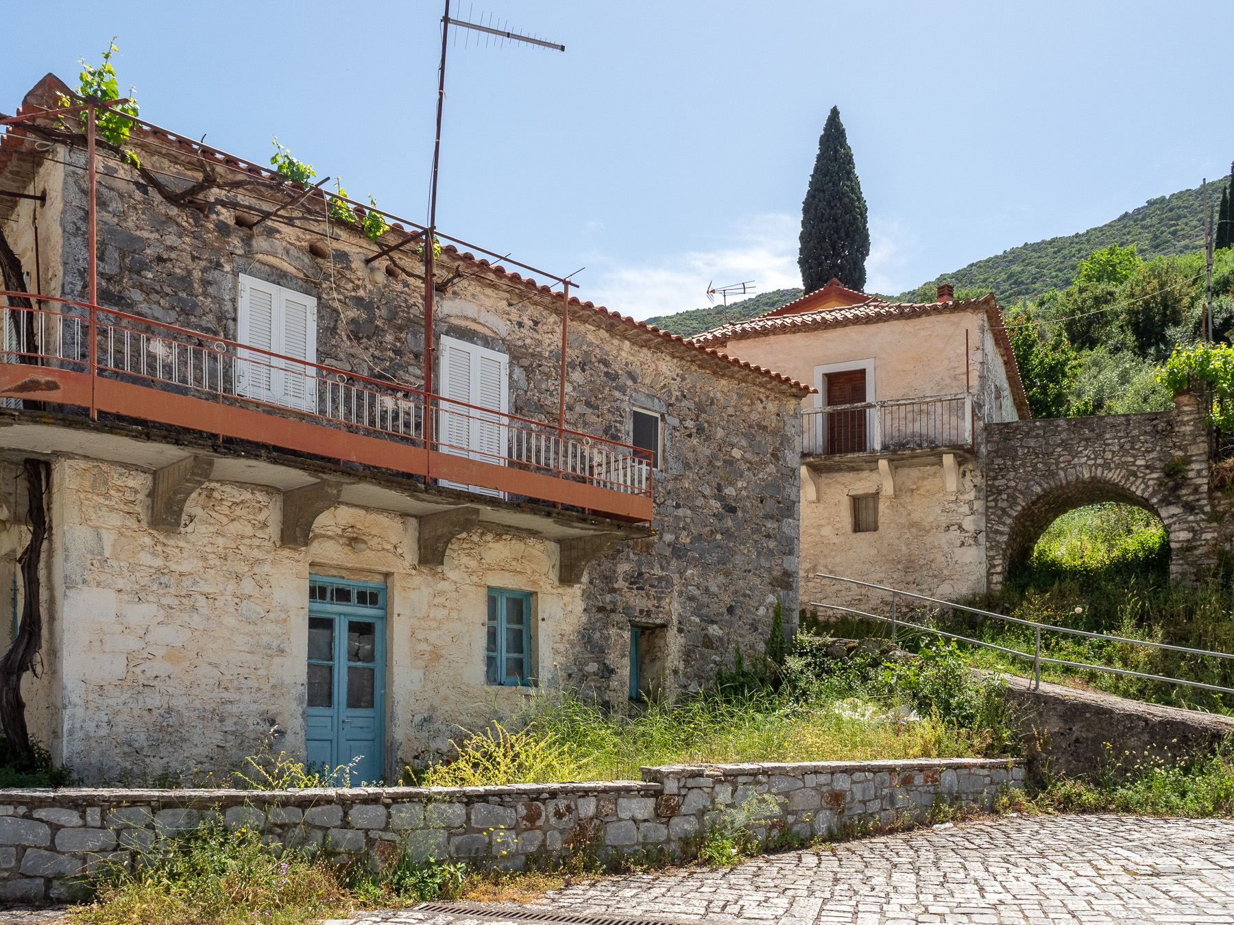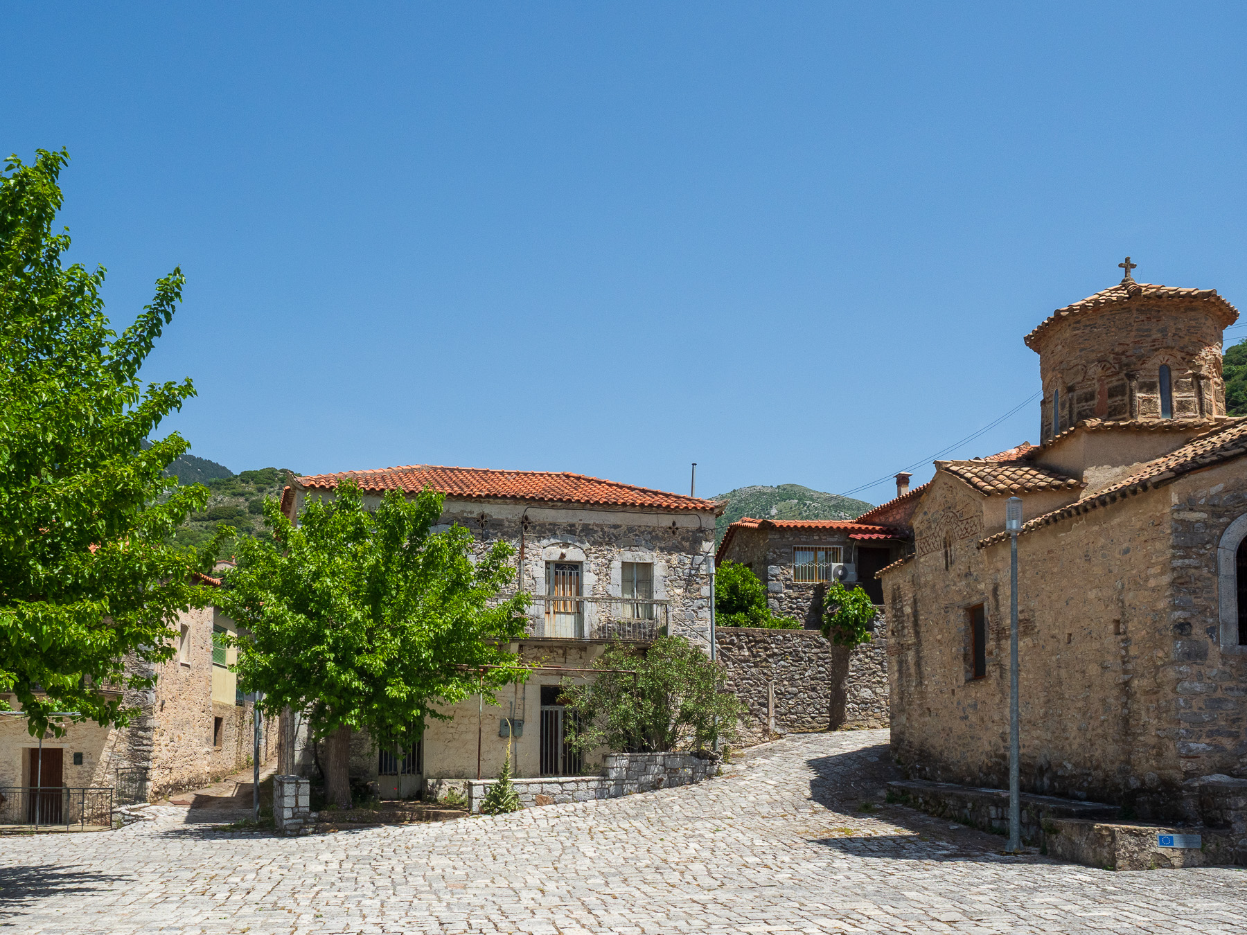 Die Straße nach Limeni wird noch enger. Wir passieren mehrere kleine Bergdörfer und halten an einer Bäckerei direkt an der Straße für einen Kaffee und ein wenig Gebäck. Die Auswahl an Backwaren ist riesig – hier scheint die halbe Mani versorgt zu werden.