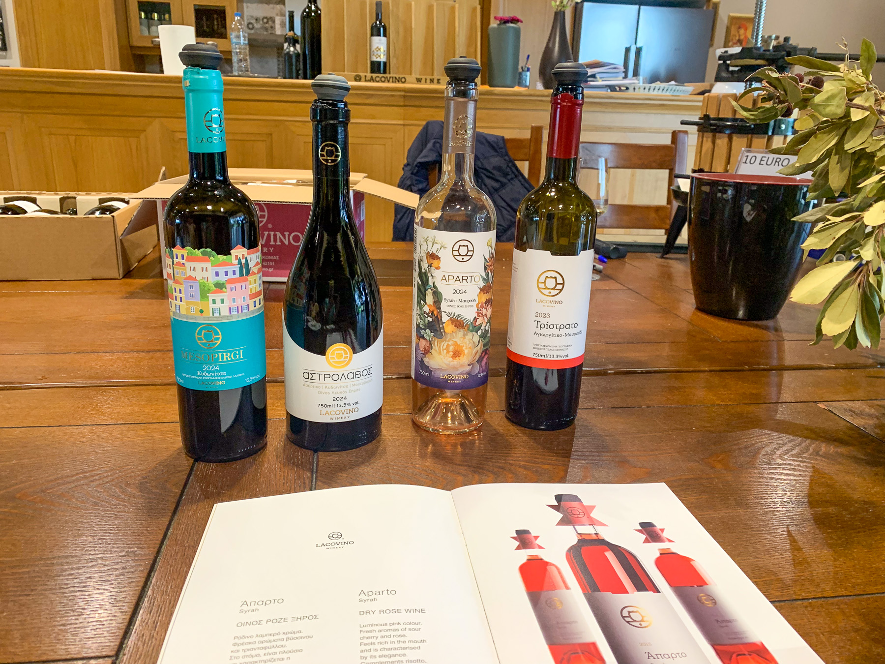 Am Nachmittag erreichen wir schließlich das Weingut Lacovino. Der Winzer empfängt uns herzlich und nimmt sich viel Zeit für die Weinprobe. Wir verkosten verschiedene Weine und sind vor allem vom Weißwein-Cuvée aus Asyrtiko, Monemvasia und Kidonitsa begeistert. Dieses Cuvet übrezeugt uns so sehr, dass direkt sechs Flaschen davon ins WoMo wandern.