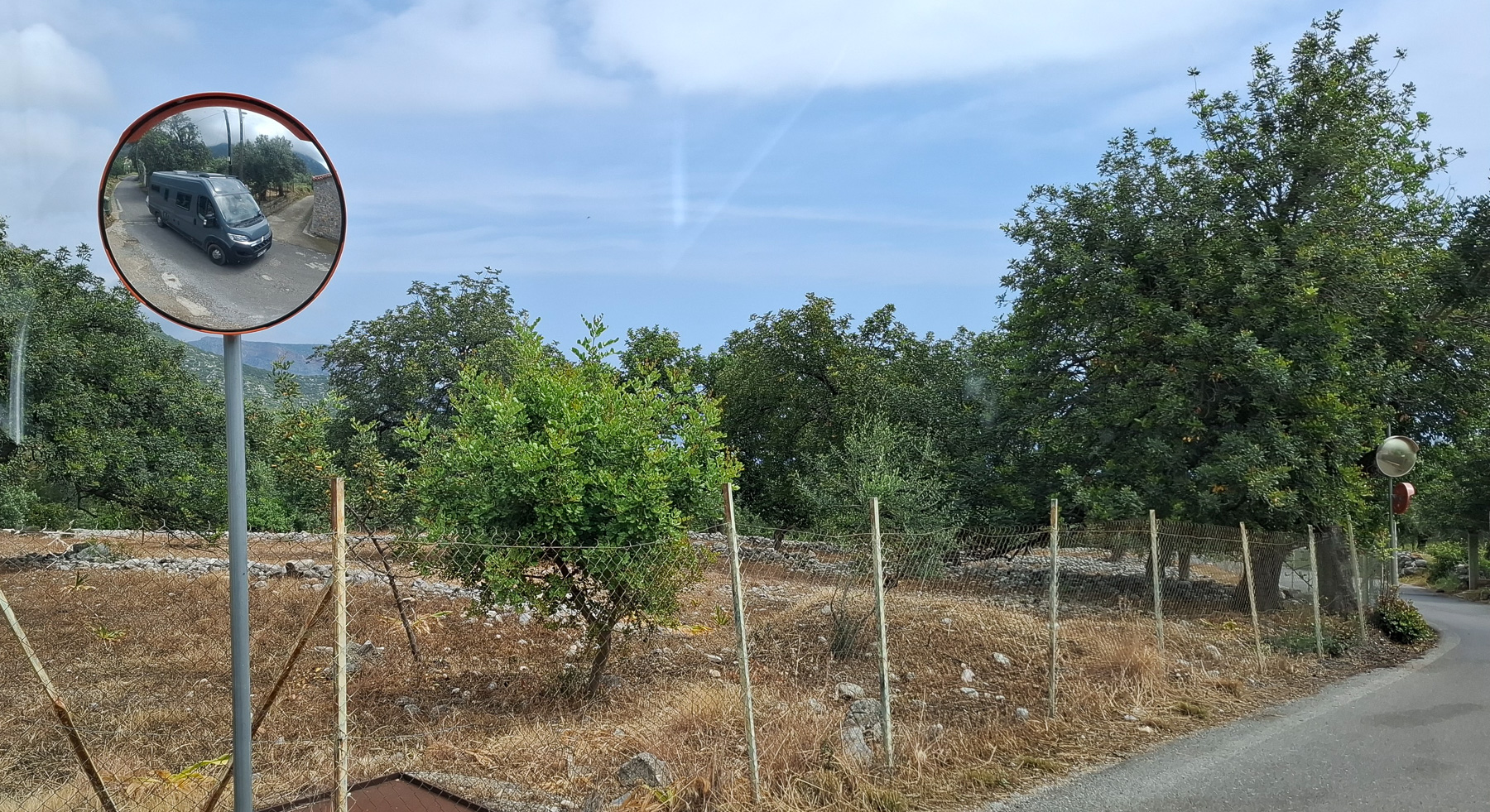 Wir nehmen Abschied von unserer Traumbucht am Fokianos Beach. Die heutige Etappe führt uns nur ein paar Kilometer weiter, doch der Weg hat es in sich: In zahlreichen engen Serpentinen schrauben wir uns durch die Berglandschaft – mal bergauf, mal bergab.