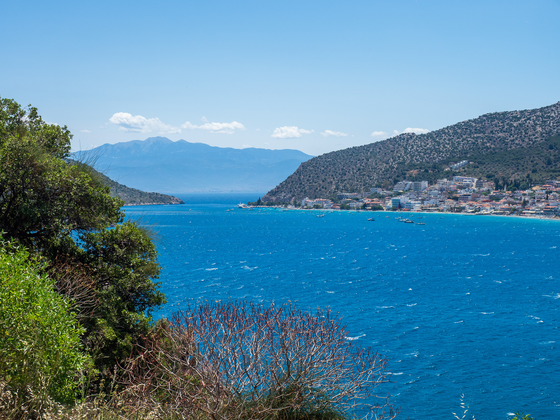 Tolo selbst wirkt auf uns eher unspektakulär. Es fehlt ein wenig an Charme. Doch kulinarisch hat der Ort definitiv etwas zu bieten: Direkt am Strand reihen sich Tavernen aneinander, deren Tische teilweise direkt im Sand stehen – mit den Füßen fast im Wasser. In einer dieser Tavernen kehren wir ein. Ich entscheide mich für einen gegrillten Red Snapper mit Gemüse, während Renate Shrimps Saganaki genießt. Beides schmeckt einfach fantastisch.