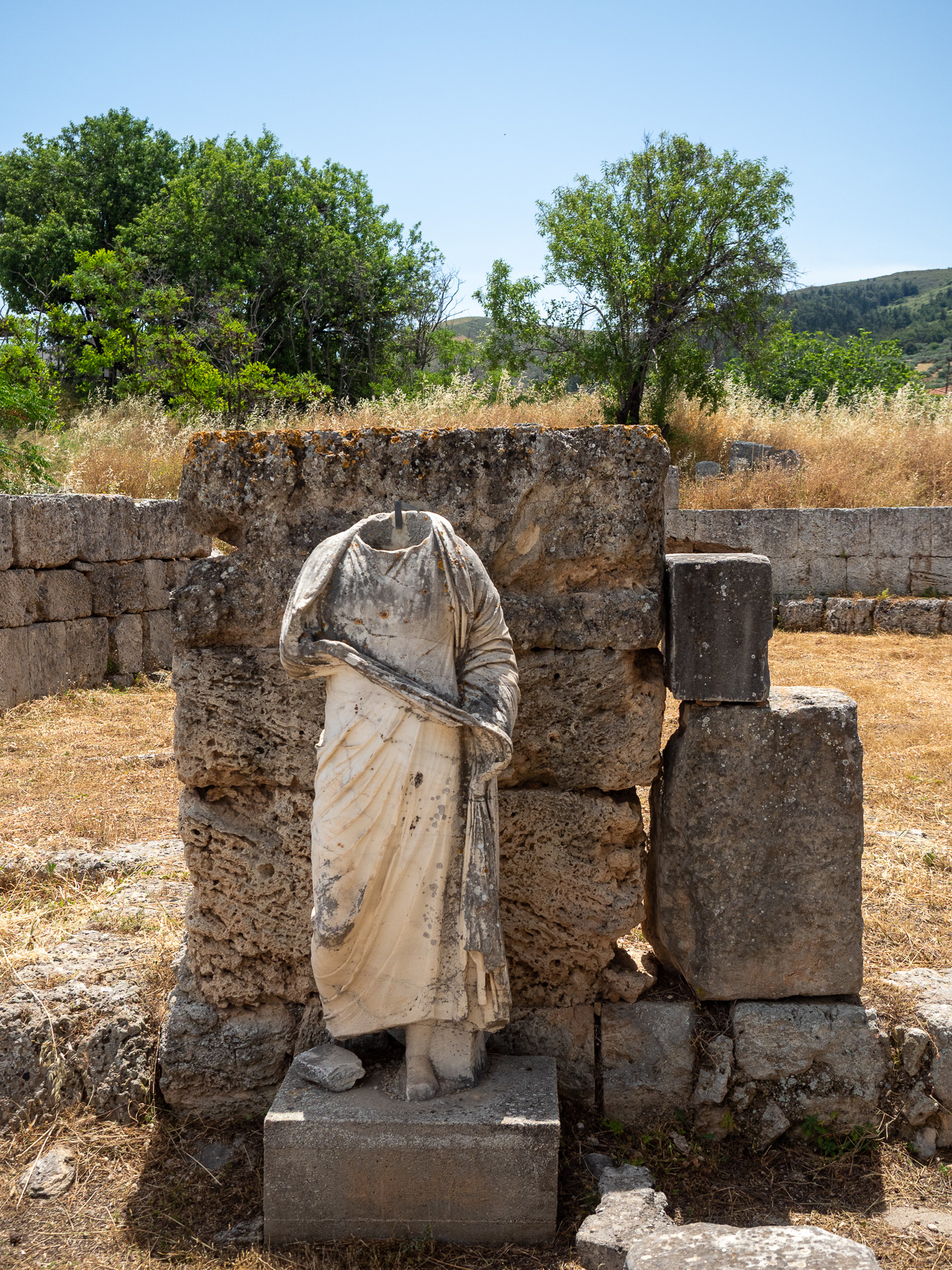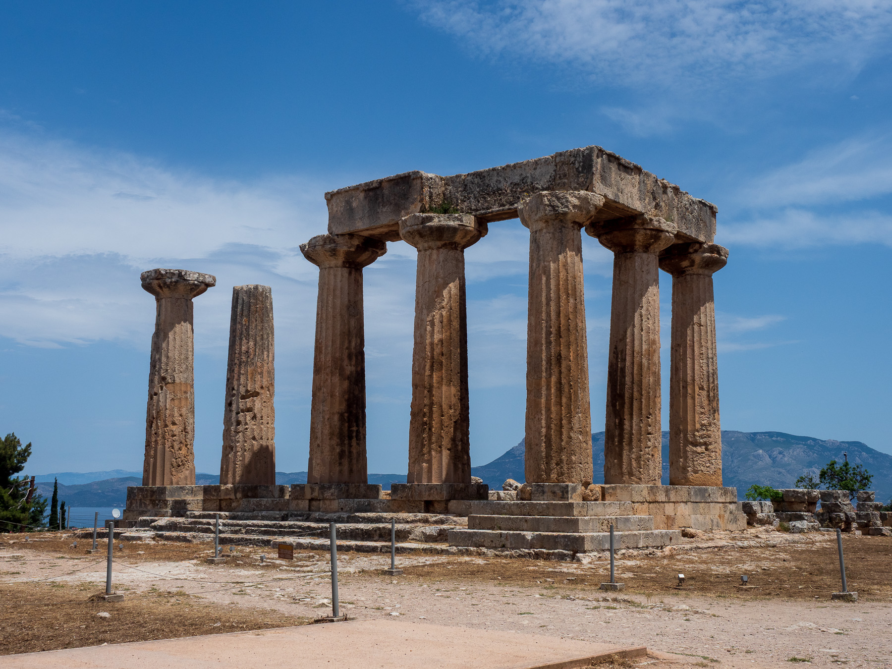 Gleich zu Beginn beeindruckt uns der Tempel des Apollo mit seinen mächtigen dorischen Säulen – eines der ältesten erhaltenen Tempelbauwerke Griechenlands aus dem 6. Jahrhundert v. Chr. Zwischen den Ruinen herrscht eine besondere Atmosphäre, die Geschichte wird hier auf eine fast greifbare Weise lebendig.