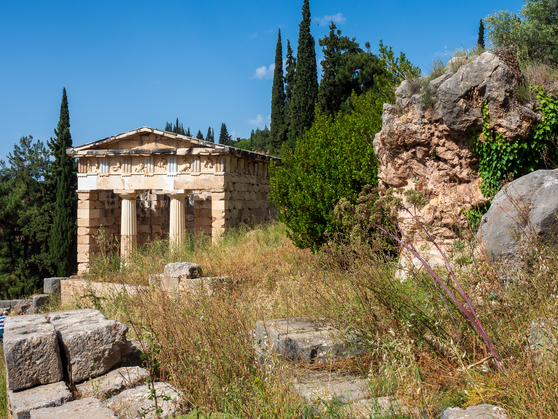 Der Rundgang beginnt in der Agora, vorbei an einem der Schatzhäuser, das die Stadtstaaten zur Ehre der Götter errichtet hatten. Die Säulen des berühmten Apollon-Tempel sind deutlich sichtbar. Hier wurde einst das Orakel von Delphi befragt. Die Pythia, die Priesterin des Apollon, soll hier in Trance gesprochen und Weissagungen verkündet haben. Es ist ein besonderer Moment, hier zu stehen und sich vorzustellen, wie Pilger aus ganz Griechenland herströmten, um Rat für ihr Leben, ihre Kriege oder ihre Politik zu erbitten.