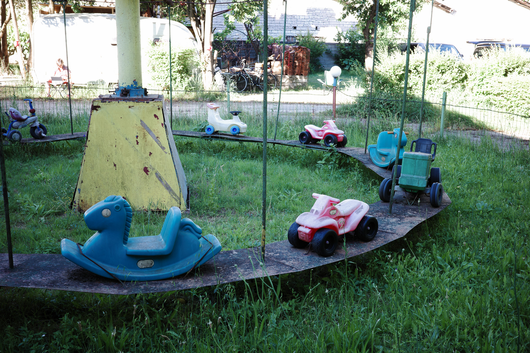 Erwähnenswert: unser Stellplatz. Es handelt sich um einen stillgelegten Spielplatz – inklusive vergammeltem Riesenrad. Skurril, aber irgendwie charmant.