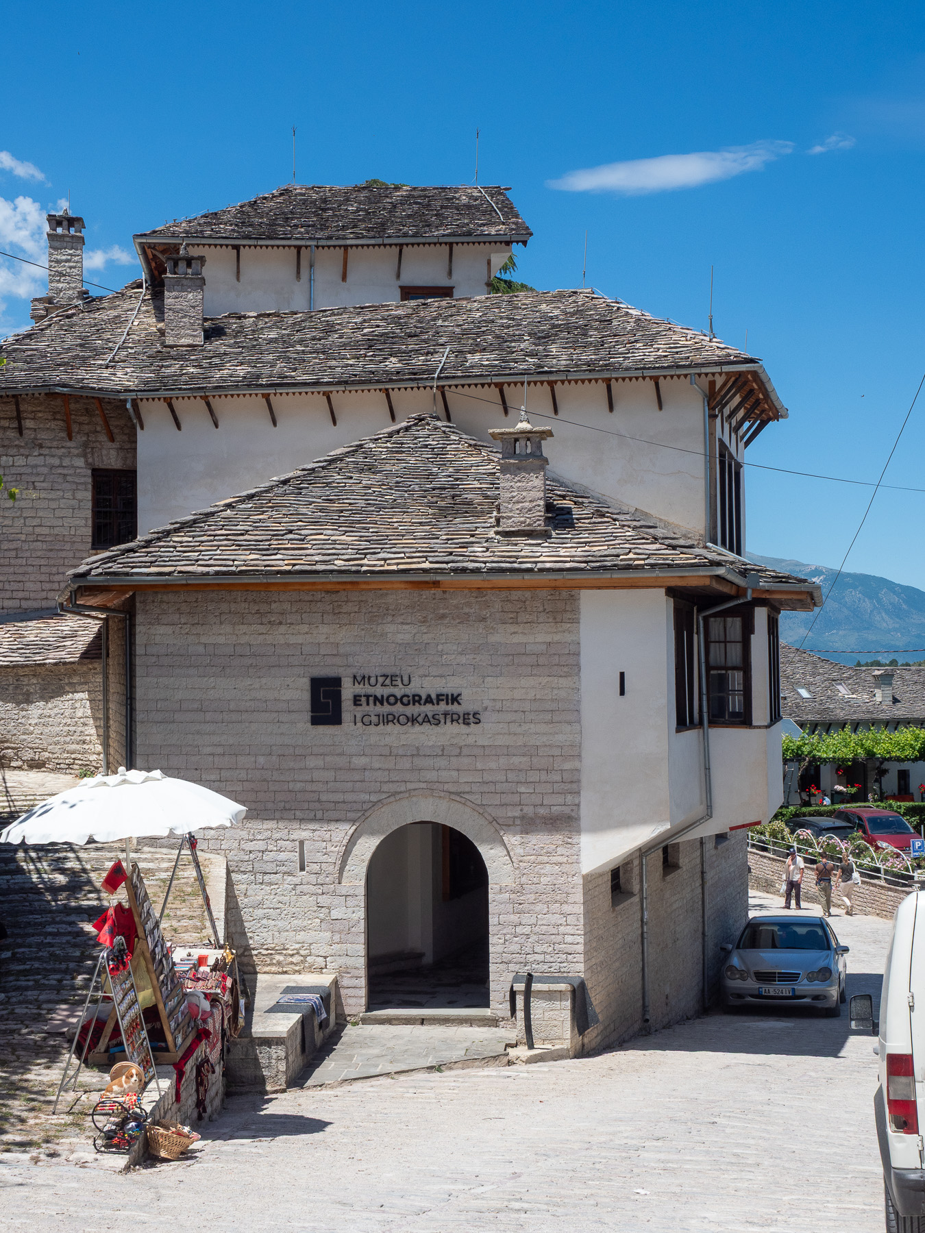 Die Dächer der alten Bürgerhäuser sind traditionell mit flachen Kalkstein- oder Schieferplatten gedeckt – sogenannte Steindächer. Sie sind typisch für die osmanisch geprägte Architektur der Stadt und einer der Gründe, warum Gjirokastra auch als „Stadt der Steine“ bekannt ist.