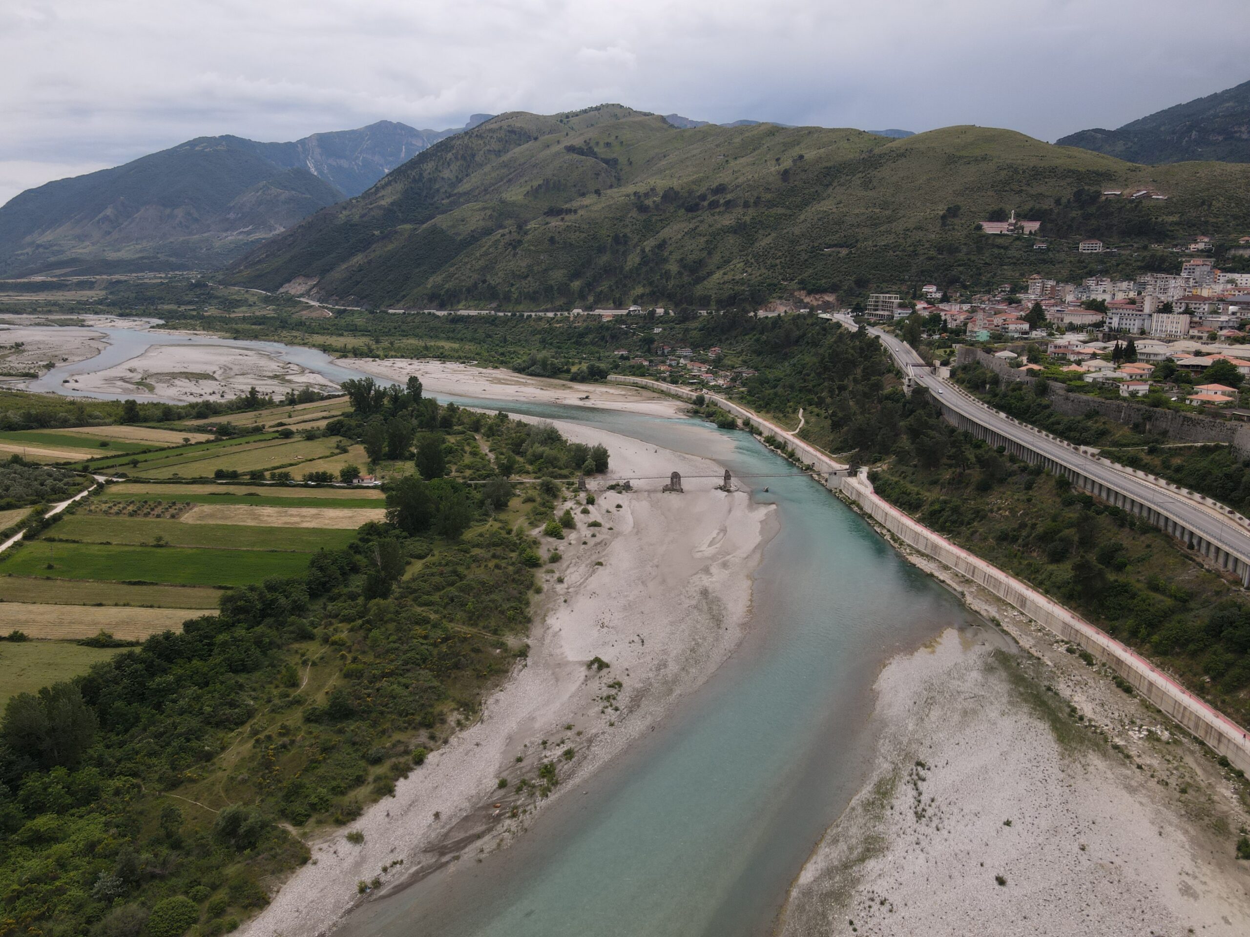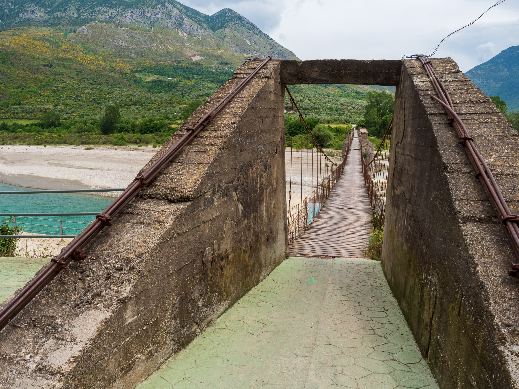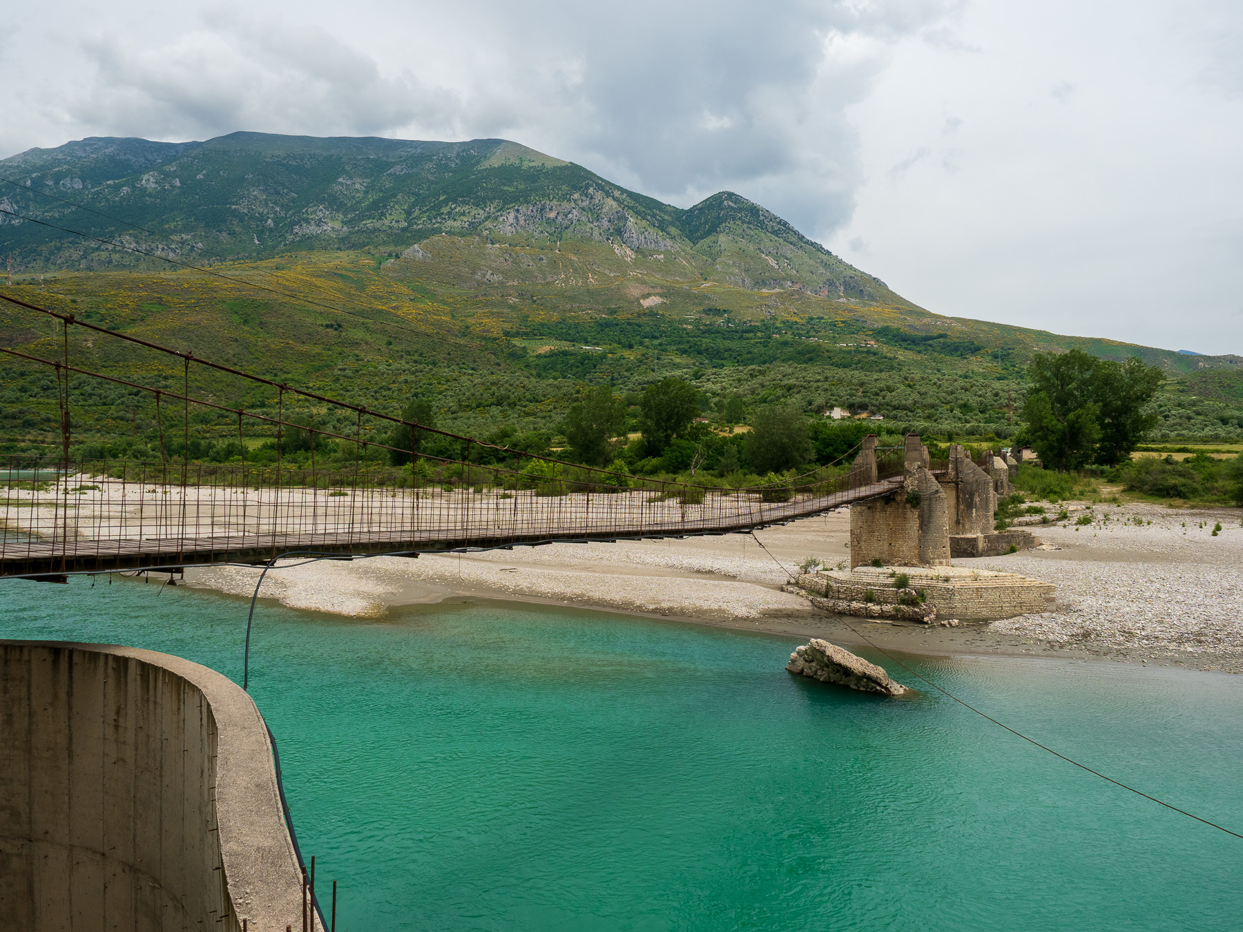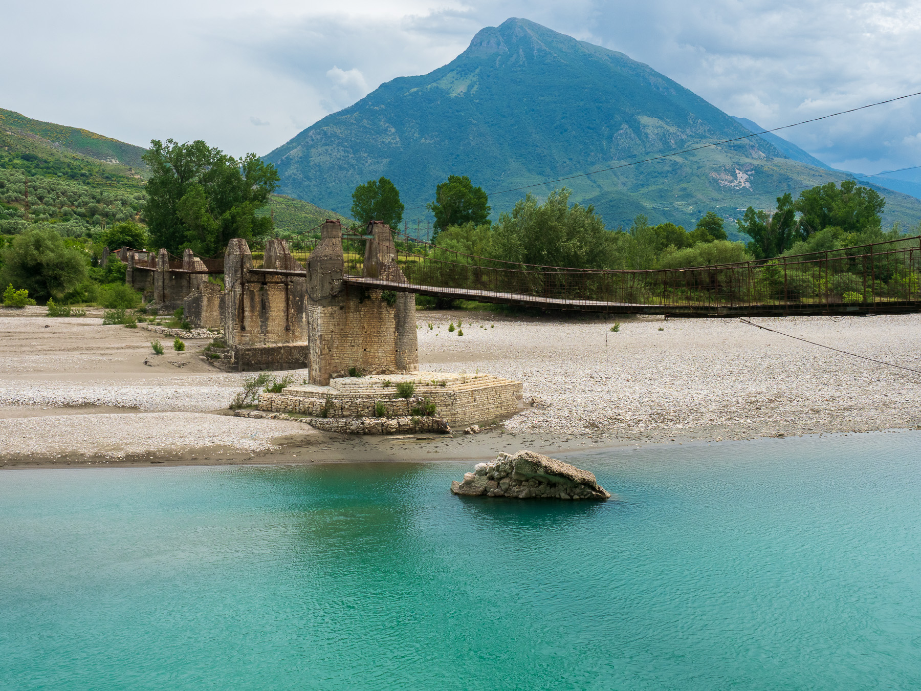 Die Steinbrücke überspannt einen Seitenarm der Vjosa und diente einst als wichtiger Teil einer Handelsroute durch Südalbanien. Besonders beeindruckend ist das osmanische Steinmauerwerk mit dem elegant geschwungenen Hauptbogen.