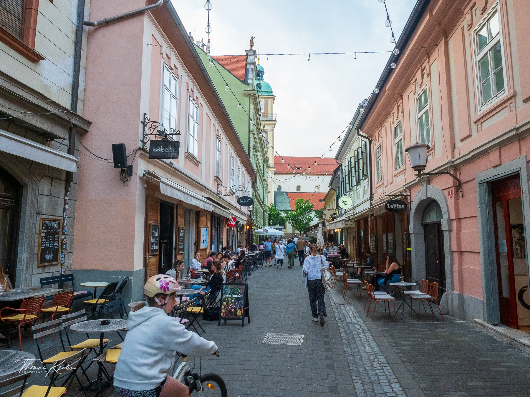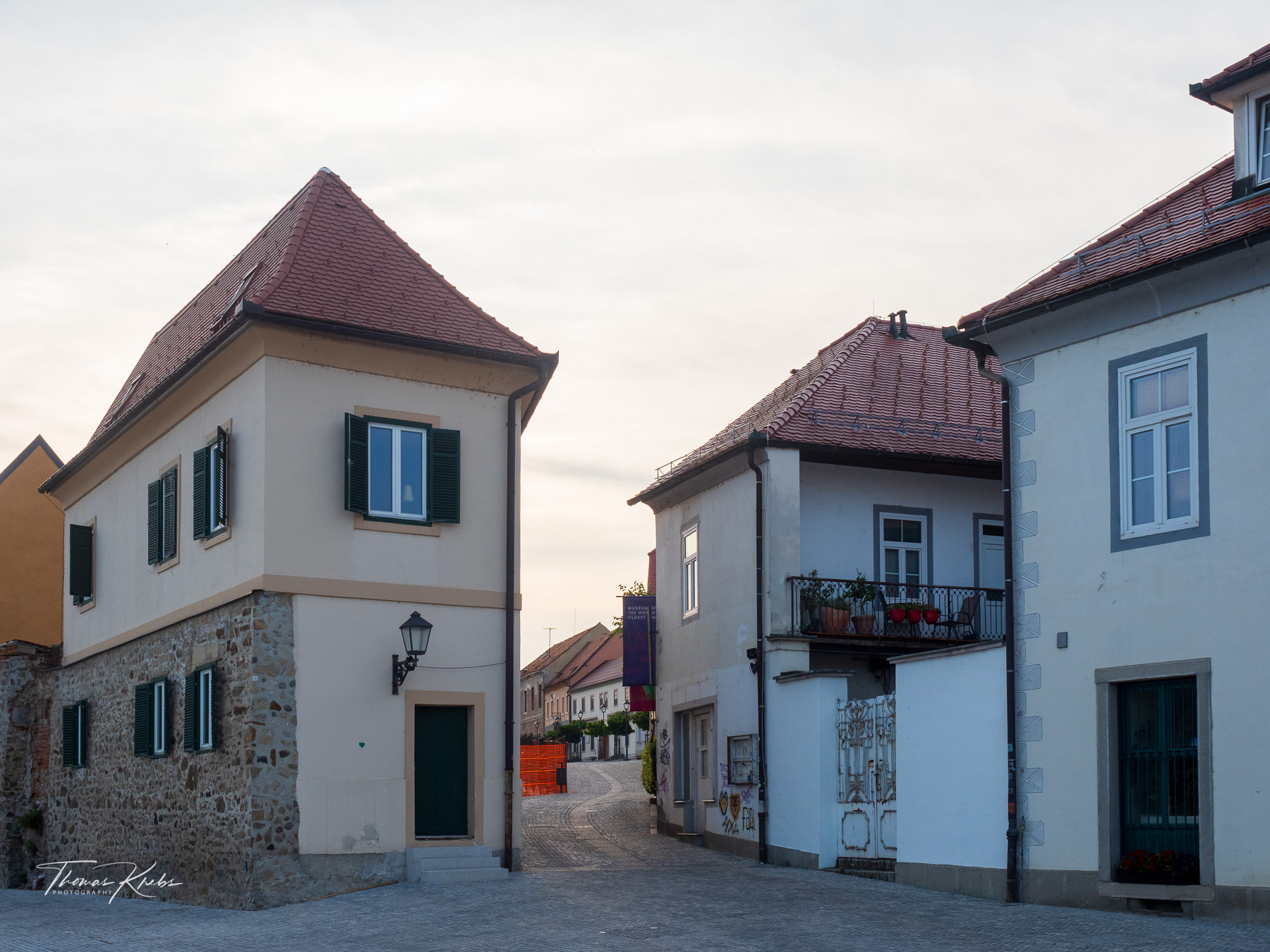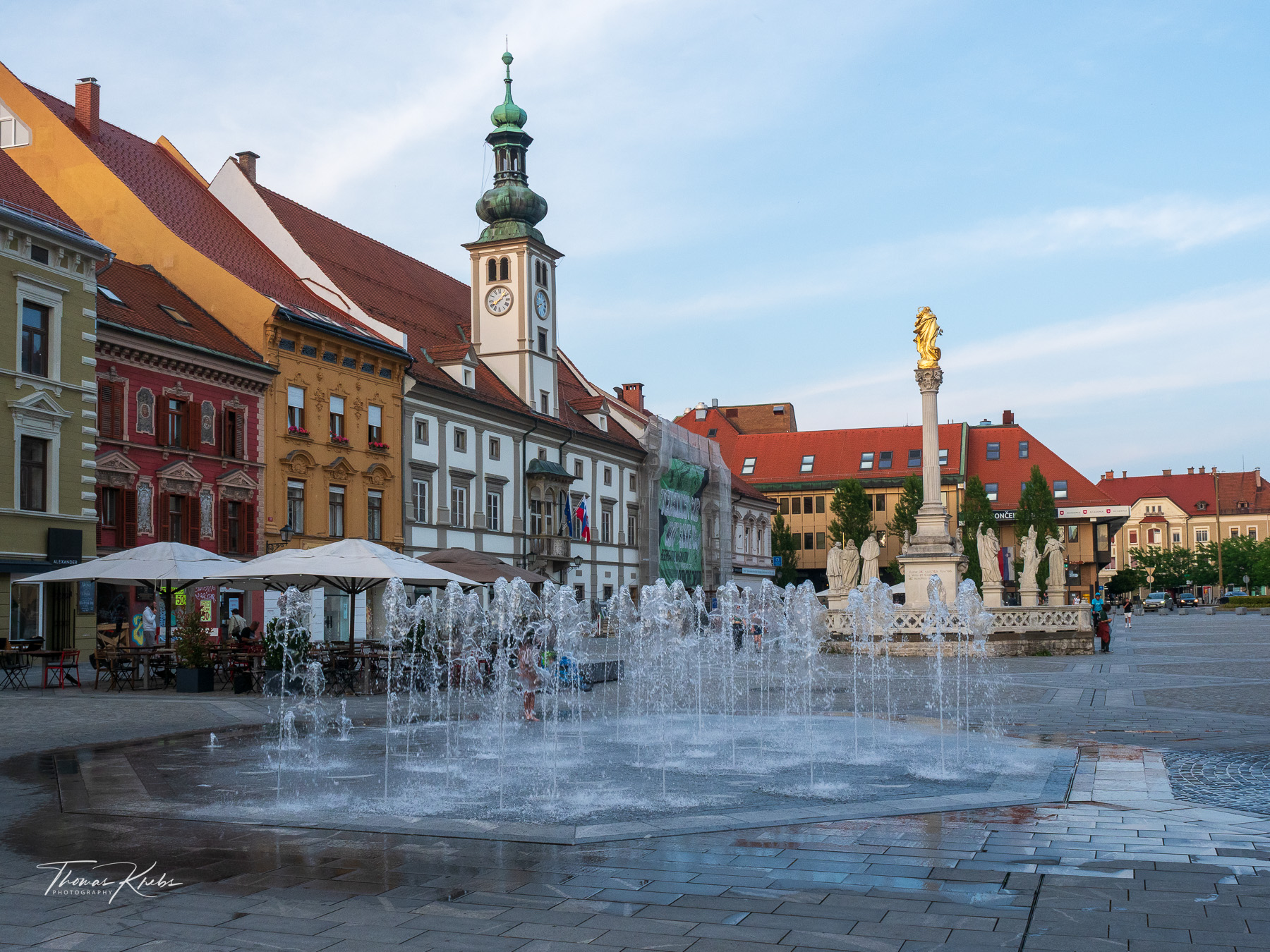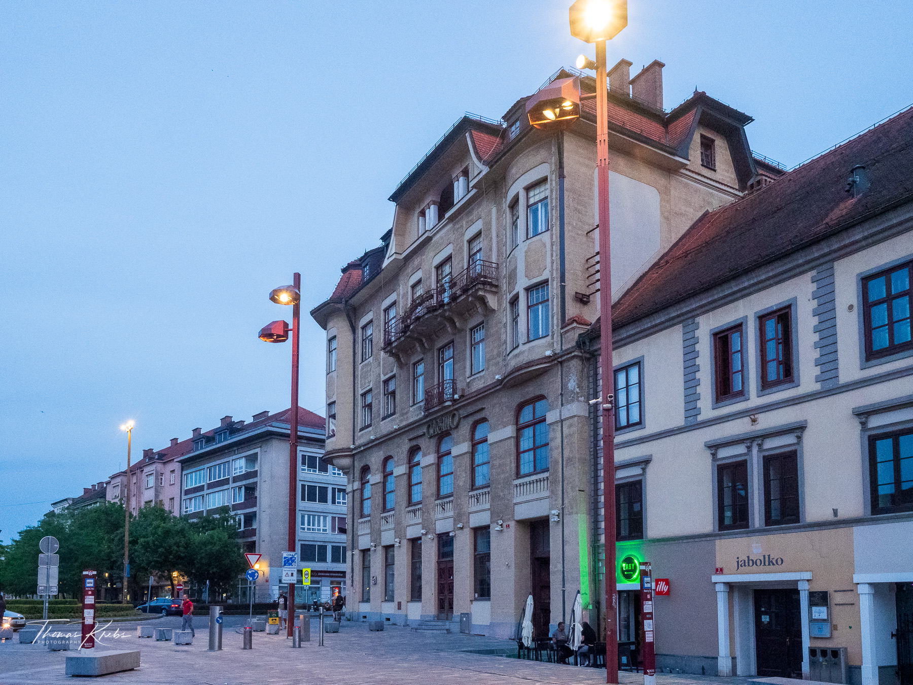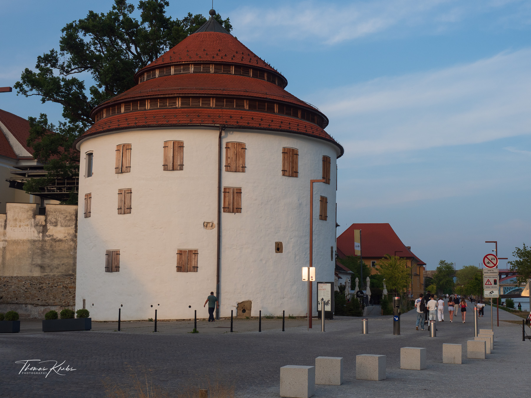 Um 19:00 Uhr starten wir zu Fuß in Richtung Zentrum: ein entspannter 30-Minuten-Spaziergang an der Drau-Uferpromenade. Maribor, die zweitgrößte Stadt Sloweniens, zeigt sich uns von seiner aufgeräumten Seite: