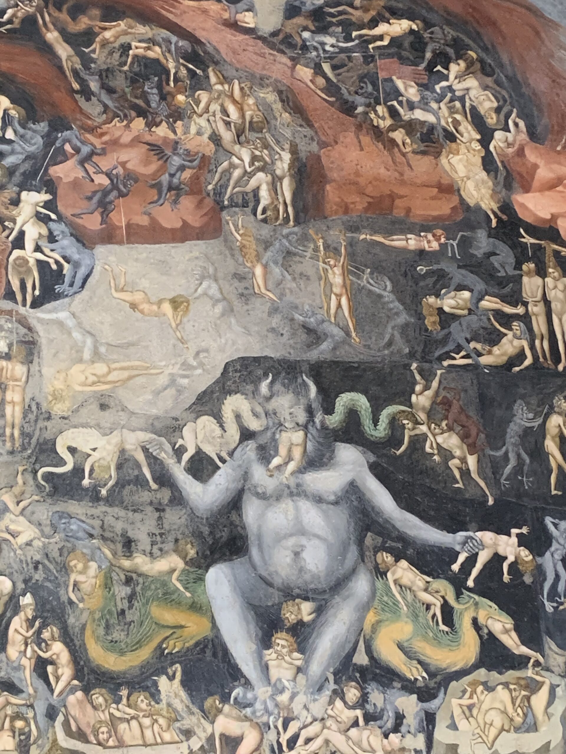 Nach der Führung gönnen wir uns einen Aperitivo auf der Piazza delle Erbe. Mitten in entspannter Stimmung kracht plötzlich ein Brocken einer Skulptur von oben herab. Zum Glück fängt ihn der Sonnenschirm über uns ab, bevor er zu Boden donnert. Ein lauter Schlag – und großes Glück, dass niemand verletzt wird.