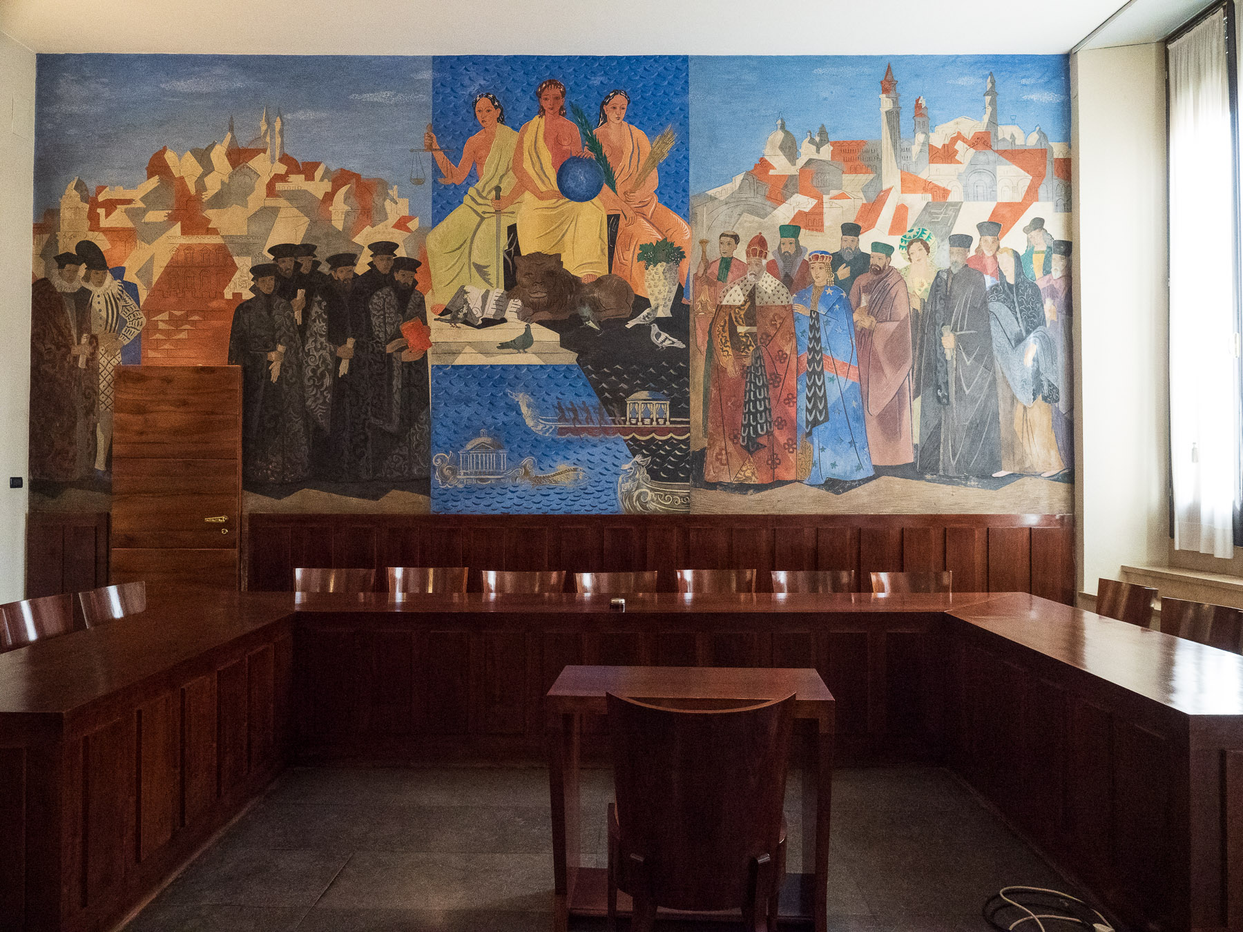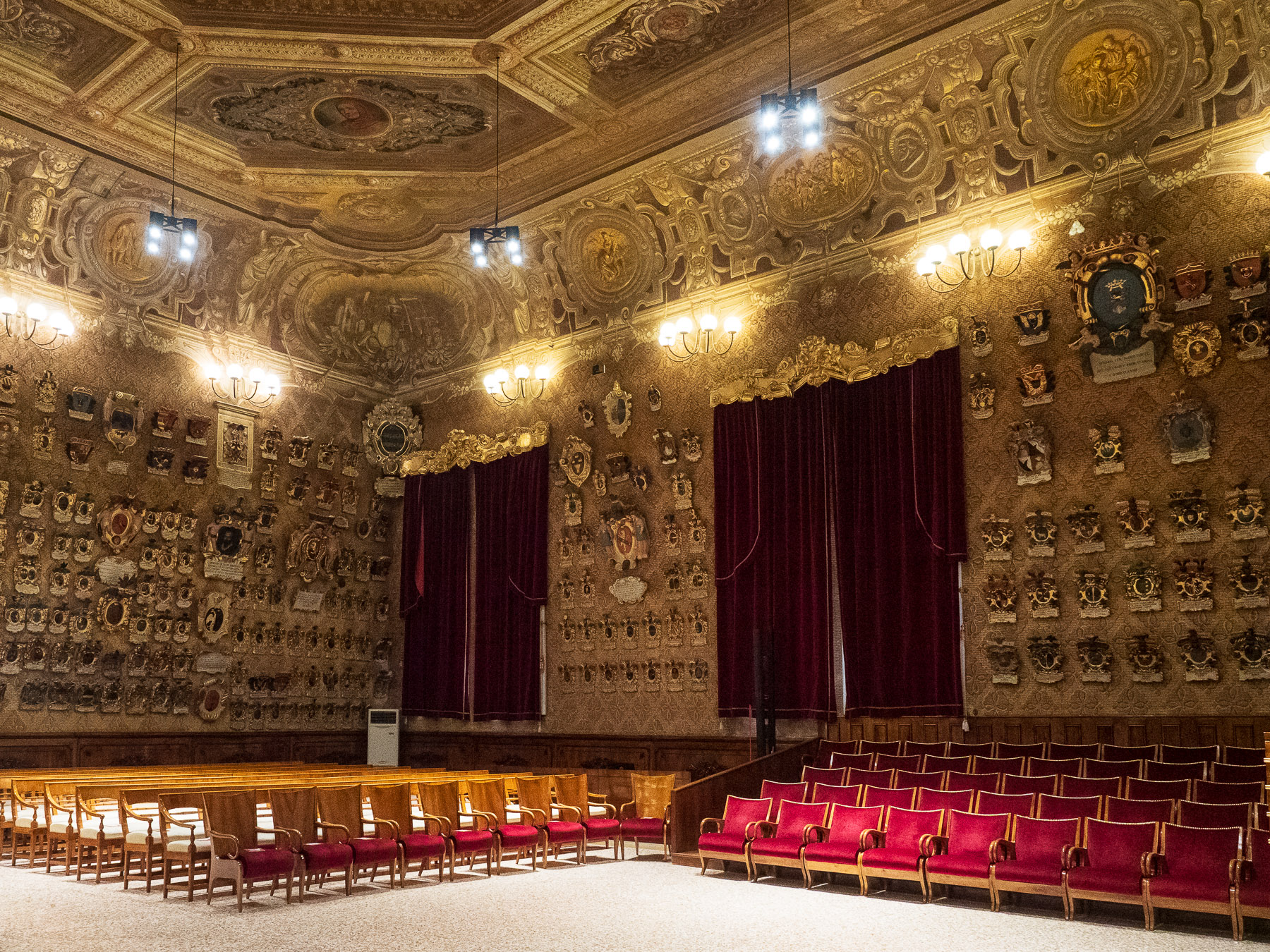 Um 14:30 Uhr haben wir eine Führung durch die Universität von Padua, den Palazzo del Bo. Ein absolutes Muss: Die 1222 gegründete Uni ist geschichtsträchtig – Galileo Galilei lehrte hier, Kopernikus studierte. Jedes Möbelstück, jeder Türgriff wurden von einem Designer entwickelt. Besonders beeindruckt uns das anatomische Theater, rund 10 Meter hoch. Unten stand der Professor am Seziertisch, während die Studenten von den Rängen aus zusahen.