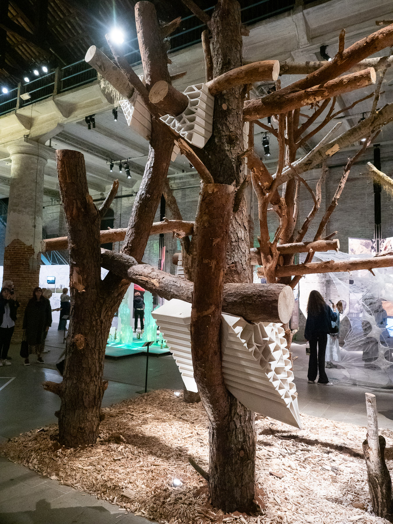 Bäume, die nach einem Windsturz 3D gescannt wurden und mit KI Unterstützung und einem 3D Drucker Stabilisierungen produziert wurde, bilden eine stabile Struktur