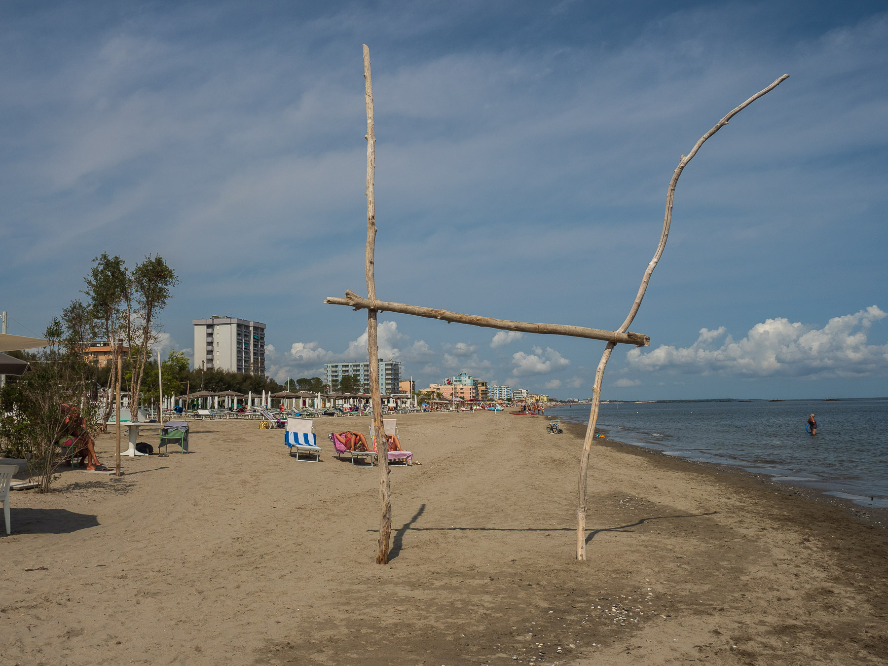 Mit ihrer neuen Badekappe geht Renate am Morgen erst einmal im Pool des Campingplatzes schwimmen. Danach unternehmen wir gemeinsam einen Strandspaziergang. Barfuß im Sand gelingt es uns, die Armada an Sonnenschirmen und die wenig ansprechende Bebauung auszublenden. In einer Strandbar gönnen wir uns einen erfrischenden Smoothie, bevor wir zum Wohnmobil zurückkehren. Dort lege ich mich erst einmal zu einem Nickerchen hin.