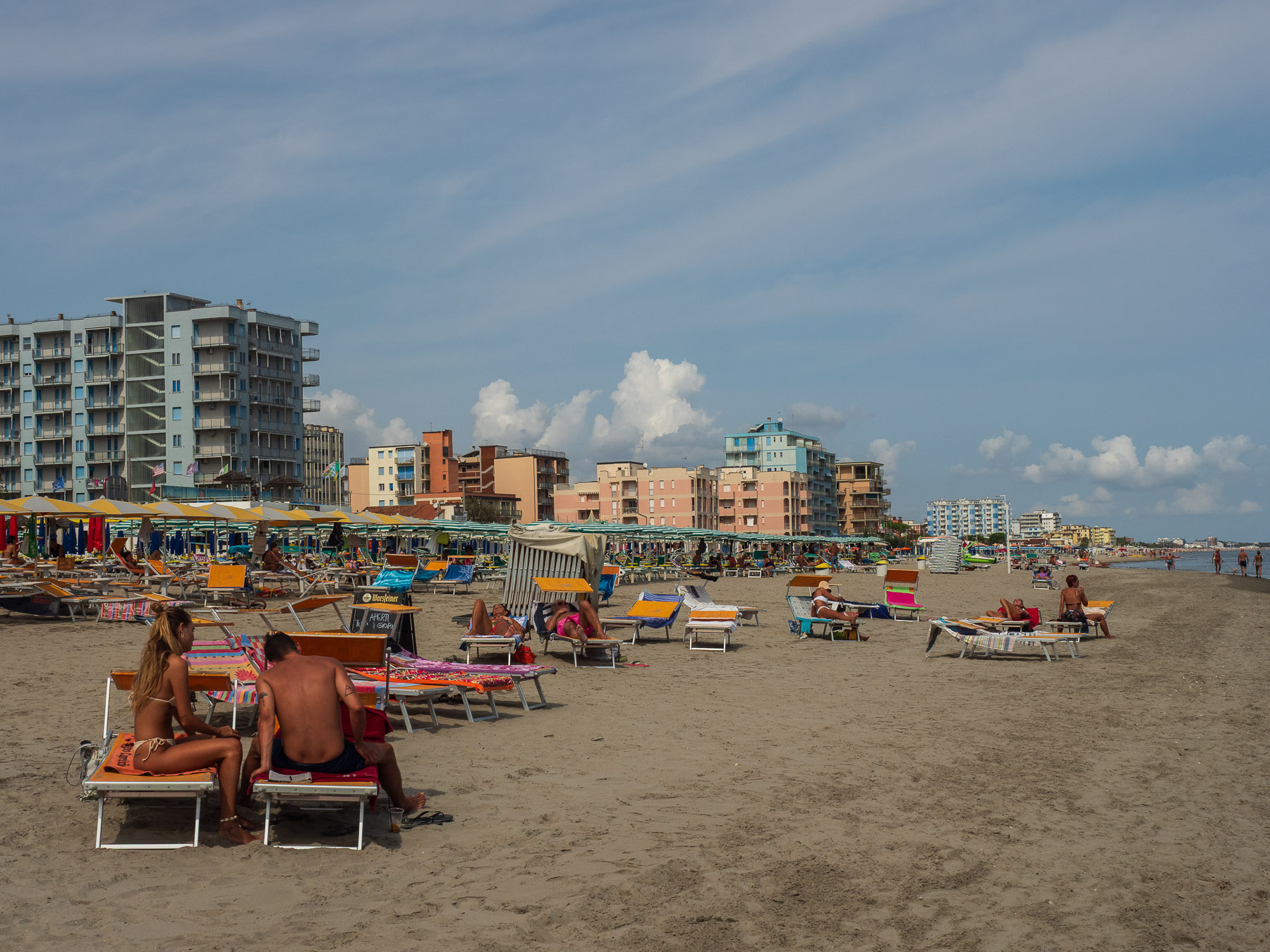 Mit ihrer neuen Badekappe geht Renate am Morgen erst einmal im Pool des Campingplatzes schwimmen. Danach unternehmen wir gemeinsam einen Strandspaziergang. Barfuß im Sand gelingt es uns, die Armada an Sonnenschirmen und die wenig ansprechende Bebauung auszublenden. In einer Strandbar gönnen wir uns einen erfrischenden Smoothie, bevor wir zum Wohnmobil zurückkehren. Dort lege ich mich erst einmal zu einem Nickerchen hin.