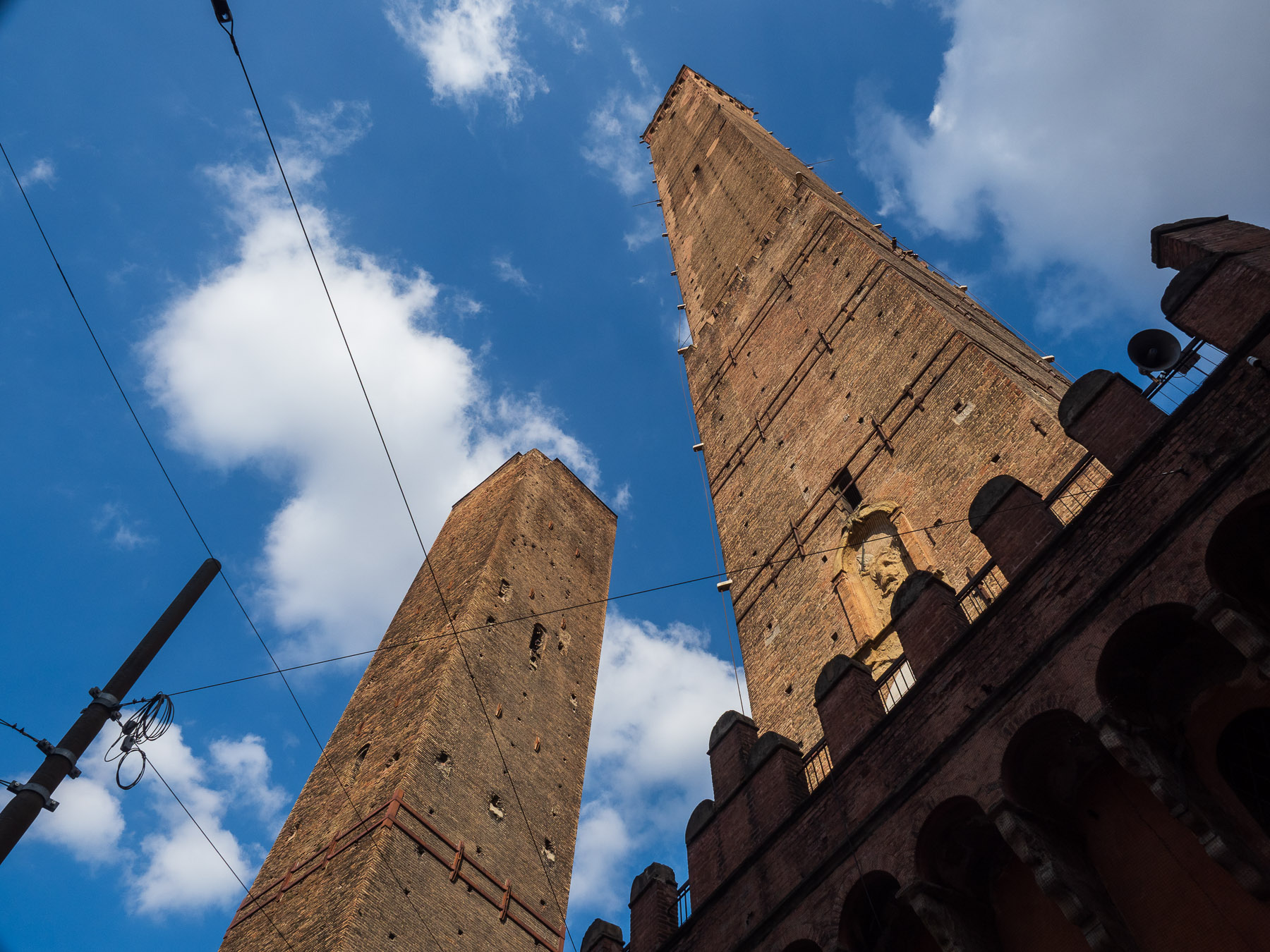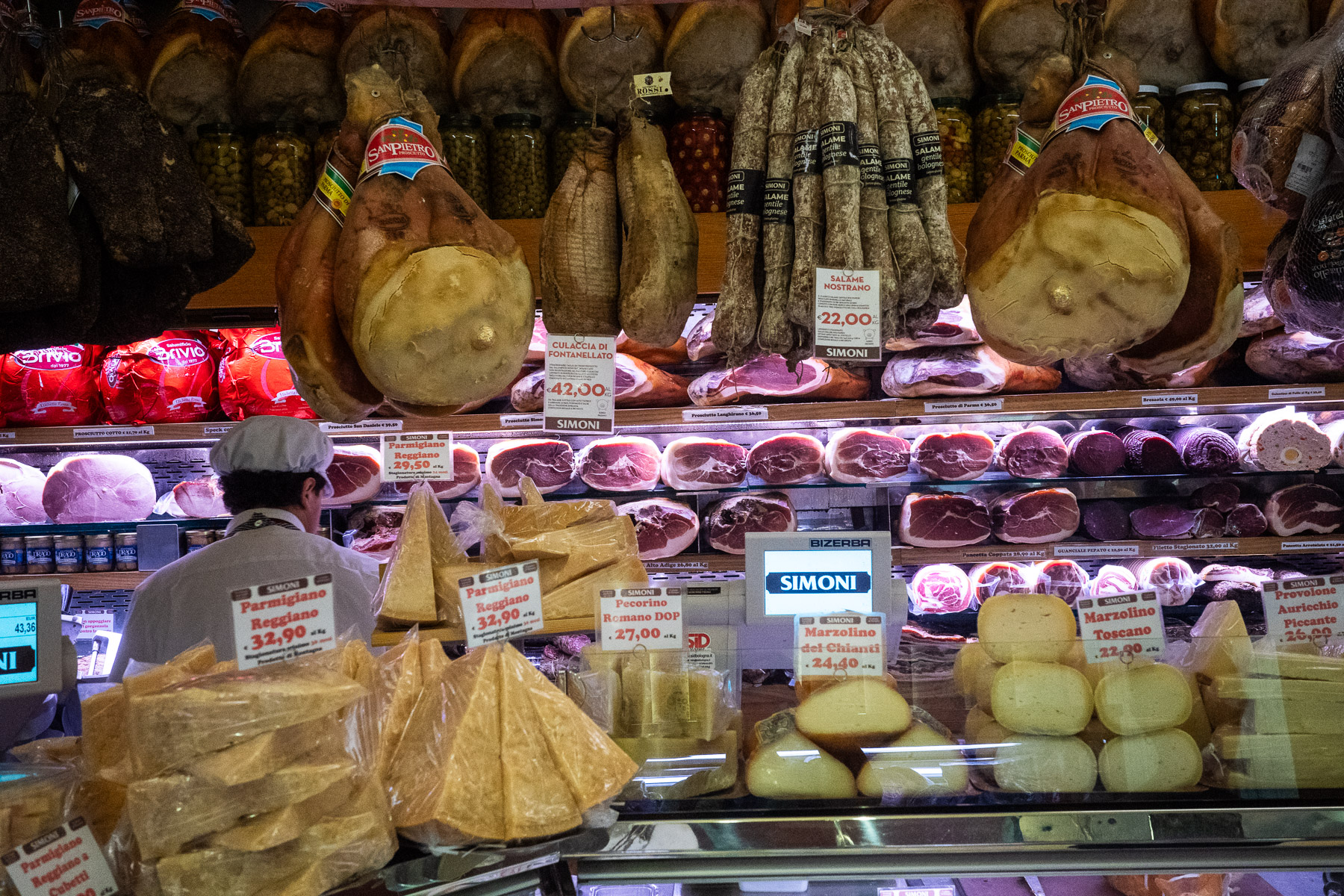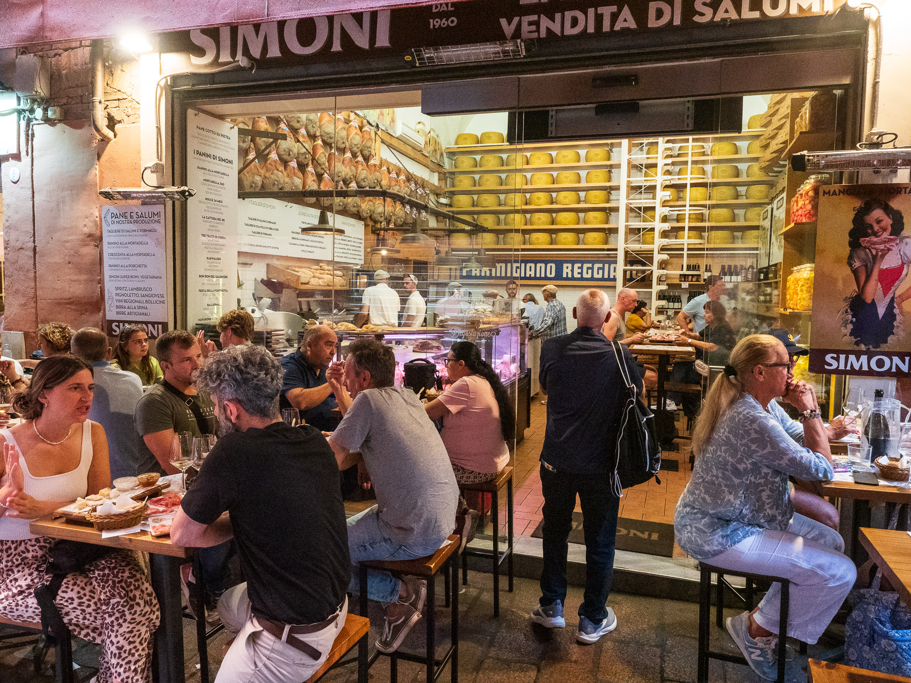 In der bekannten „Fresstraße“ Via Pescherie Vecchie lassen wir uns für einen Snack nieder. Ich probiere einen Lambrusco – wohl eher kein Getränk, das ich mir noch einmal bestellen werde – und dazu Tagliatelle al Ragù, eine der Spezialitäten der Region. Fazit: Das können wir besser. Vermutlich wären wir mit Mortadella und Parmigiano besser beraten gewesen. Immerhin landet am Ende noch eine Salami und ein köstlicher Käse aus einem Feinkostladen in meinem Rucksack.Und so viel kann ich schon sagen: Das war kein Fehlkauf. Sehr lecker.