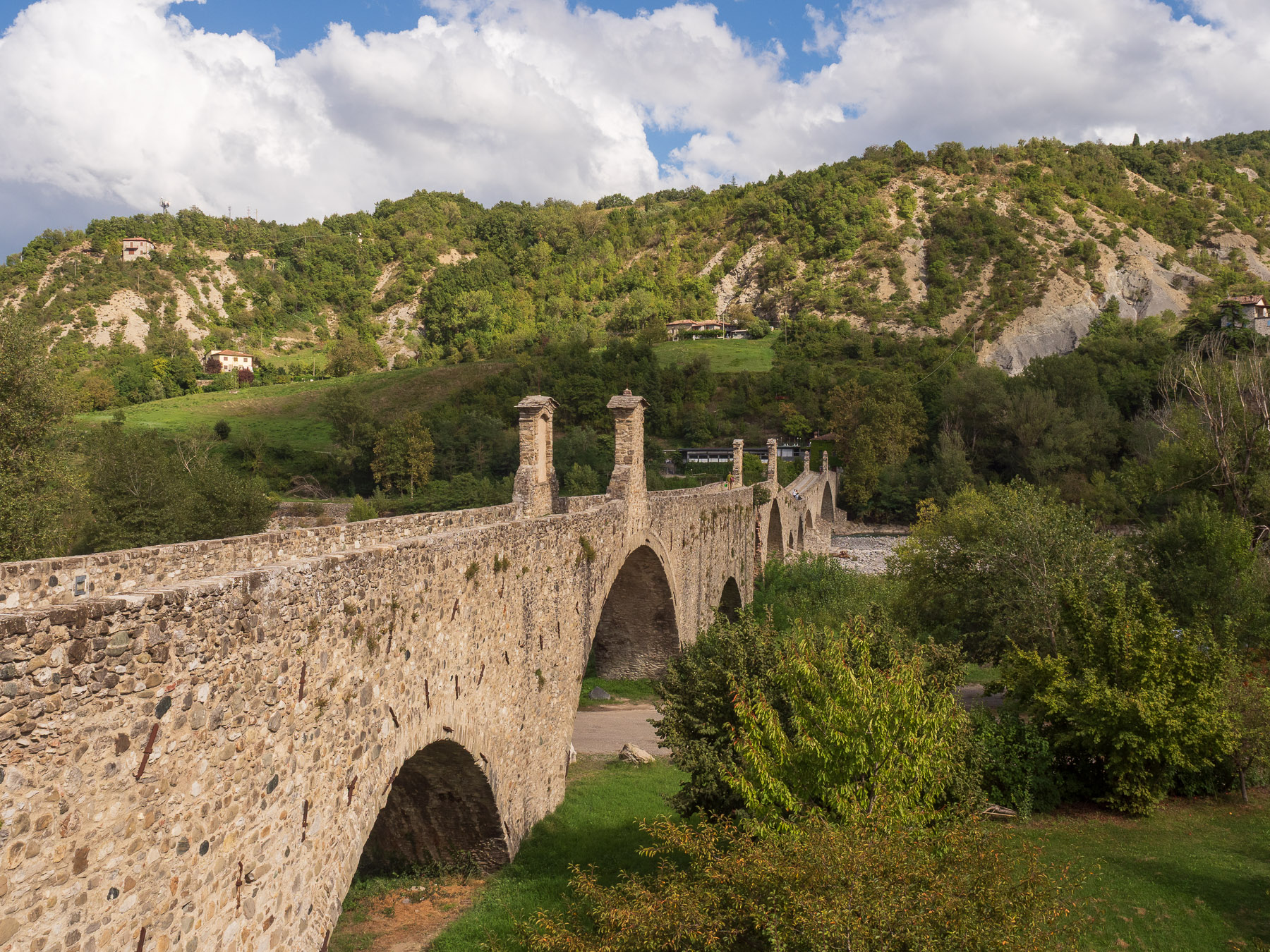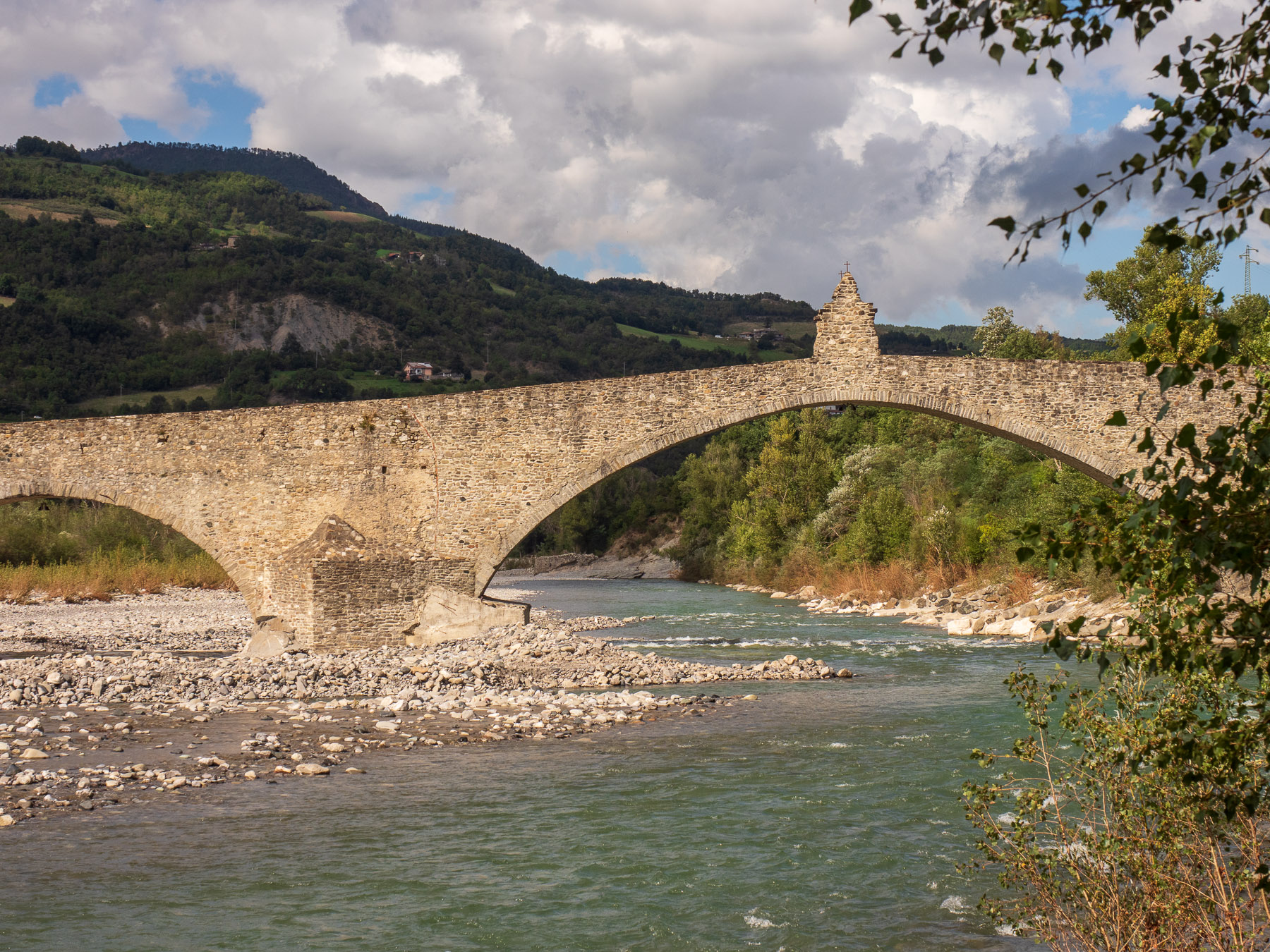 Wir verlassen unseren Stellplatz in Rivergaro mit dem Ziel Bobbio, das 2019 zur schönsten Stadt Italiens gekürt wurde. Kaum sind wir unterwegs, setzt starker Regen ein. Vorsichtshalber stelle ich das Wohnmobil unter einen Baum, um die Lage zu checken und Schutz vor möglichem Hagel zu haben. Doch der Schauer ist schnell vorbei, und nur wenige Kilometer weiter ist die Straße bereits wieder trocken – und bleibt es den ganzen Tag trocken.