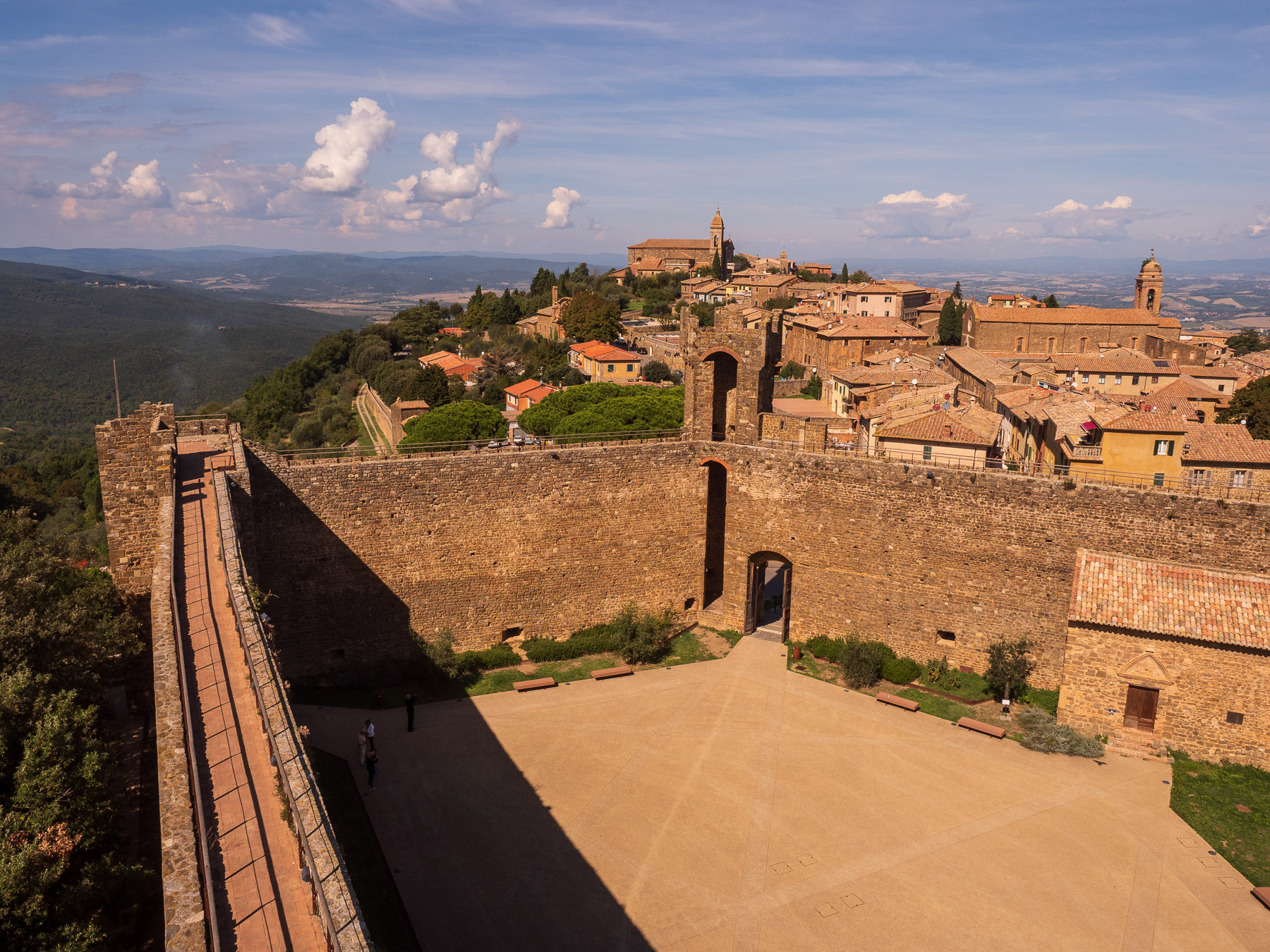 Natürlich liegt auch Montalcino – wie so viele Orte der Toskana – auf einem Hügel. Schon von weitem ist die imposante Festung und die Kirchtürme sichtbar, die über der Stadt thront.
