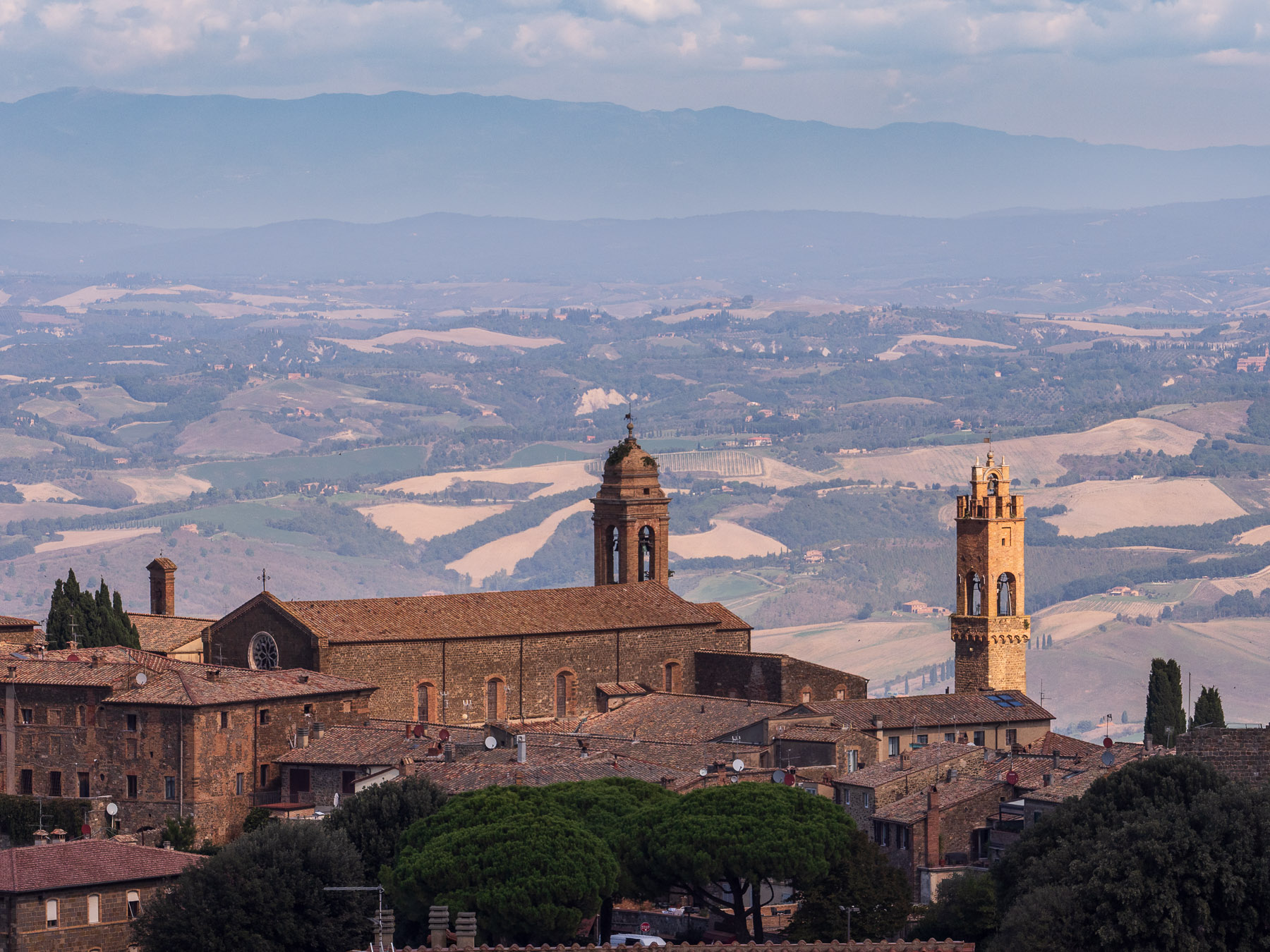 Von der Festungsmauer bietet sich ein traumhafter Blick: über die Dächer von Montalcino hinweg und weit hinein in die sanfte Hügellandschaft.