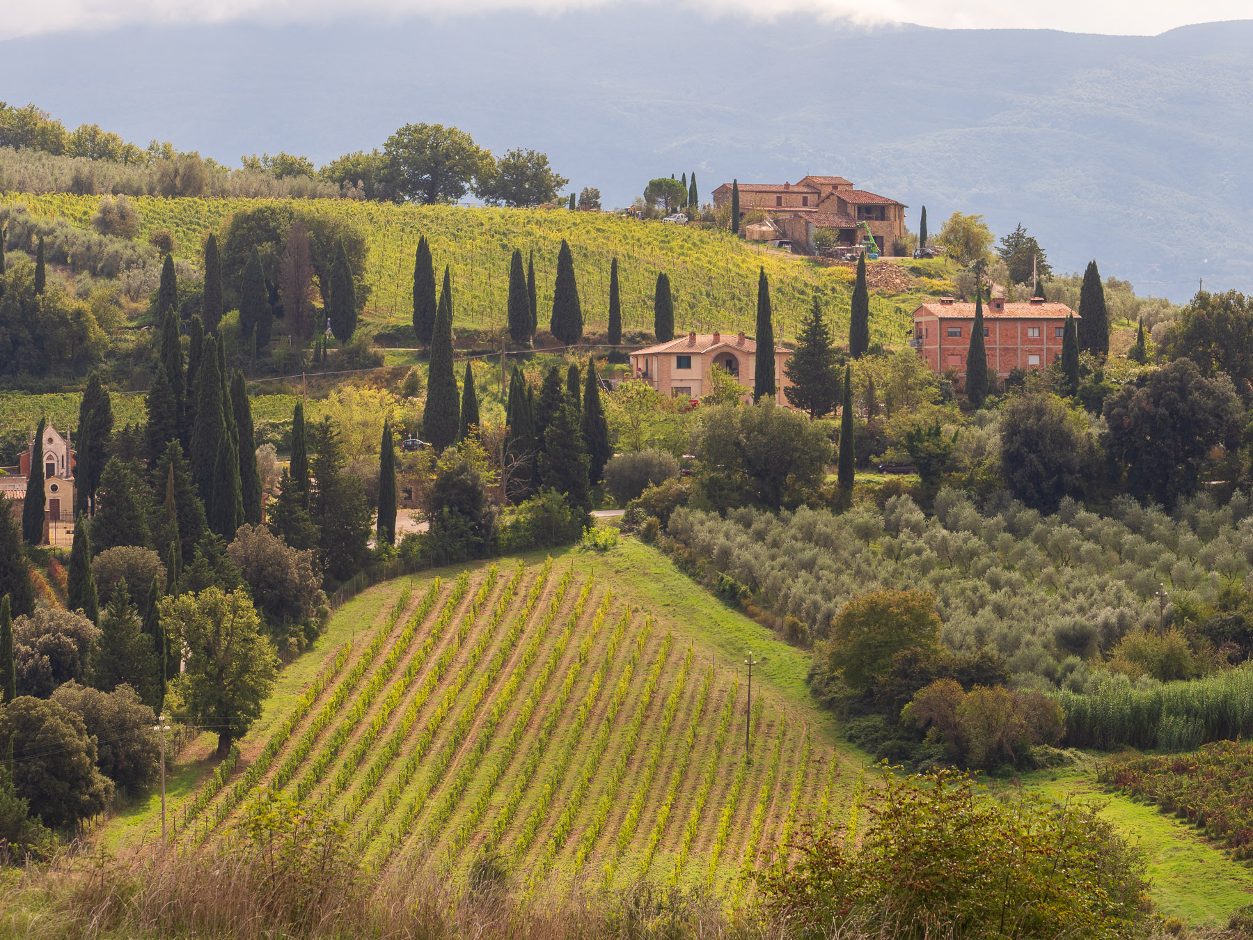 Am Nachmittag treffen Freunde aus Mainz ein, die ebenfalls in Italien unterwegs sind und auf ihrer Heimreise einen Stopp bei uns einlegen. Gemeinsam verbringen wir einen entspannten Nachmittag im Weinberg – mit einem Glas Rosso di Montalcino, guten Gesprächen und wärmender Sonne.