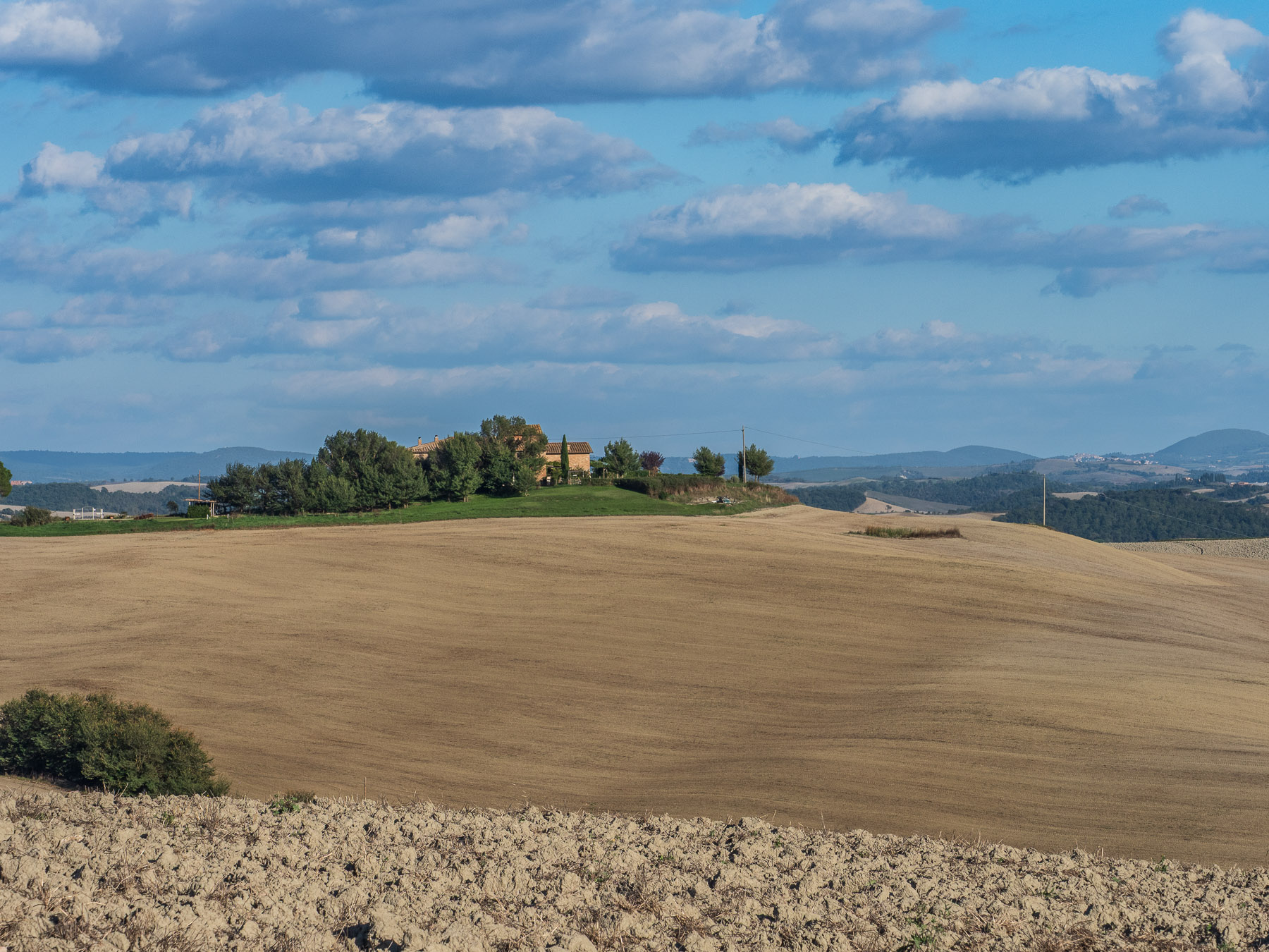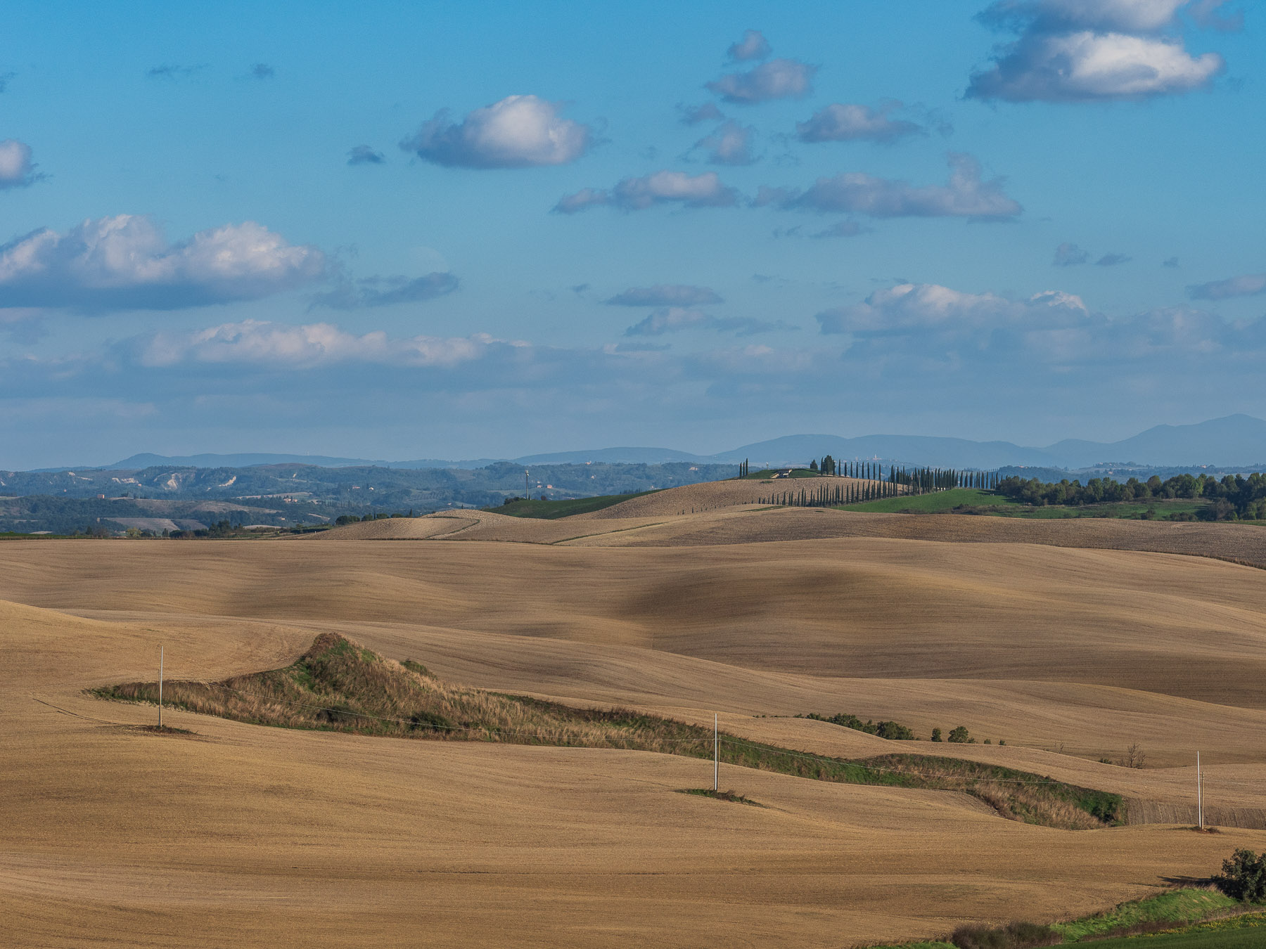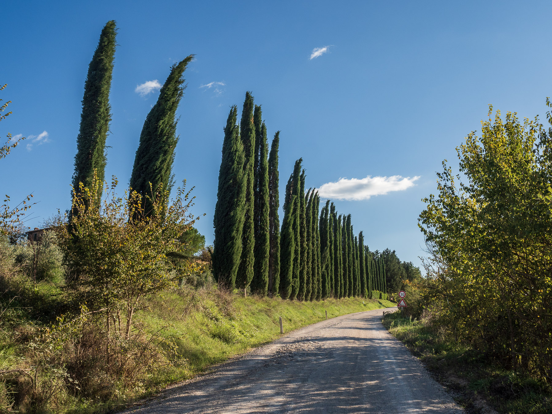 Ein Abstecher zur Strada di Leonina, einer bekannten Fotolocation mit typischer Zypressenallee, bringt uns zwar an einen malerischen Ort, aber die Perspektive von unten will nicht so recht gelingen. Manchmal bleibt nur die Erkenntnis: Man kann nicht alles haben.