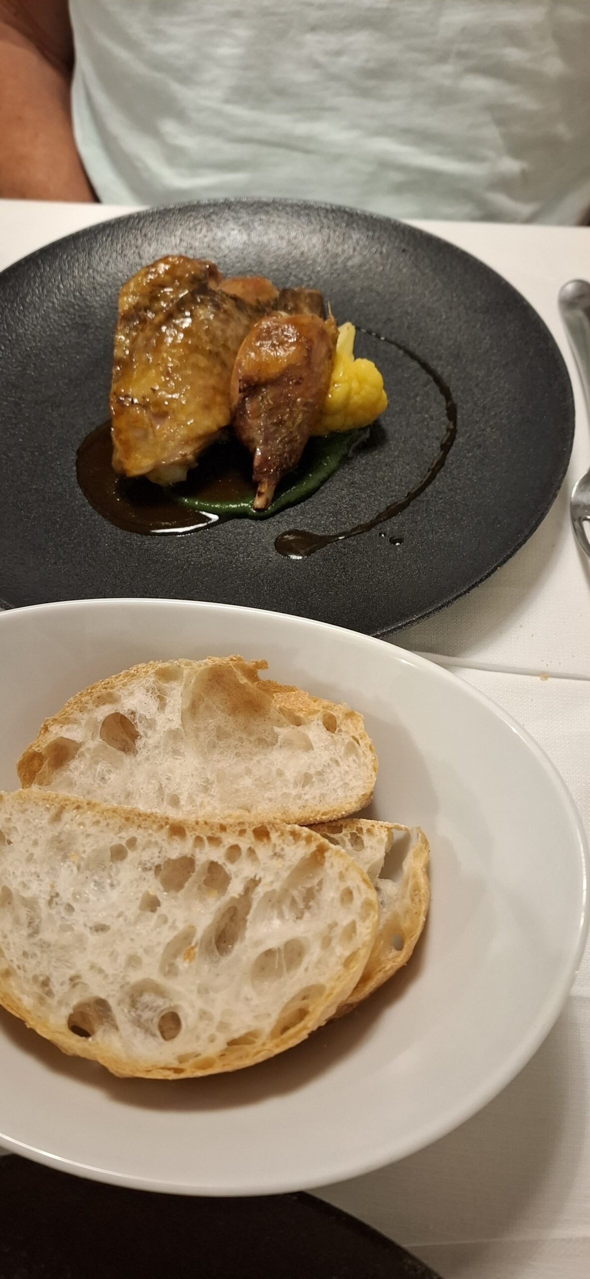 Am Abend gönnen wir uns ein Menü im Restaurant Buon Padre. Es gibt Tajarin – frische, hauchdünne Nudeln – mit weißen Trüffeln, dazu Perlhuhnbrüstchen und Kabeljau. Begleitet wird das Ganze von einem Glas 2015er Barolo.